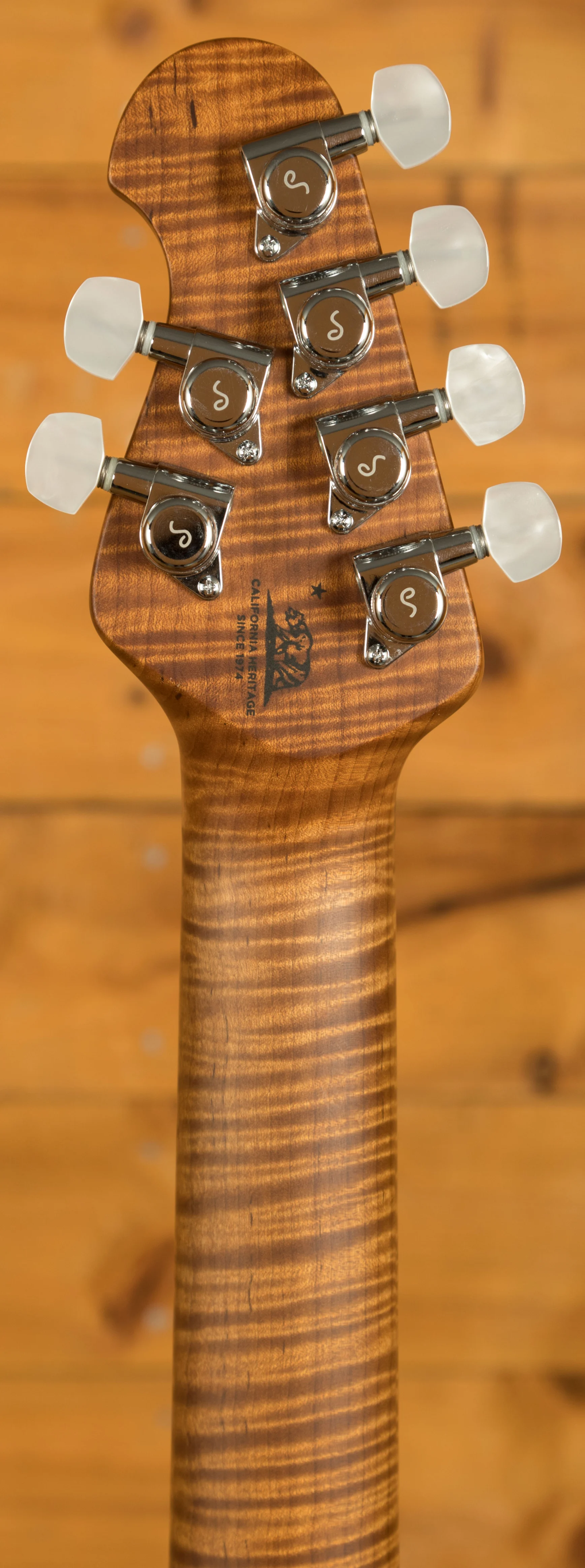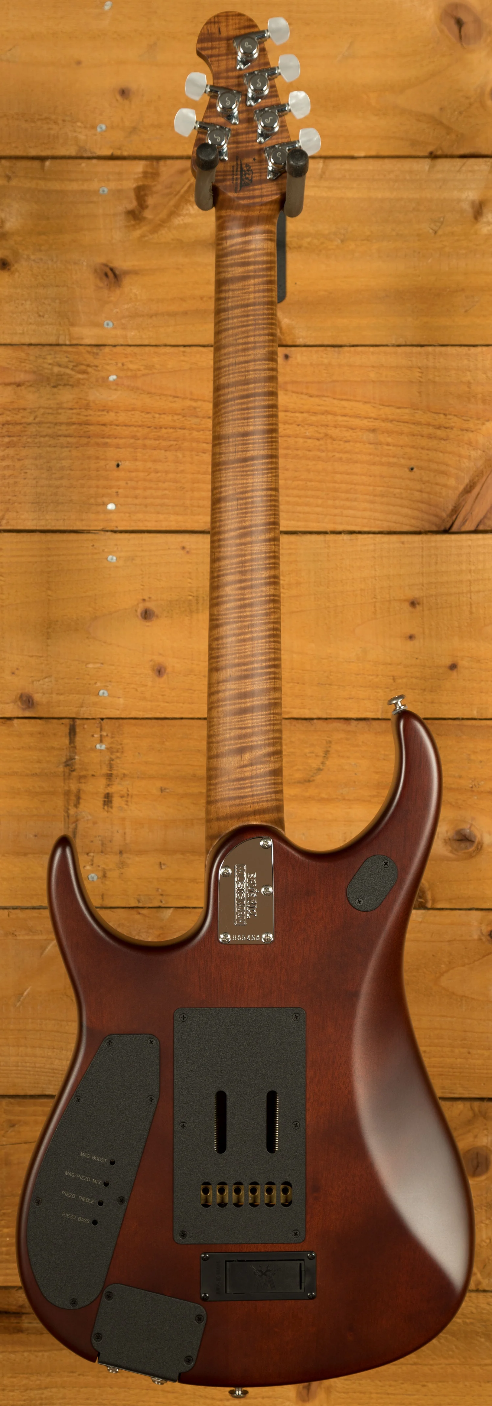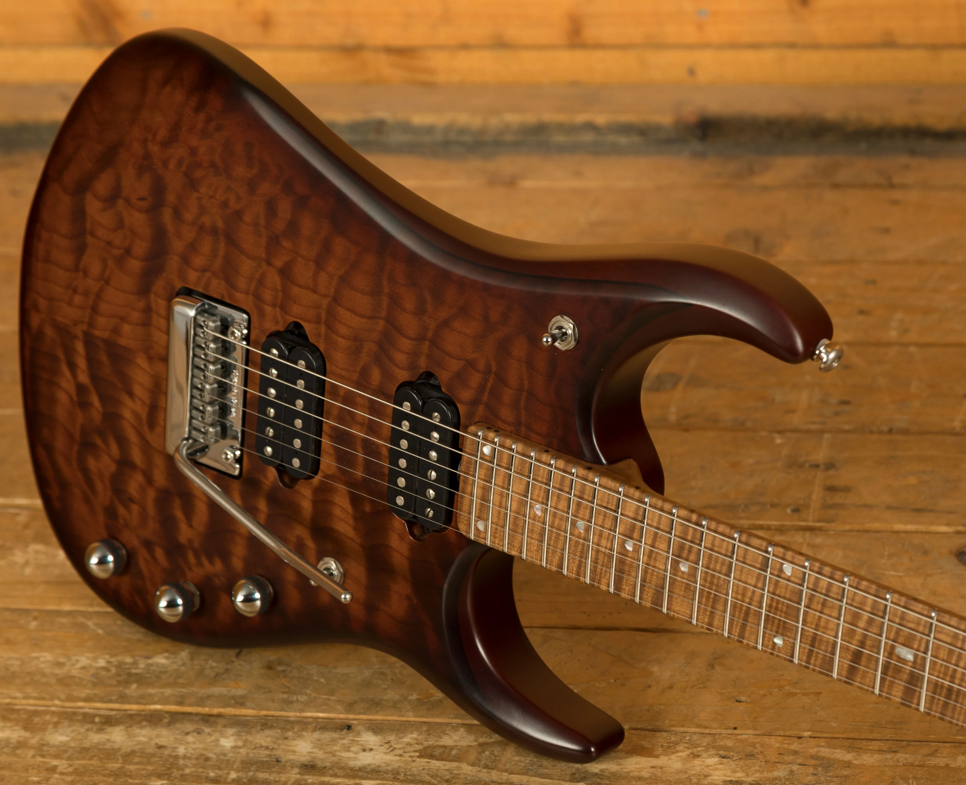 The Music Man JP15 is a gem in the line-up of incredible JP signature models. The JP15 benefits from a strong and punchy Okoume body with a Roasted Quilt Maple Top finished in a stunning Sahara Burst matte. It is beautifully weighted and super well balanced. The ergonomic design is a real treat to play.