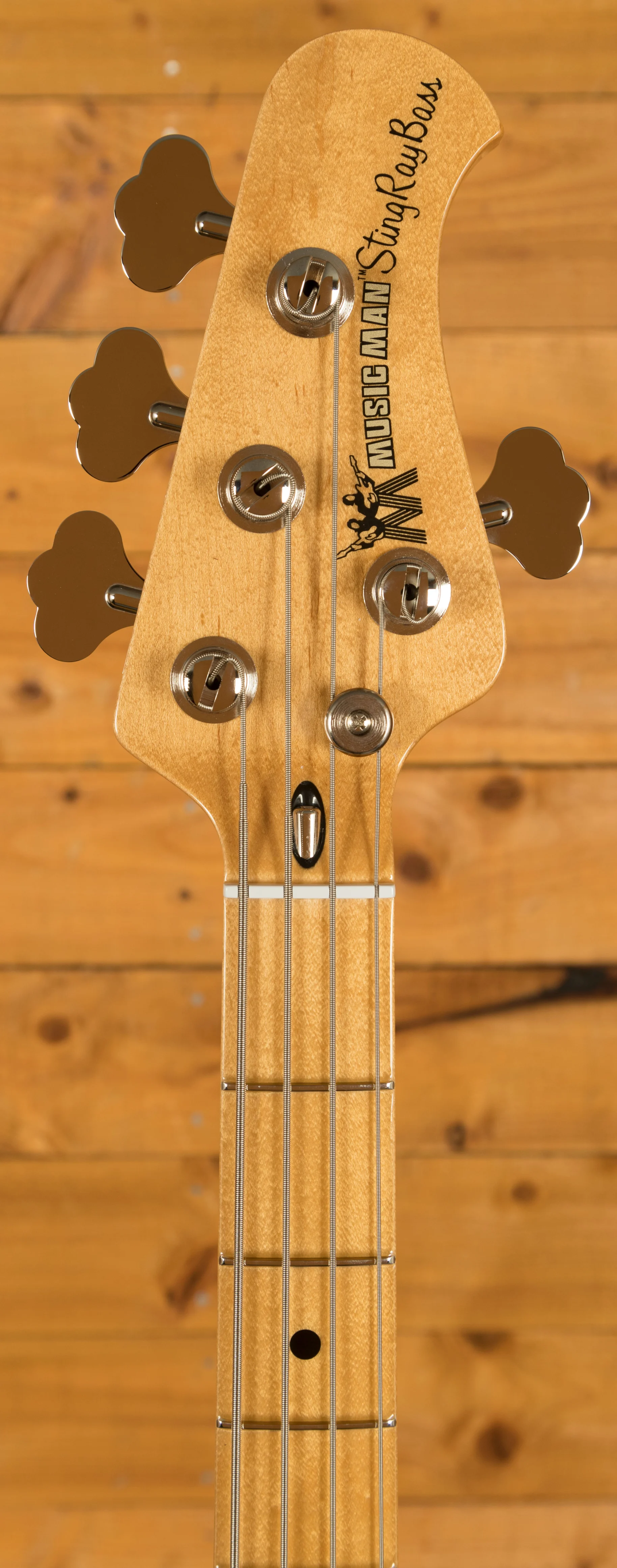 Dependable Hardware: The Retro '70s StingRay Bass is fitted with a pre-Ernie Ball Geometry Music Man bridge and vintage stainless steel saddles, known for their resistance to wear and sweat. Schaller Bass machine heads ensure precise tuning stability.