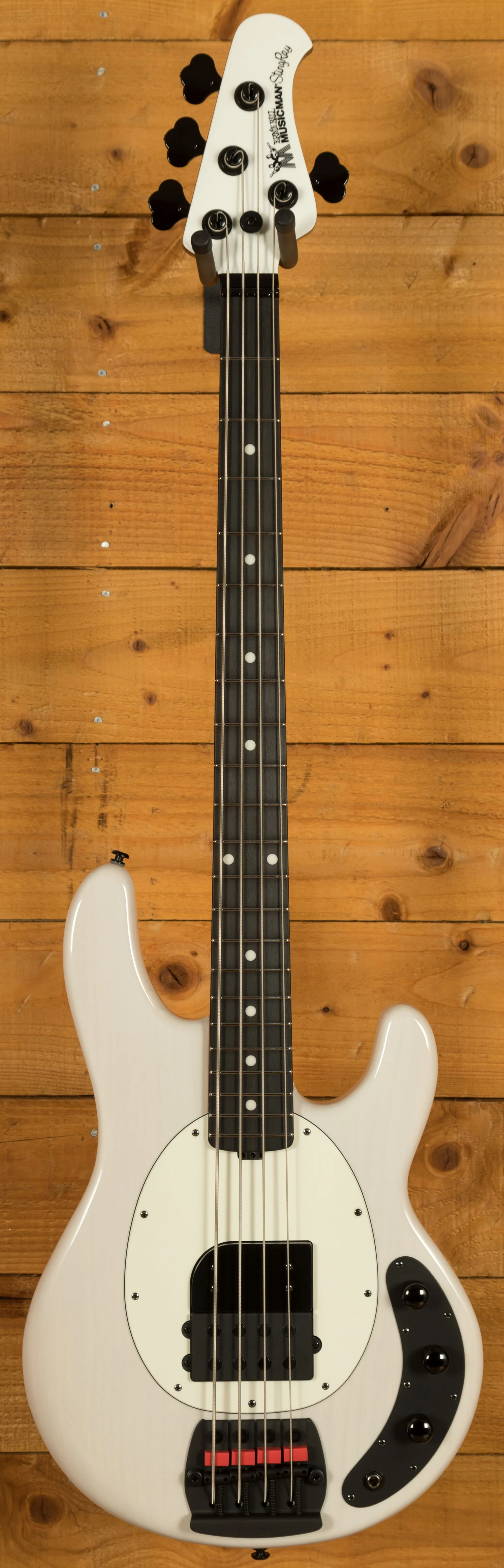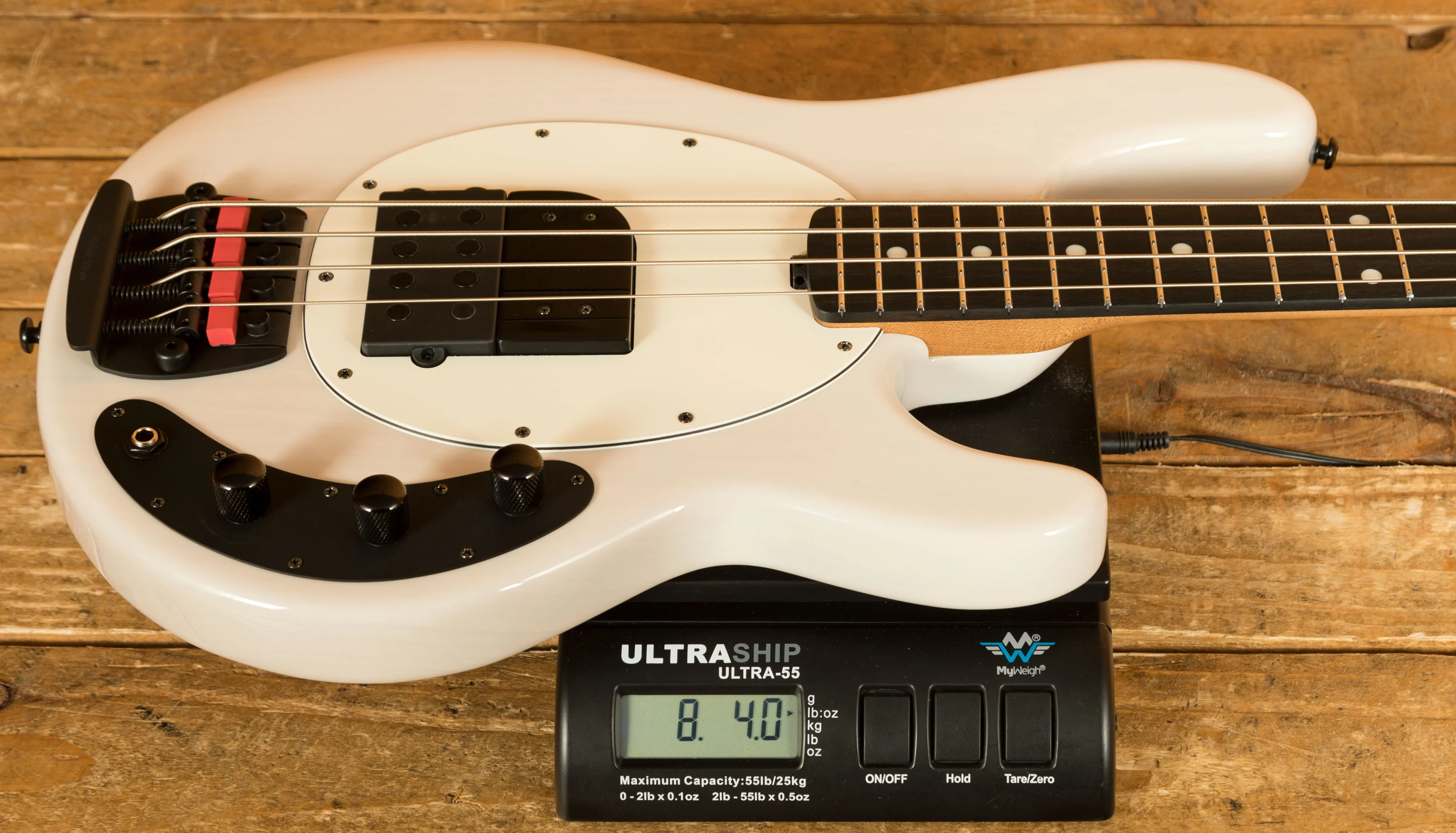 One of the most important features of this bass guitar is its electronics. This passive bass version features a Music Man Neodymium humbucker, which delivers powerful tones that just sound awesome. It features a push pull volume knob which engages a passive volume boost, a 3 way rotary pickup switch, and a really useful tone control