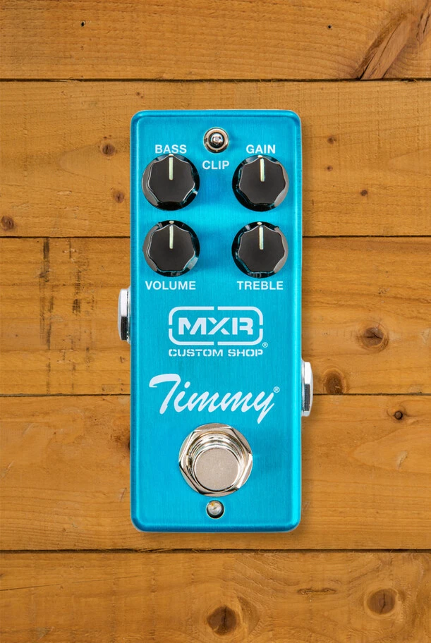 Thanks to Paul's inventive implementation of clipping options and tone controls, the Timmy Overdrive is a dream come true for working guitar players. The Clip switch provides three different clipping styles for a multitude of scenarios, whether you need a big, bold always-on sound with a ton of headroom to slam the front end of your amp, a more compressed and saturated sound for fat chords, or anything in between. The Bass and Treble controls offer further refinement in two key ways. First, they're cut-only, keeping your signal's character intact while making it super easy to dial in a clean boost. Second, Paul wired the Bass control to affect your pre-OD signal so that you can your maintain low end at lower Gain settings and the Treble control to affect your post-OD signal so that you can adjust the top end to keep dirty settings smooth and musical.