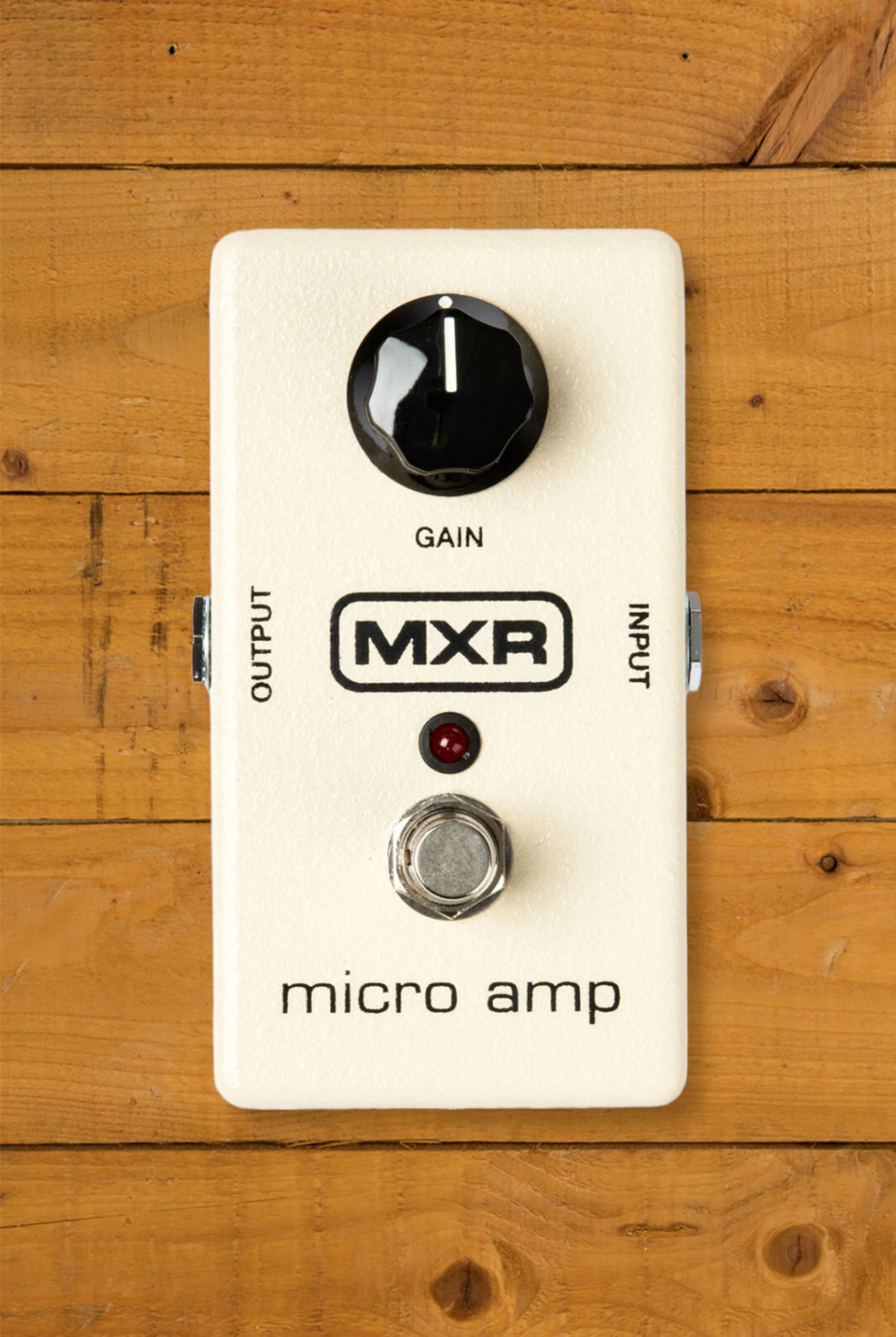 Adding a preset amount of gain with just a single control, the Micro Amp is a great way to boost your signal for lead work or adjust between two different guitars with unmatched output (i.e. humbuckers to single-coils). It can also provide a permanent boost in a long effects chain where signal drop off is a problem.