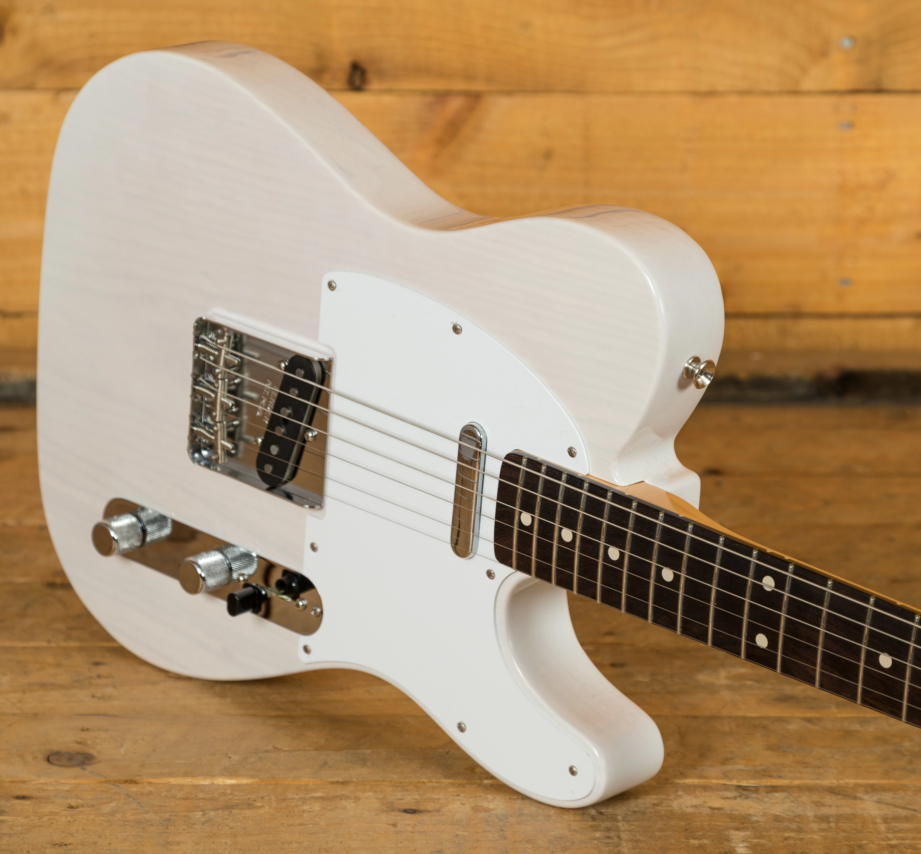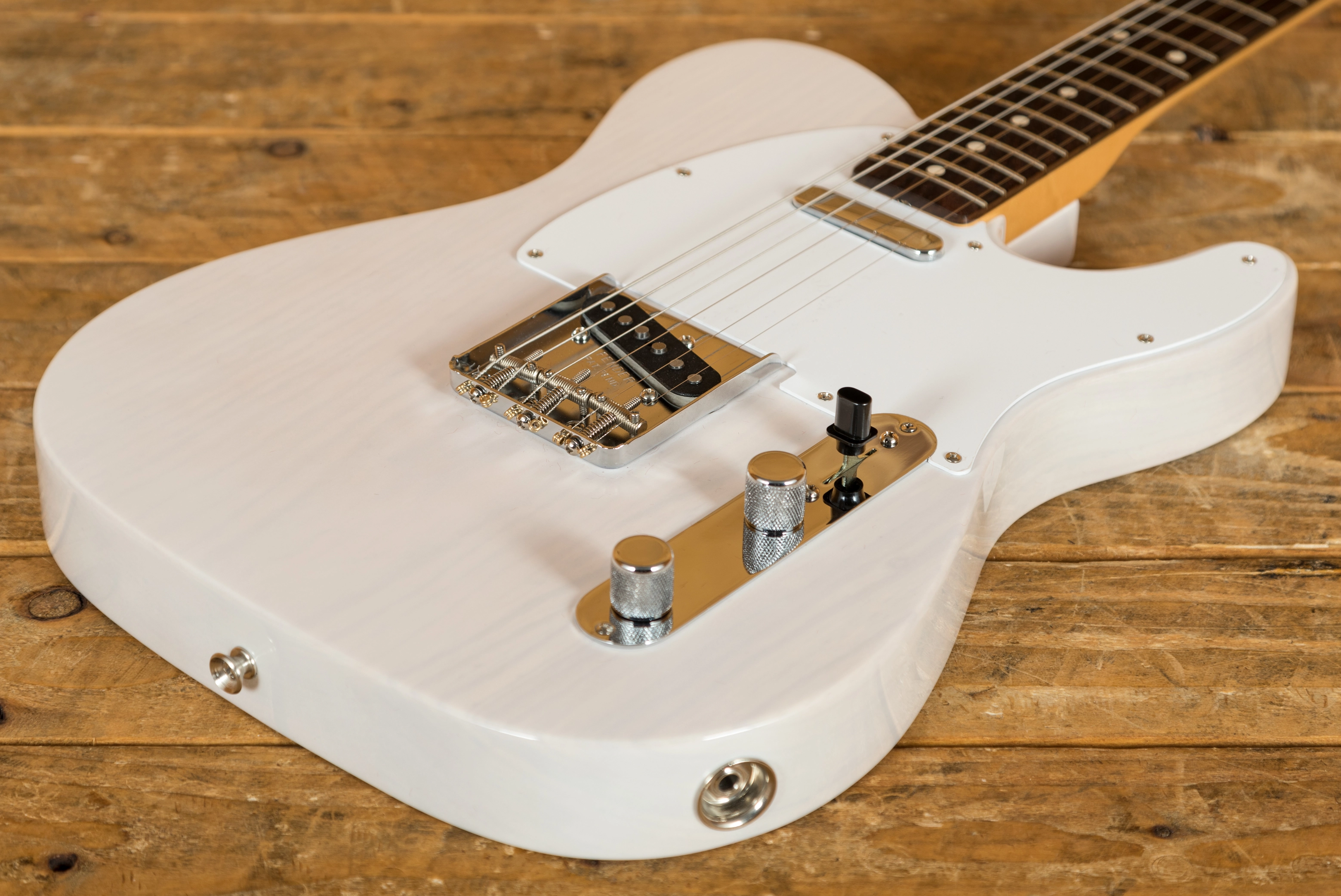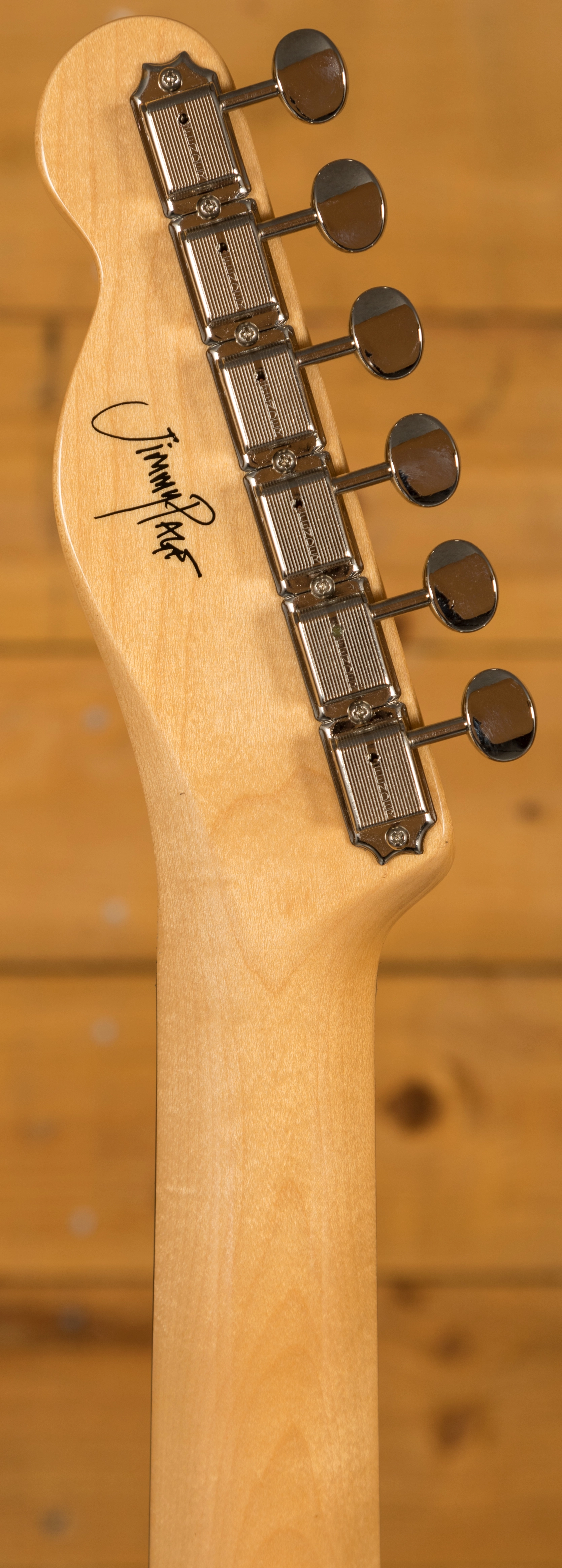 The Jimmy Page Mirror Telecaster features a two-piece ash body, lacquer finish and a pair of Jimmy Page Custom '59 Tele single-coil pickups that deliver the incendiary, full-bodied tone that inspired all the unforgettable licks on Led Zeppelin's first album. The custom "Thin D"-shaped maple neck has a 7.25"radius slab rosewood fingerboard with 21 vintage-style frets, giving it a smooth playing feel. The "toploader" bridge allows for through-body or top-load stringing, which produces a rounder, warmer tone and less tension so you can bend the strings with ease. Other features include a bone nut vintage-style round string tree and Pure Vintage Single Line "Fender Deluxe" tuning machines for authentic style and performance.