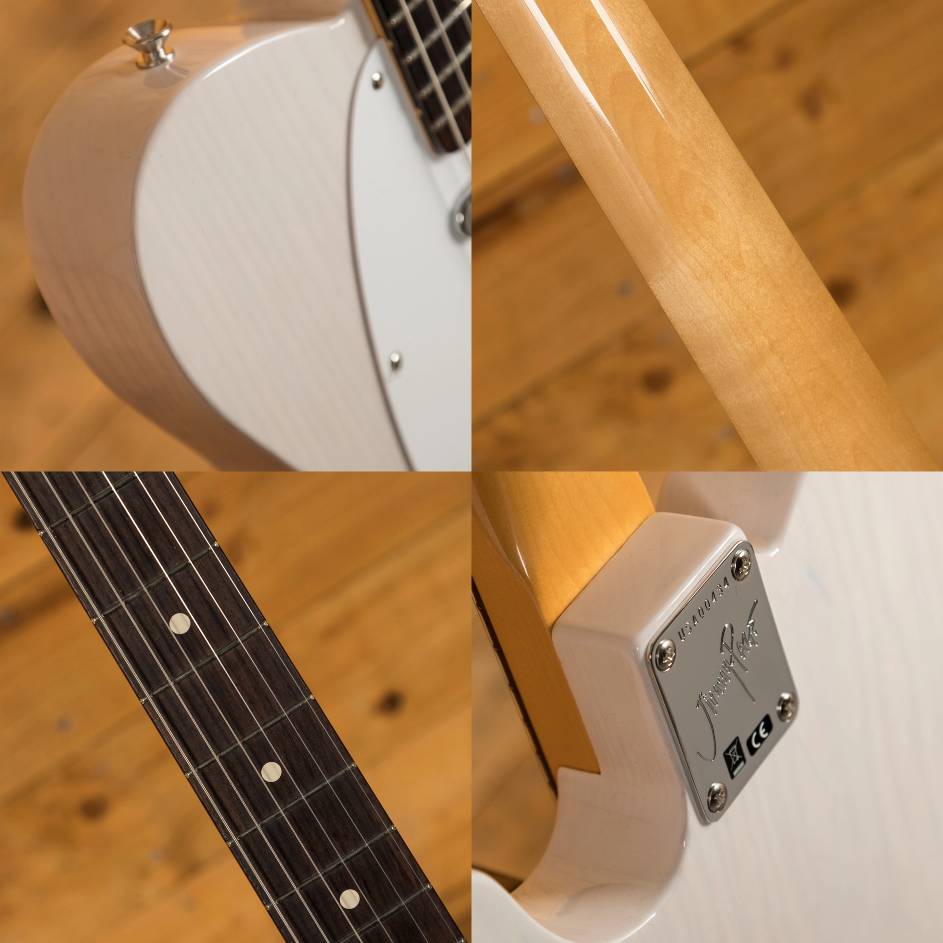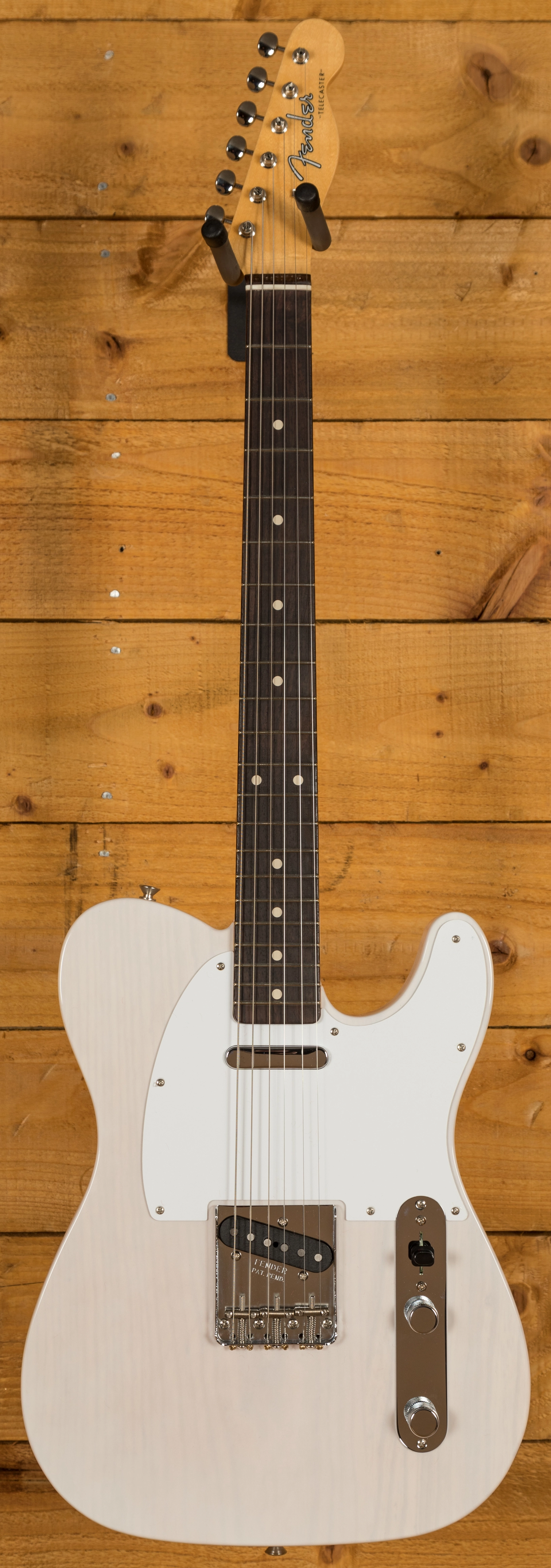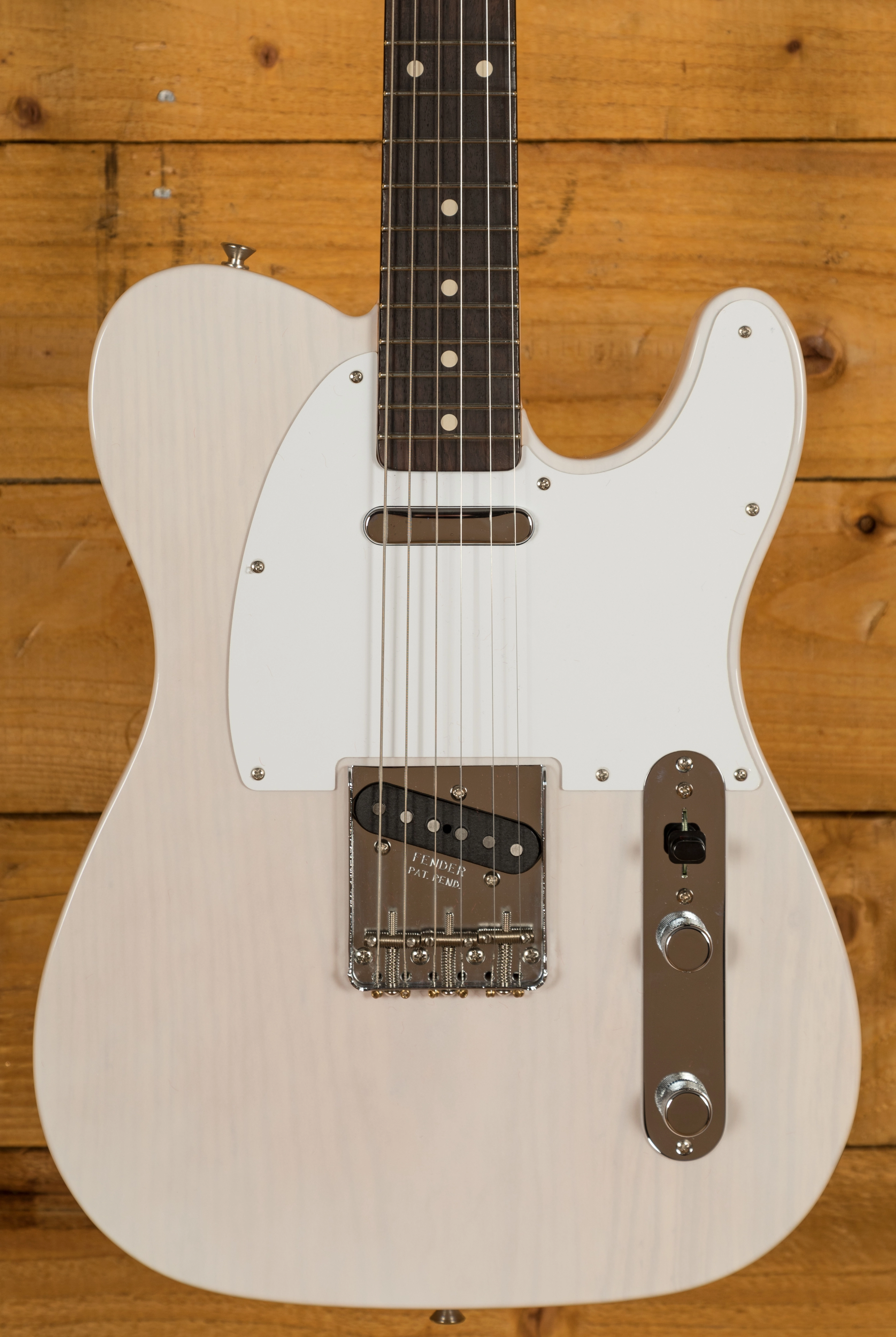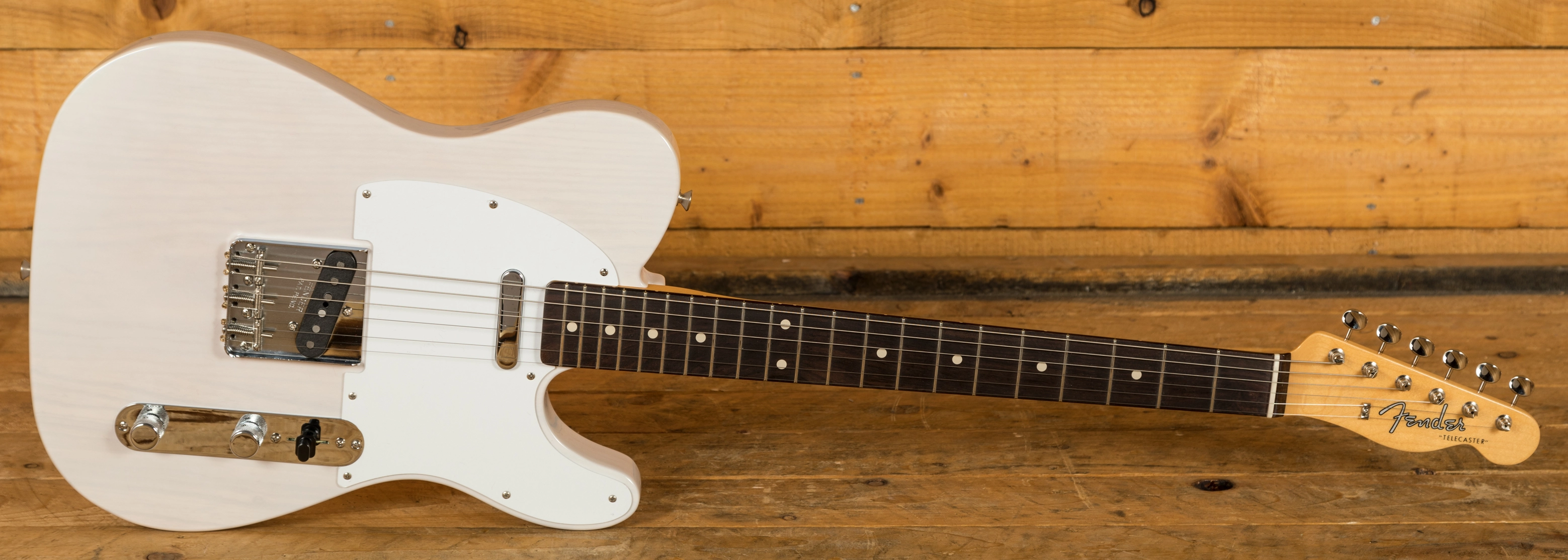 The Jimmy Page Mirror Telecaster features a two-piece ash body, lacquer finish and a pair of Jimmy Page Custom '59 Tele single-coil pickups that deliver the incendiary, full-bodied tone that inspired all the unforgettable licks on Led Zeppelin's first album. The custom "Thin D"-shaped maple neck has a 7.25"radius slab rosewood fingerboard with 21 vintage-style frets, giving it a smooth playing feel. The "toploader" bridge allows for through-body or top-load stringing, which produces a rounder, warmer tone and less tension so you can bend the strings with ease. Other features include a bone nut vintage-style round string tree and Pure Vintage Single Line "Fender Deluxe" tuning machines for authentic style and performance.