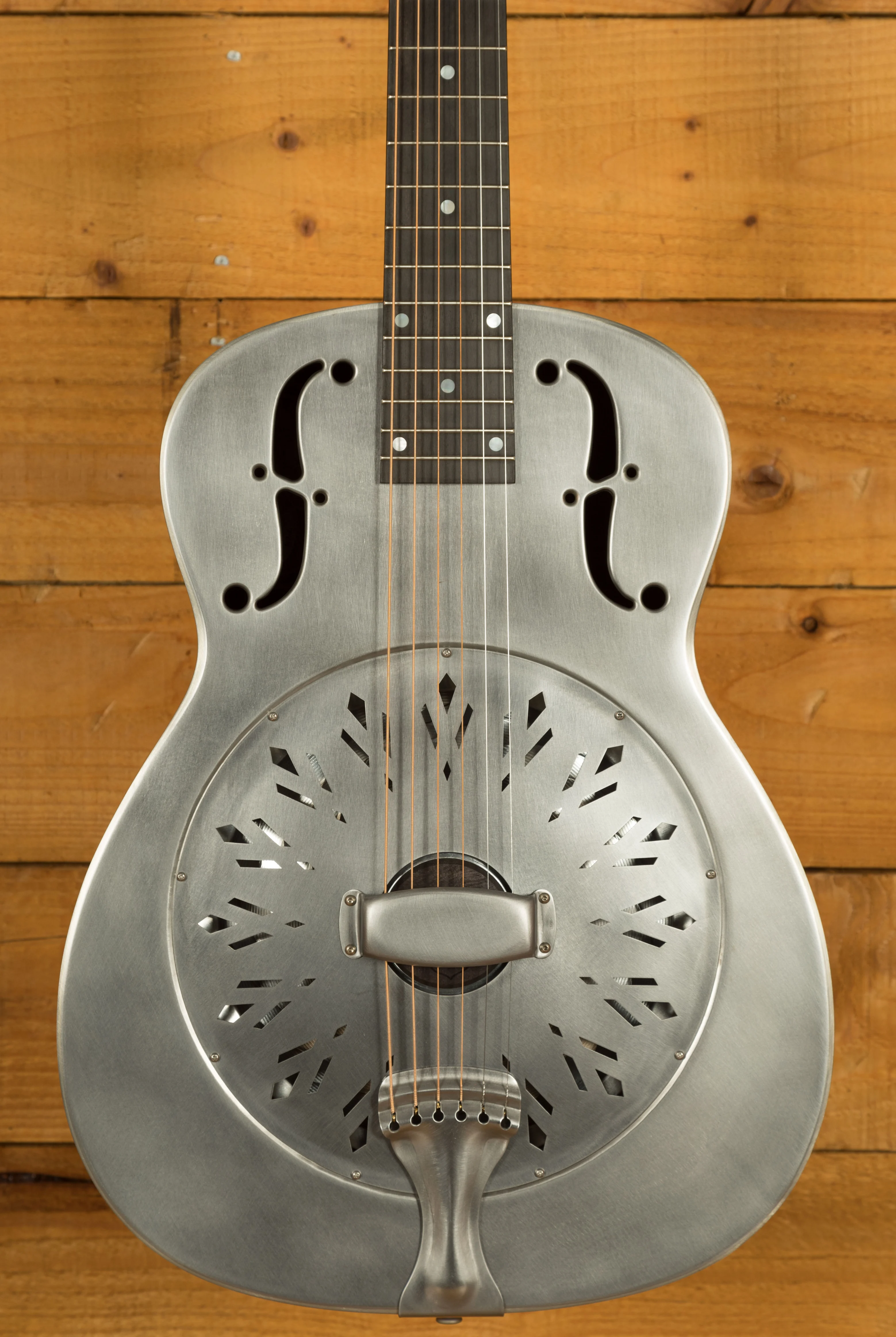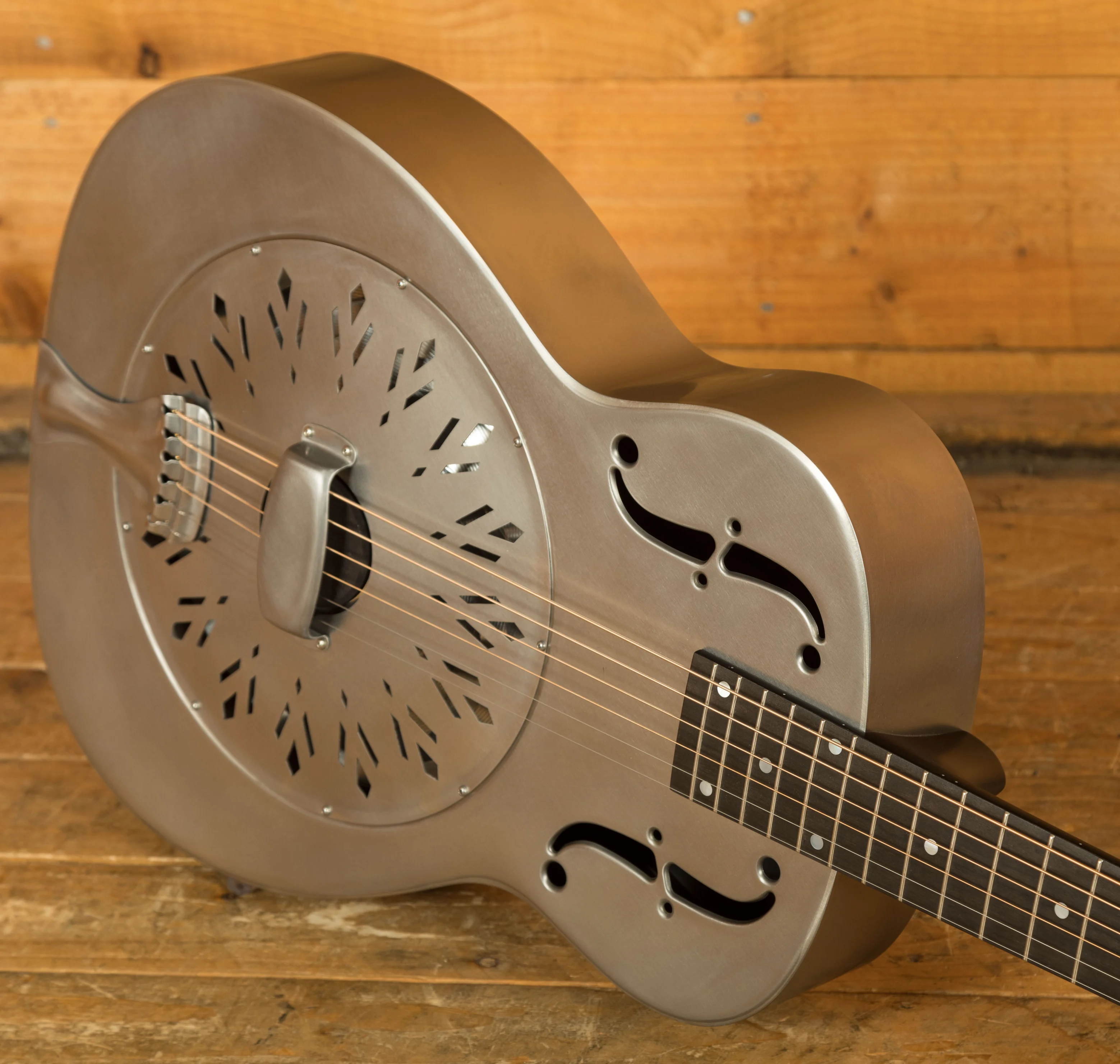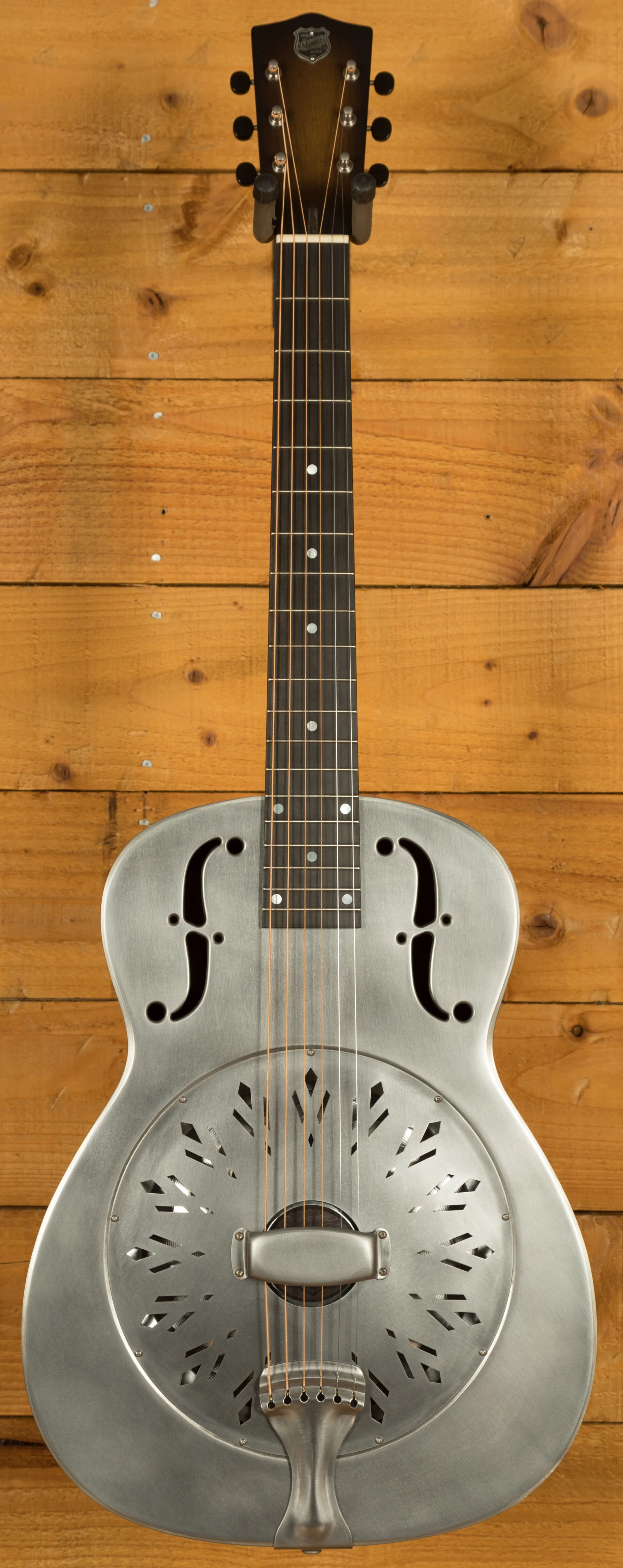 One of the standout lines from National is the Raw Series, featuring a minimalistic, wax-finished body that delivers a naturally smooth feel. Over time, these instruments develop a patina, giving each guitar a unique, vintage look. The guitar described here boasts a steel body, complete with a hardrock maple neck and a distinctive "chicken-foot" resonator coverplate.