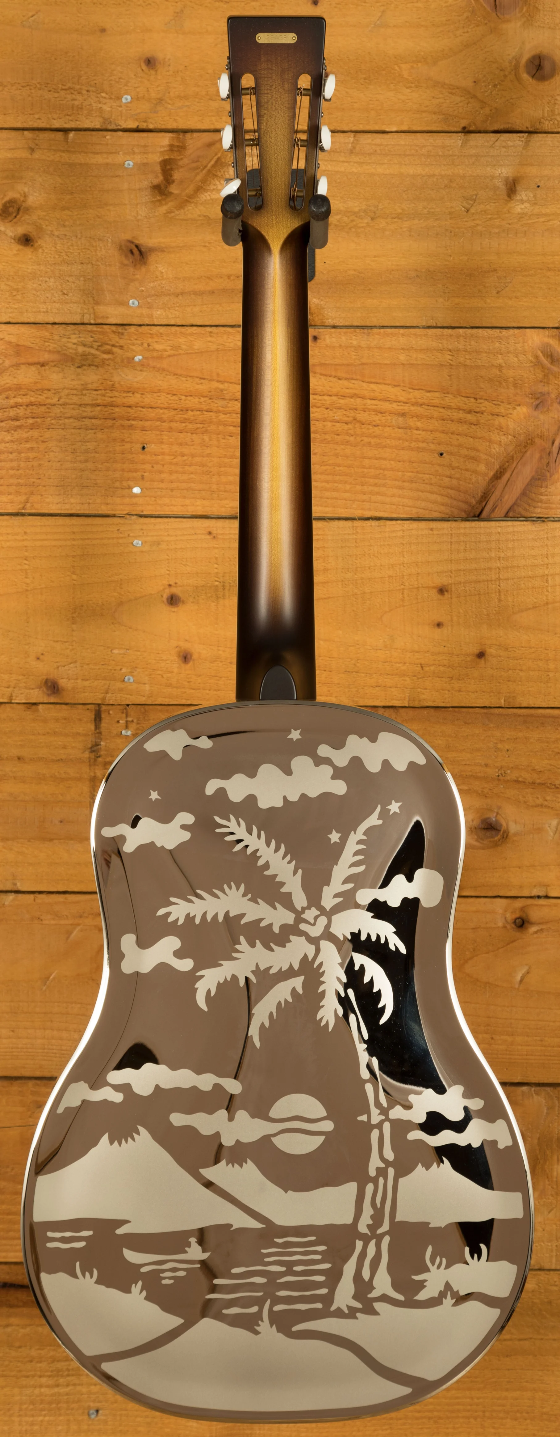 Today's Style O is built with the same attention to detail that made it famous. The body, crafted from brass and polished to a mirror-like finish, is plated in nickel and etched with the famous scene of the Aloha Isles, capturing the tropical allure that has defined its aesthetic for generations. The maple neck is finished in a classic sunburst, while the ivoroid-bound ebony fretboard is crowned by vintage-style engraved tuners, combining elegance with a nod to its rich history.