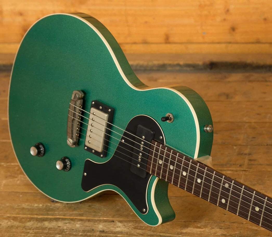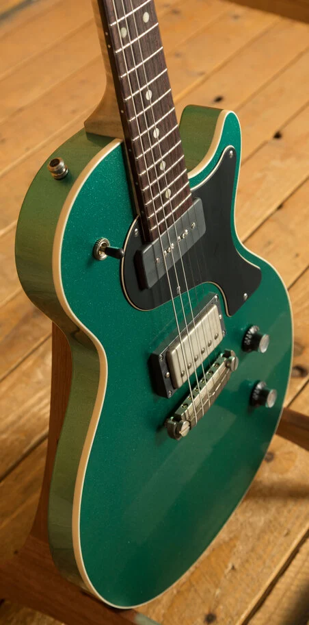 The Curly Maple neck feels great underhand, the neck is finished the same as the body but it retains a smooth, immaculate feel. With a 25" scale length, 22 medium jumbo frets and a 10"-14" compound radius, it's a modern design with a real vintage heart. The Rosewood fingerboard looks great and feels ever better, perfectly complementing the aesthetic, every element of this guitar has been considered to the highest level.
