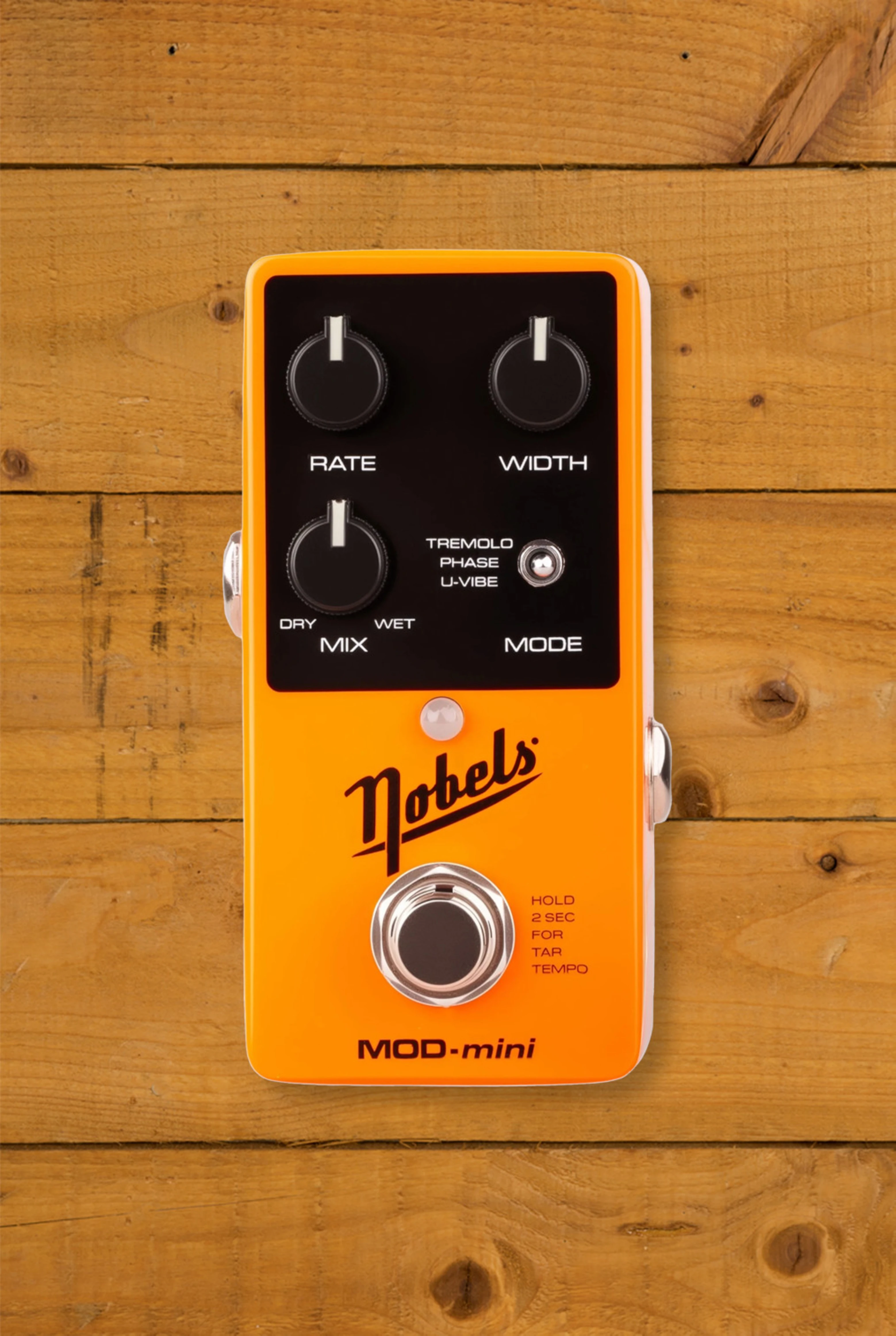 The Nobels MOD-mini is a versatile modulation pedal that packs three iconic effects into a compact housing. With Tremolo, Phaser, and Univibe modes, it delivers a wide range of vintage-inspired textures, from pulsating 60s tremolo to swirling 70s phaser and the warm, psychedelic character of the Univibe.