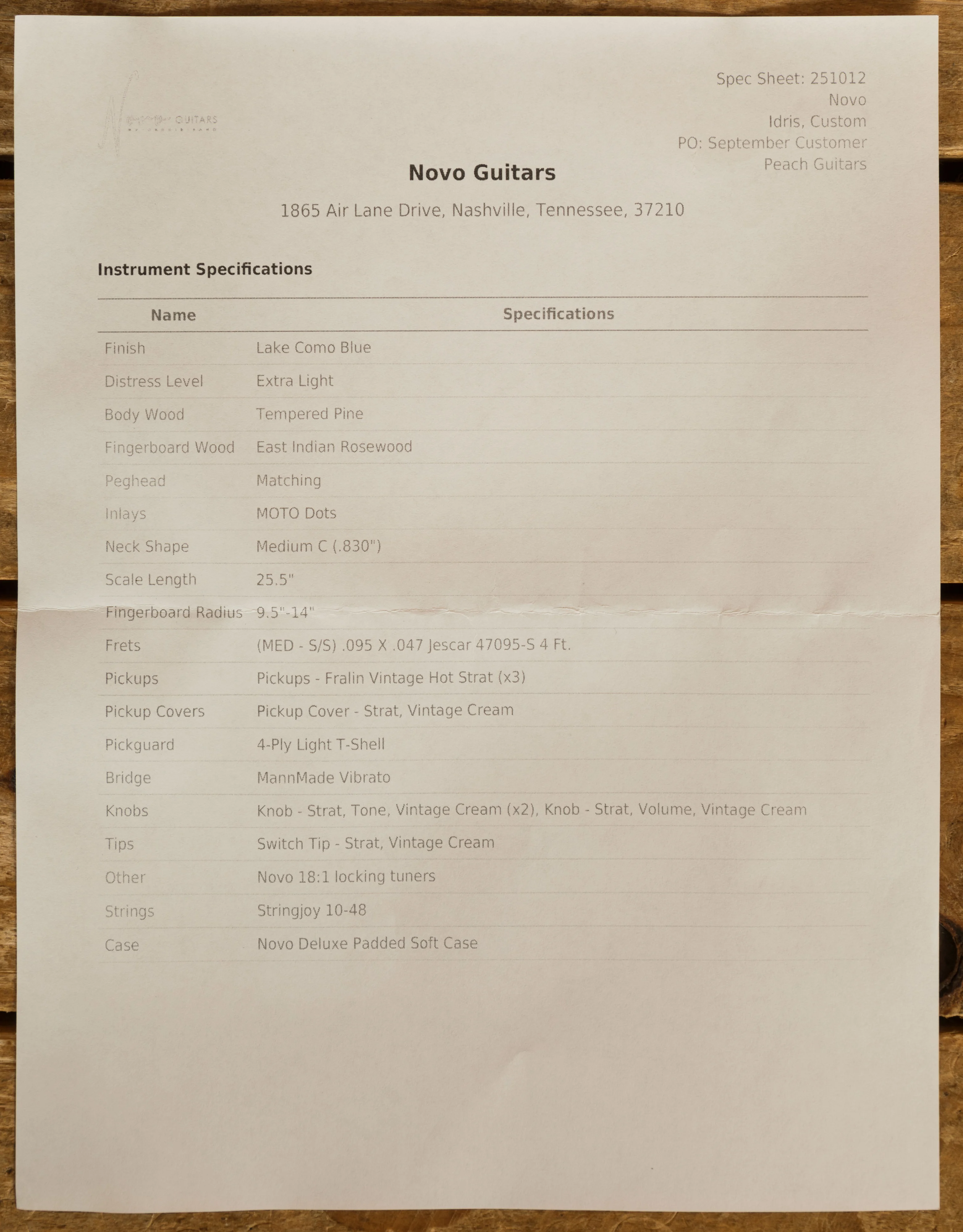 The Novo Idris S3 comes equipped with Stringjoy 10-48 strings, providing a balanced tension across the fretboard. A Deluxe Padded Gig Bag ensures that your Novo is protected on the go.