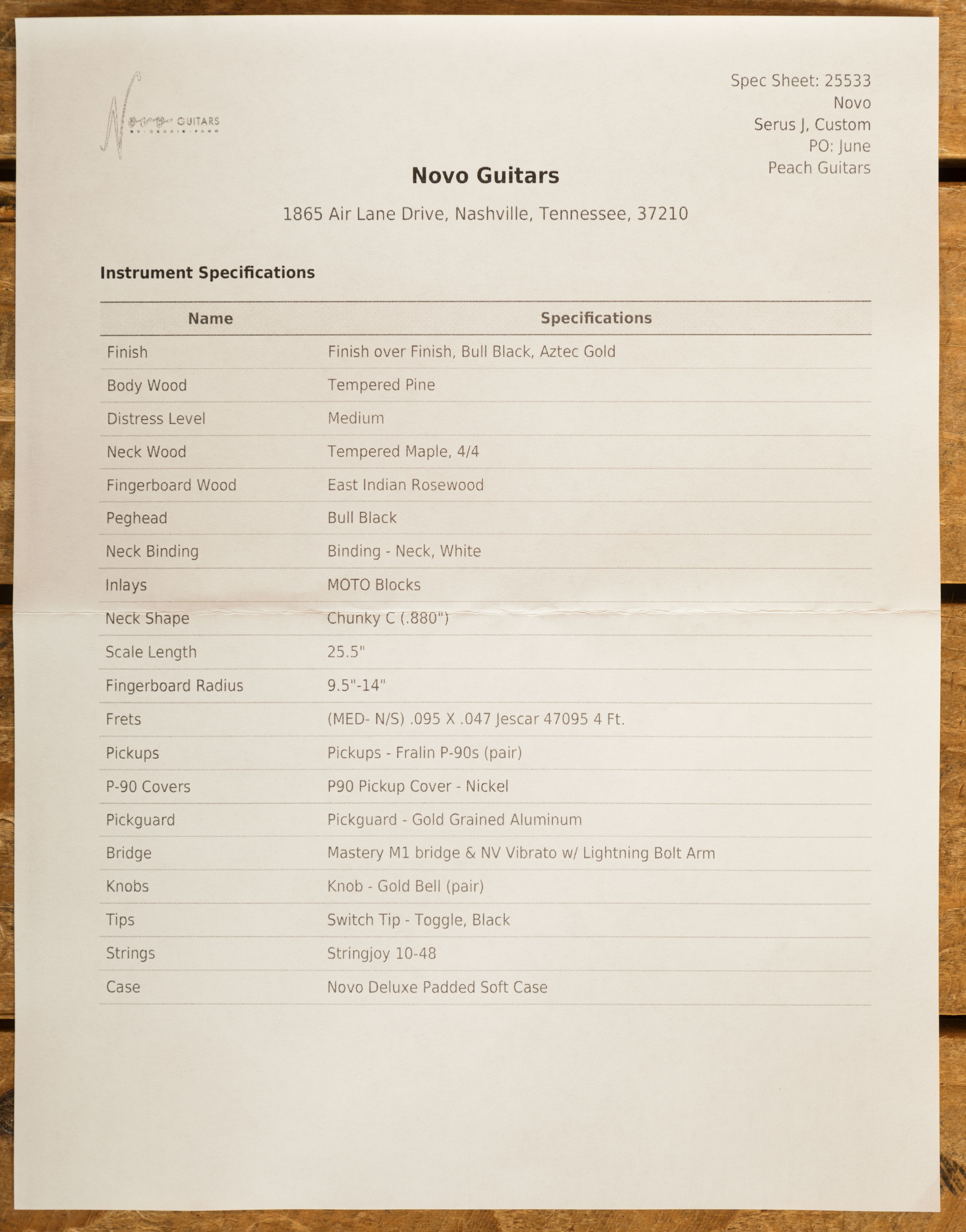The Novo Serus J in Aztec Gold over Bull Black is a stunning showcase of boutique craftsmanship and sonic character, handbuilt in Nashville with a meticulous blend of vintage influence and modern precision. Every detail has been considered - from its tonewood selection to the finish distressing - resulting in a guitar that feels broken-in from day one, but shines like a showpiece.