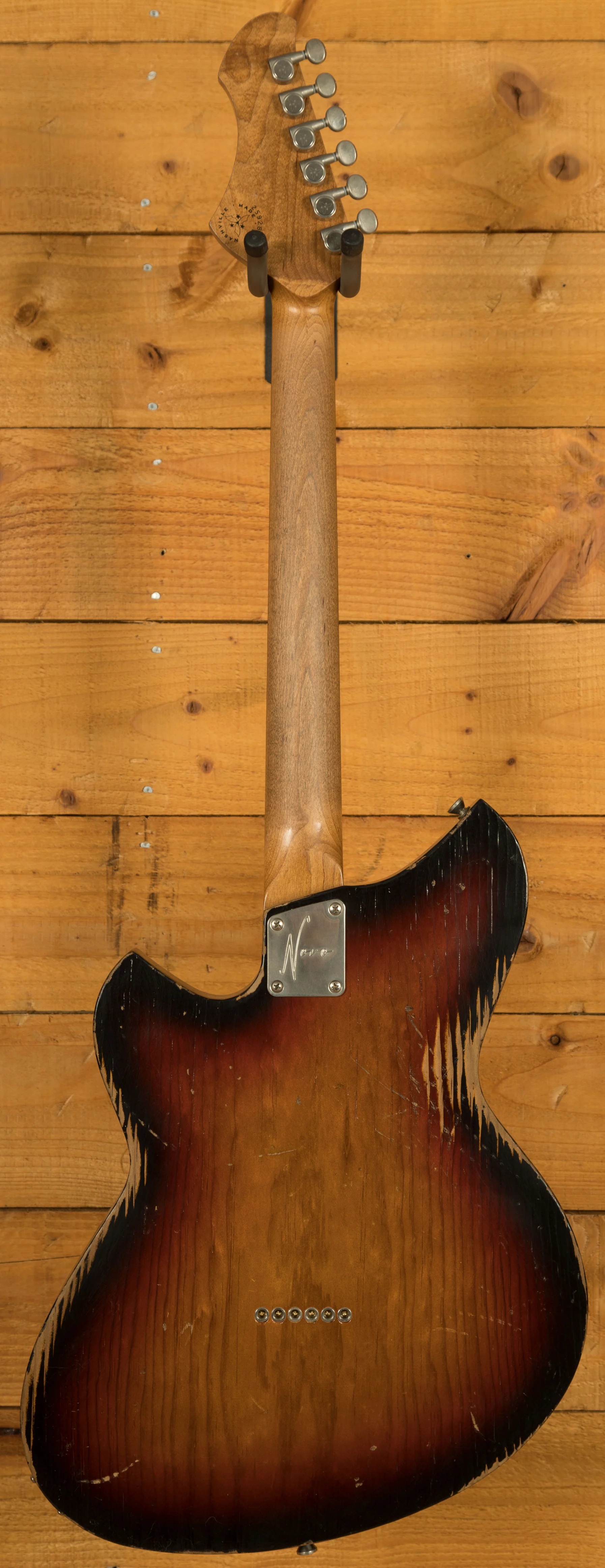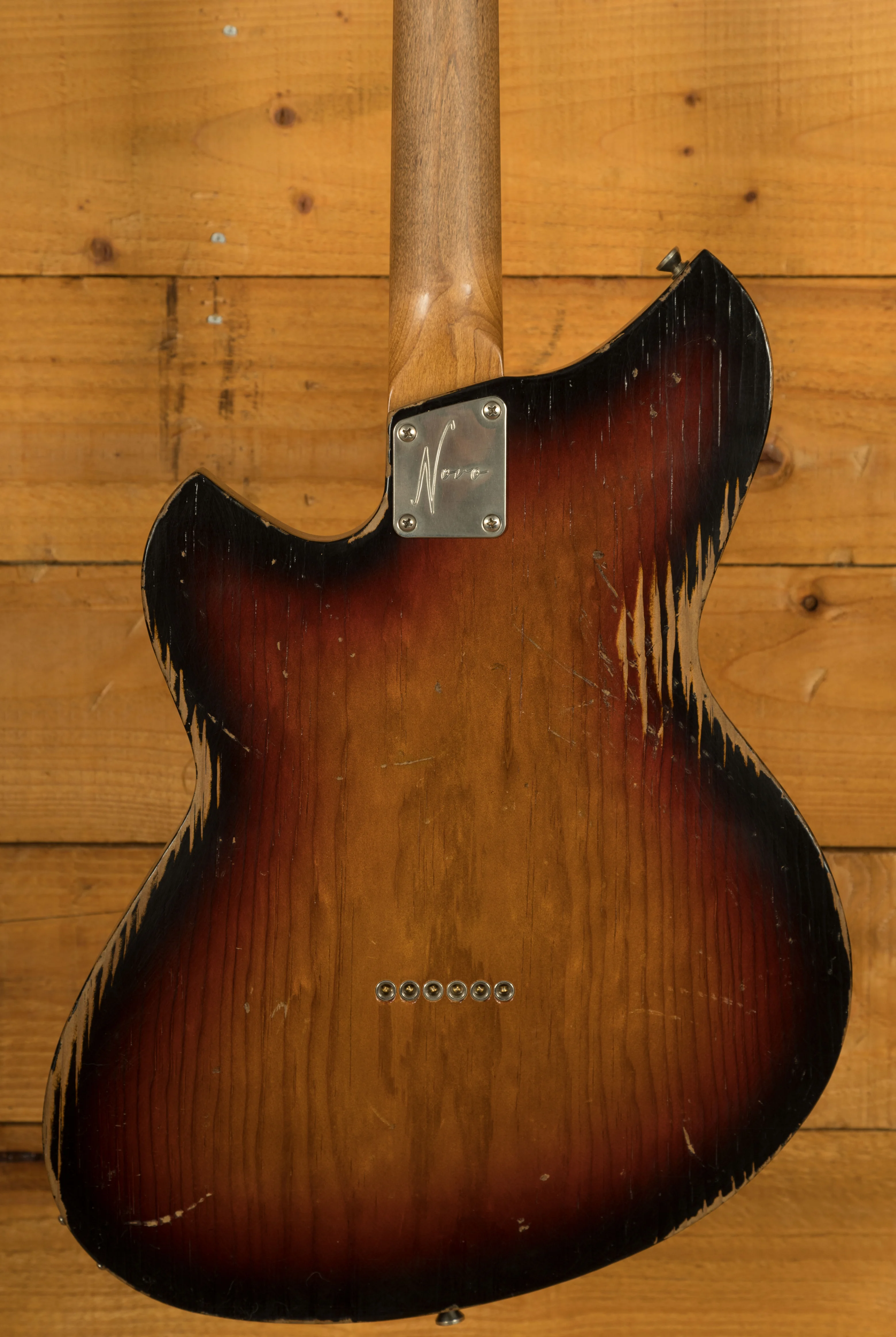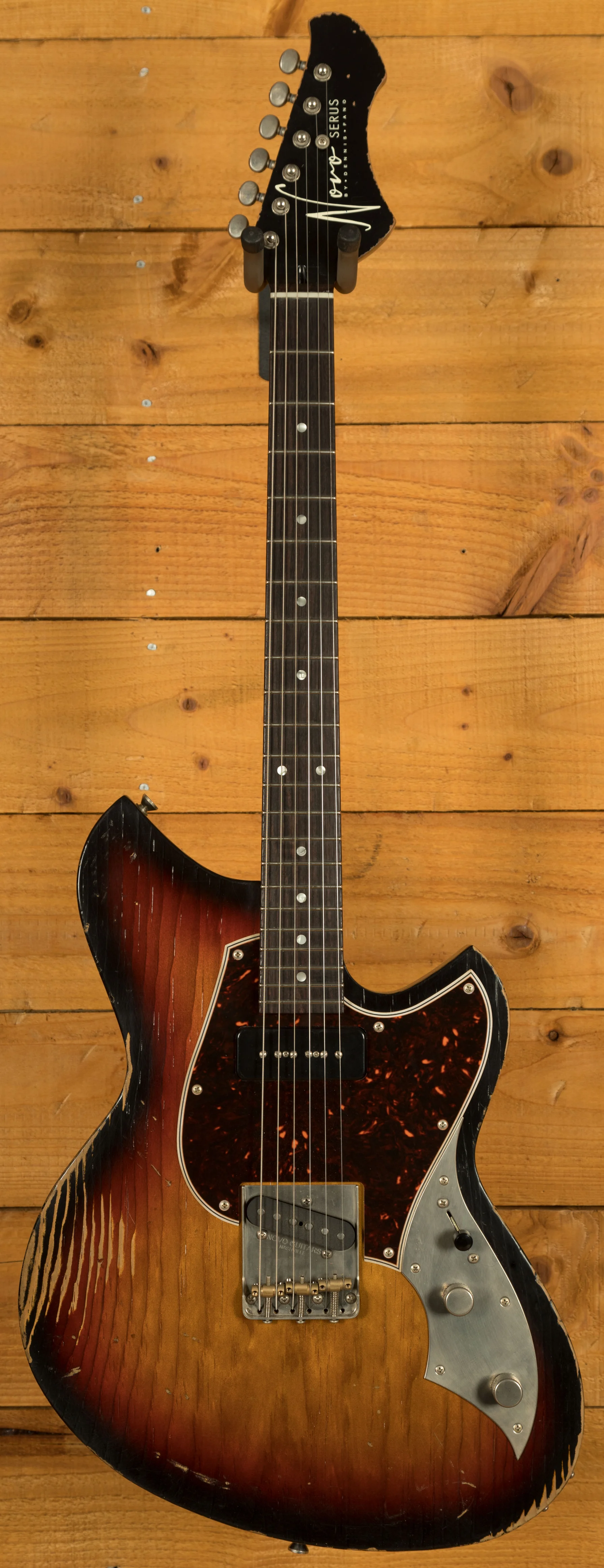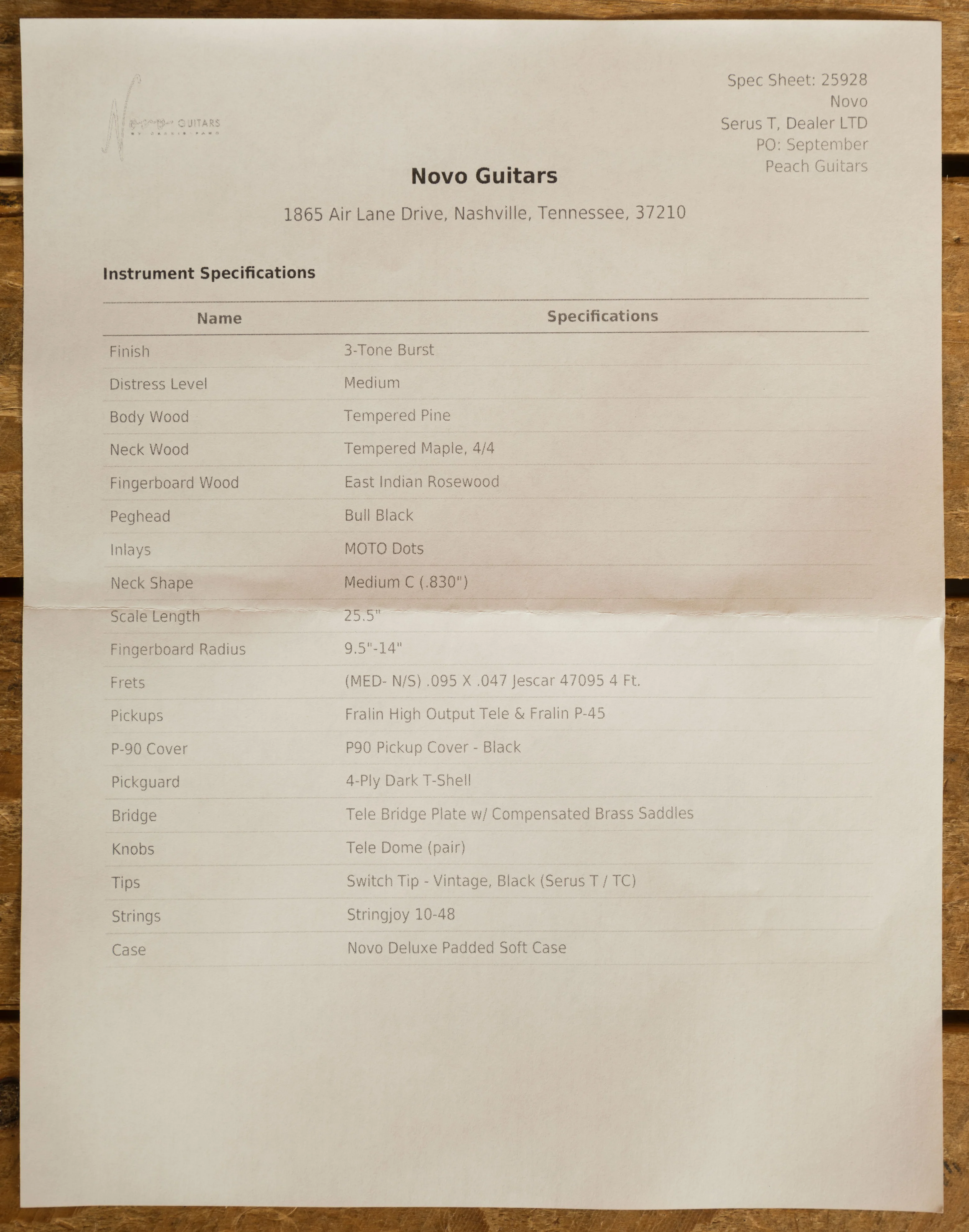 The bridge of the Serus T is a Tele bridge with compensated brass saddles, ensuring precise intonation and optimal sustain. The attention to detail in the construction, from the authentic and lively distressing to the tempered woods used in the neck and body, speaks to Novo's commitment to excellence in both form and function.