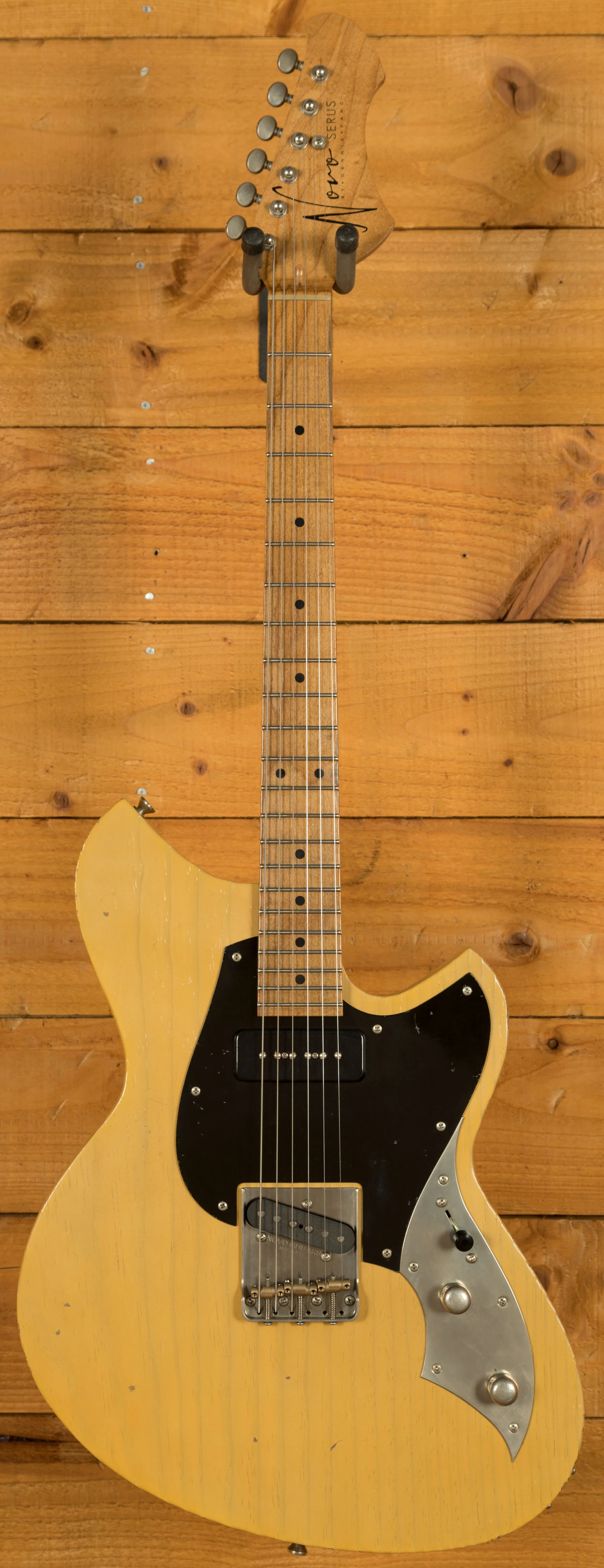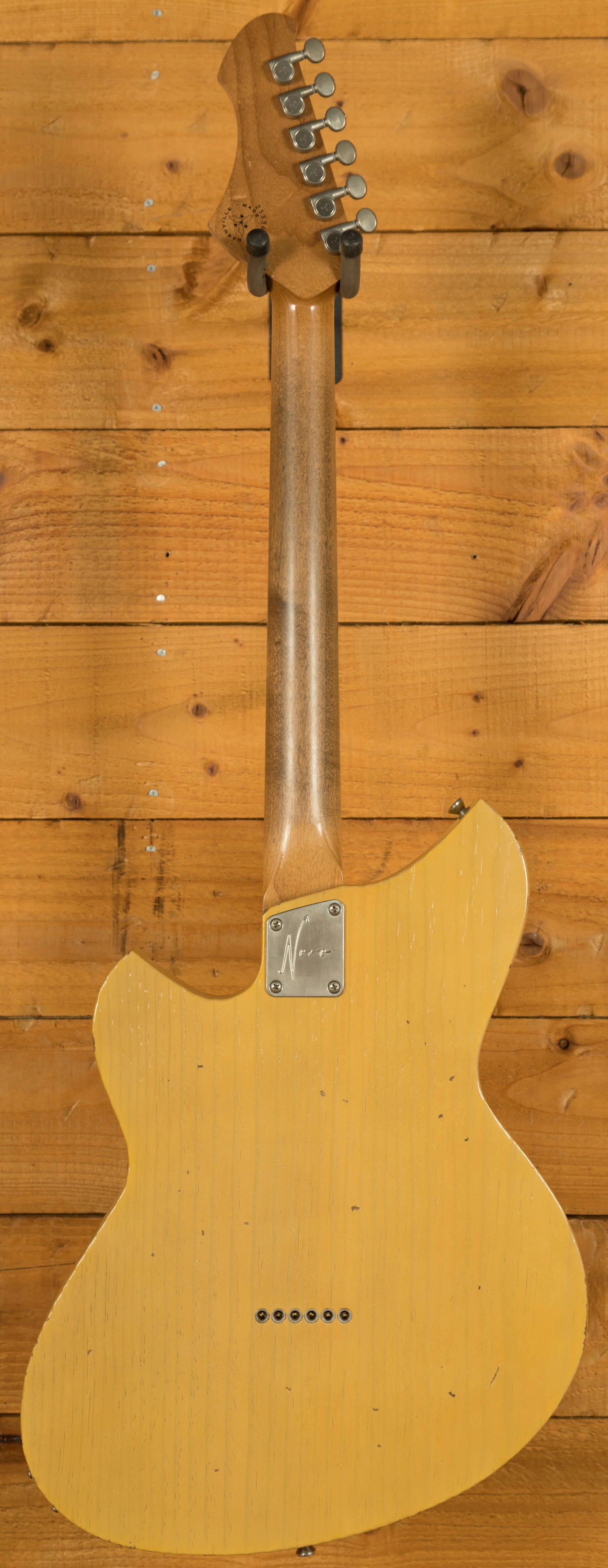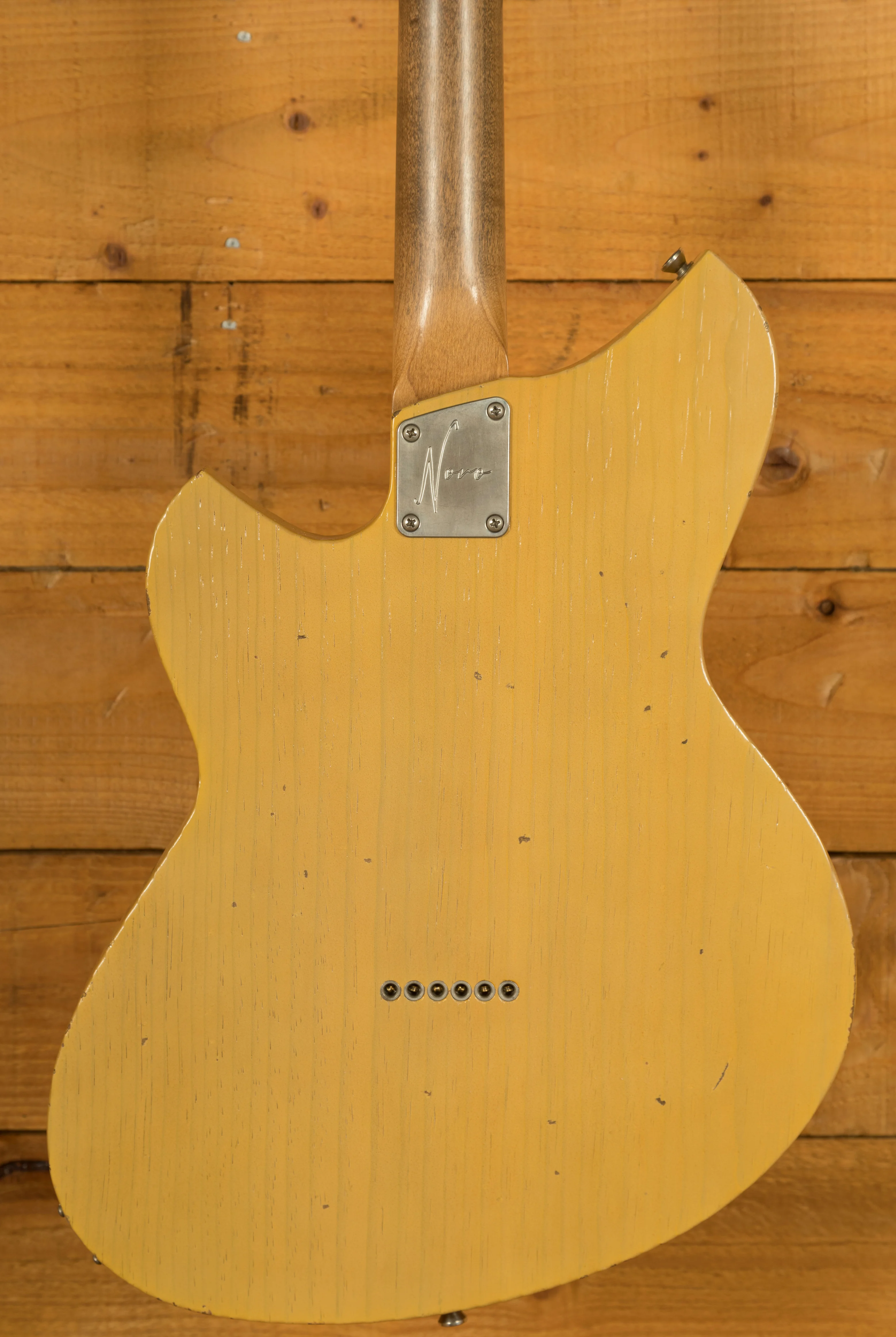 The bridge of the Serus T is a Tele bridge with compensated brass saddles, ensuring precise intonation and optimal sustain. The attention to detail in the construction, from the authentic and lively distressing to the tempered woods used in the neck and body, speaks to Novo's commitment to excellence in both form and function.