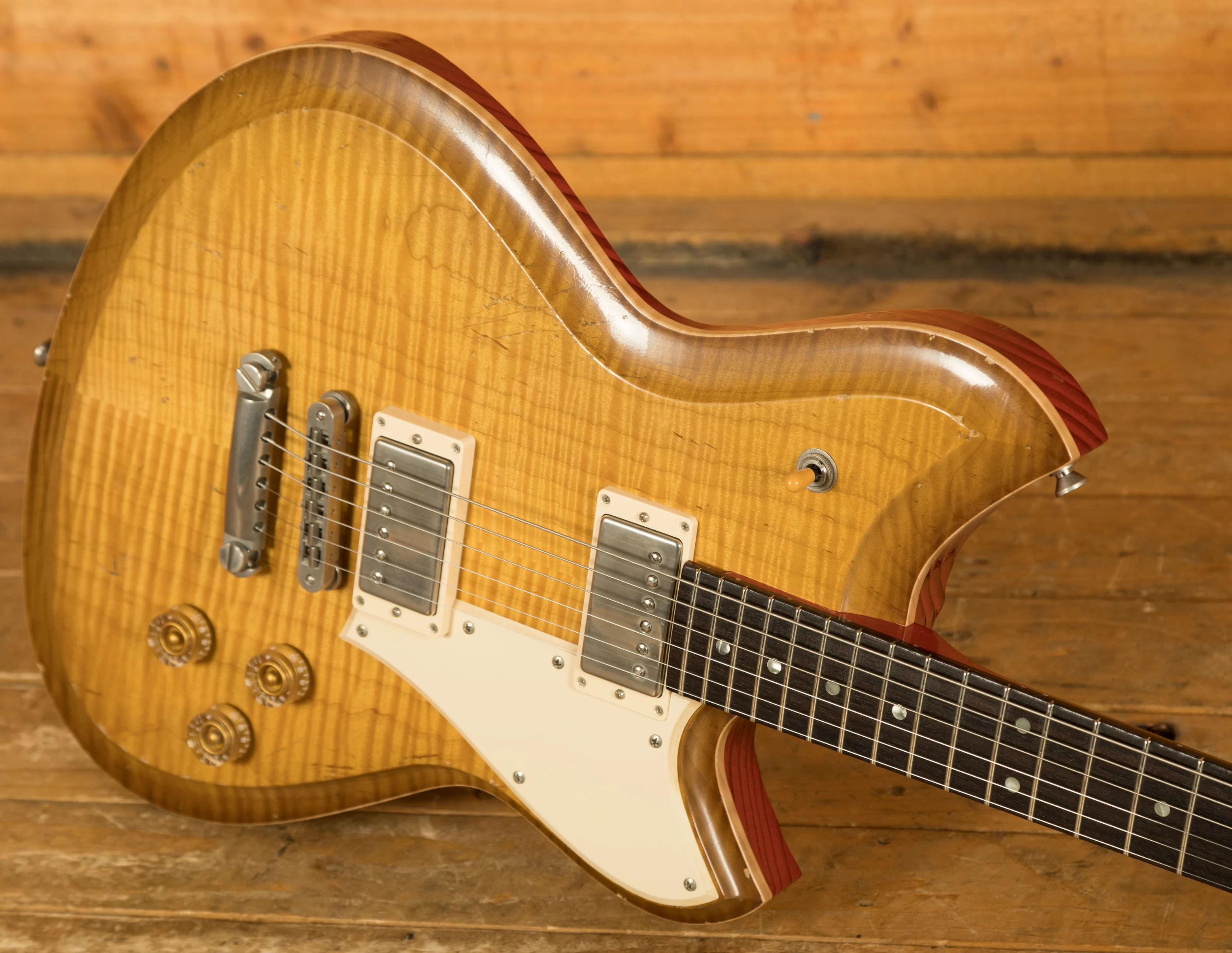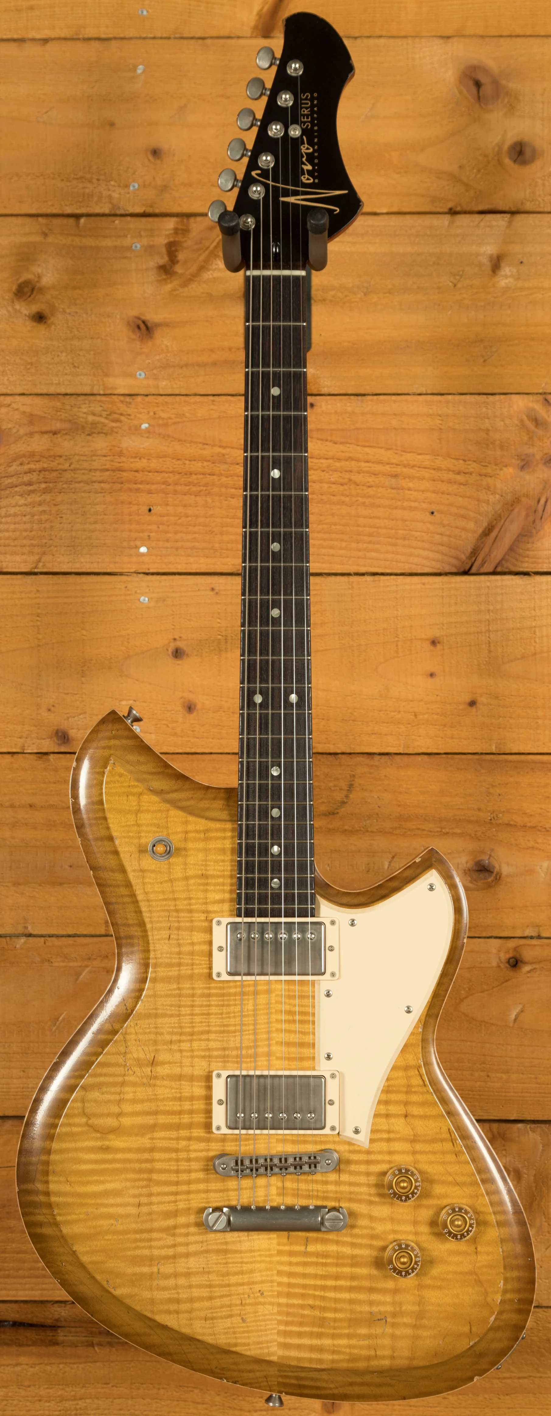 This guitar takes inspiration from the golden era of electric guitar design. It features Novo’s trademark Tempered Pine body alongside a highly figured piece of Flame Maple. The Maple top also features Novo’s awesome German Carve, which adds a lot of three-dimensional depth to the aesthetic! Novo only use the finest piece of timber, so you can rest assured that this guitar is crafted using the very best resources available. With a light distress effect, it looks super slick and has so much vibe and mojo!
