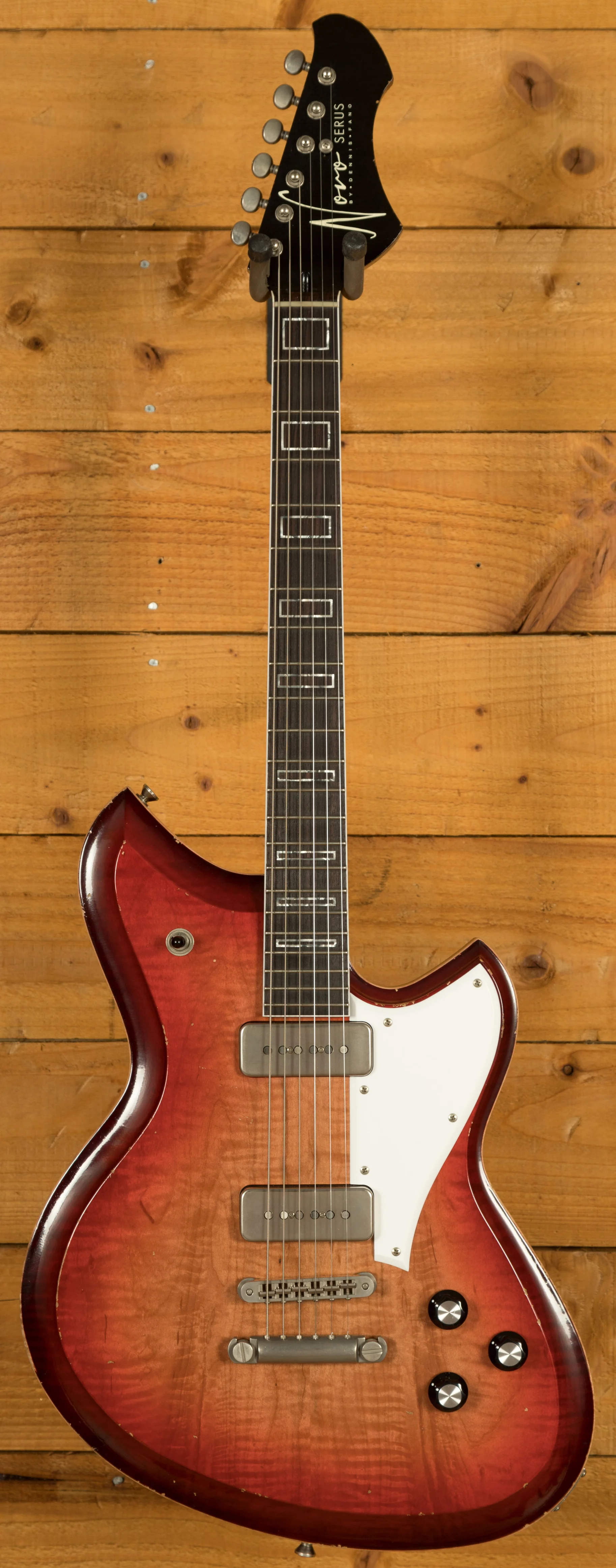The Novo Chambered Serus P2 is crafted from swamp ash for a lightweight feel and resonant tone, enhanced both visually and tonally by the German carve Eastern curly maple top. The neck, made from tempered maple, complements the body, providing stability and a smooth playing experience.