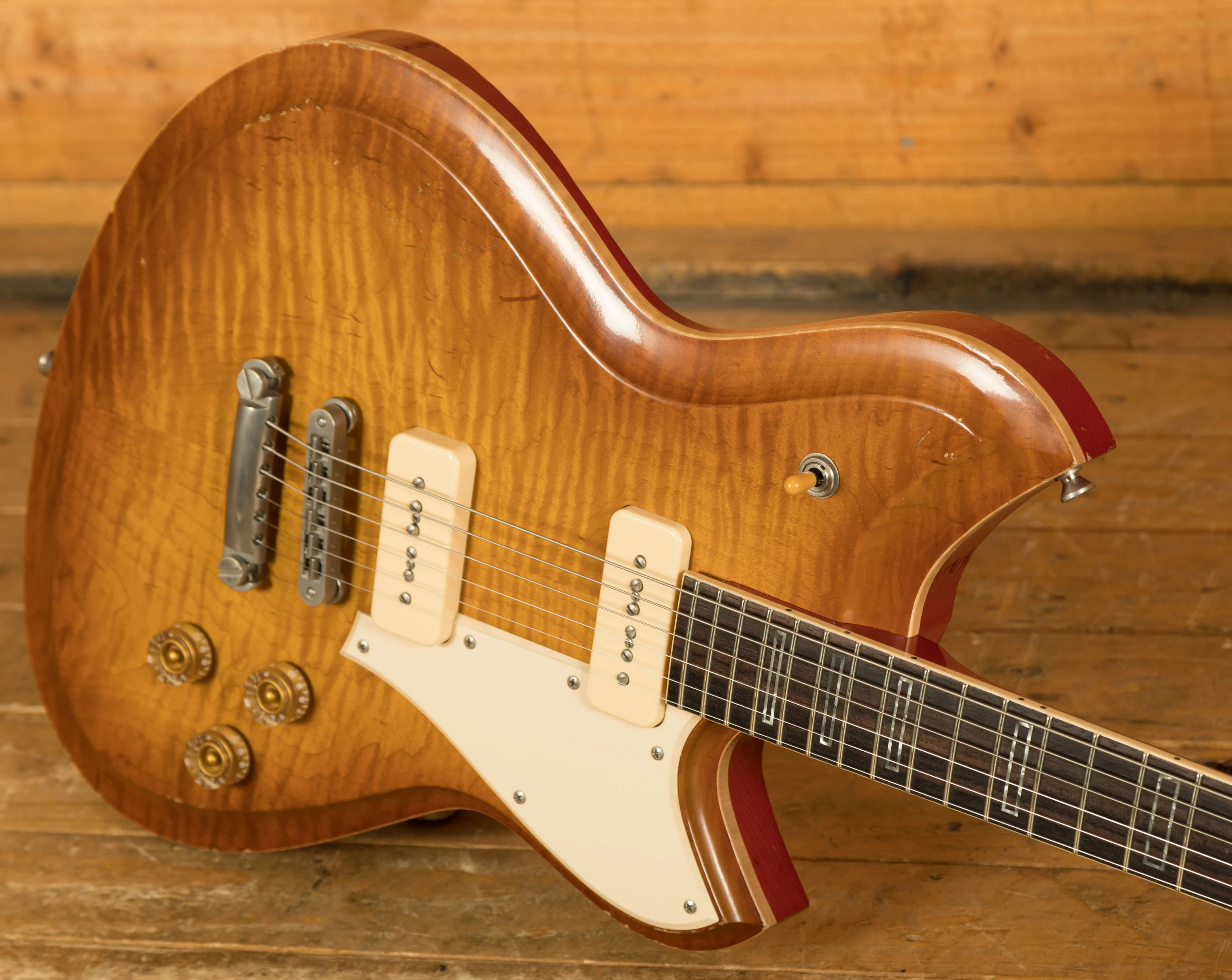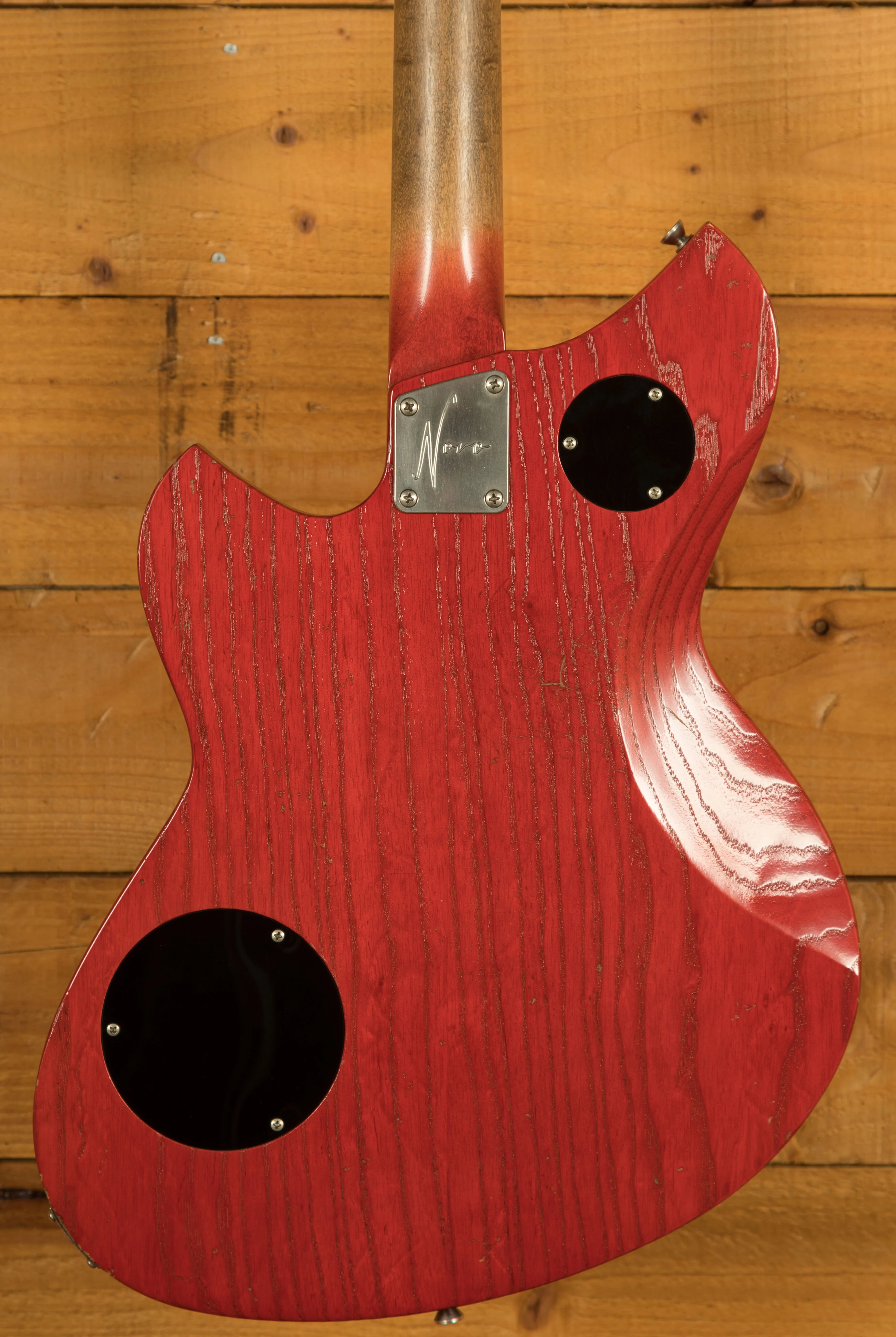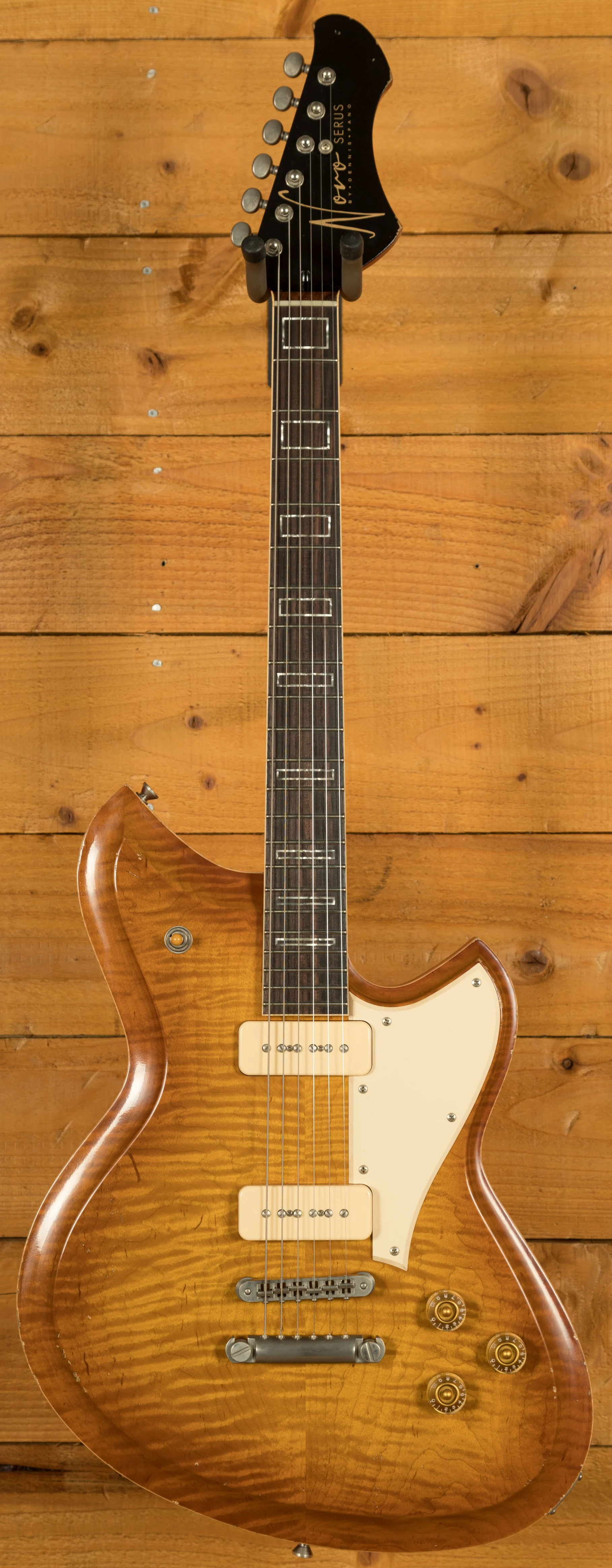 The Novo Chambered Serus P2 is crafted from swamp ash for a lightweight feel and resonant tone, enhanced both visually and tonally by the German carve Eastern curly maple top. The neck, made from tempered maple, complements the body, providing stability and a smooth playing experience.