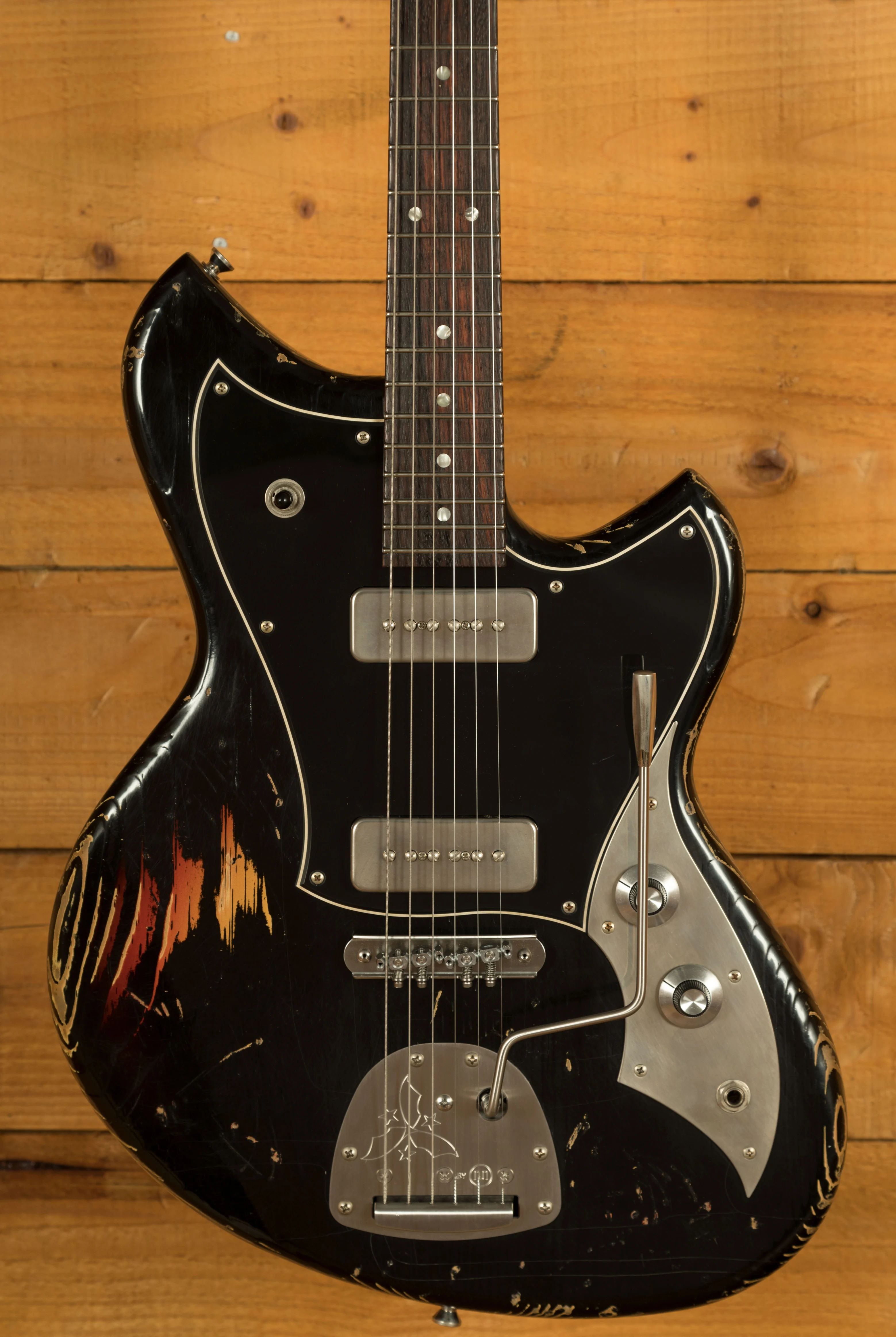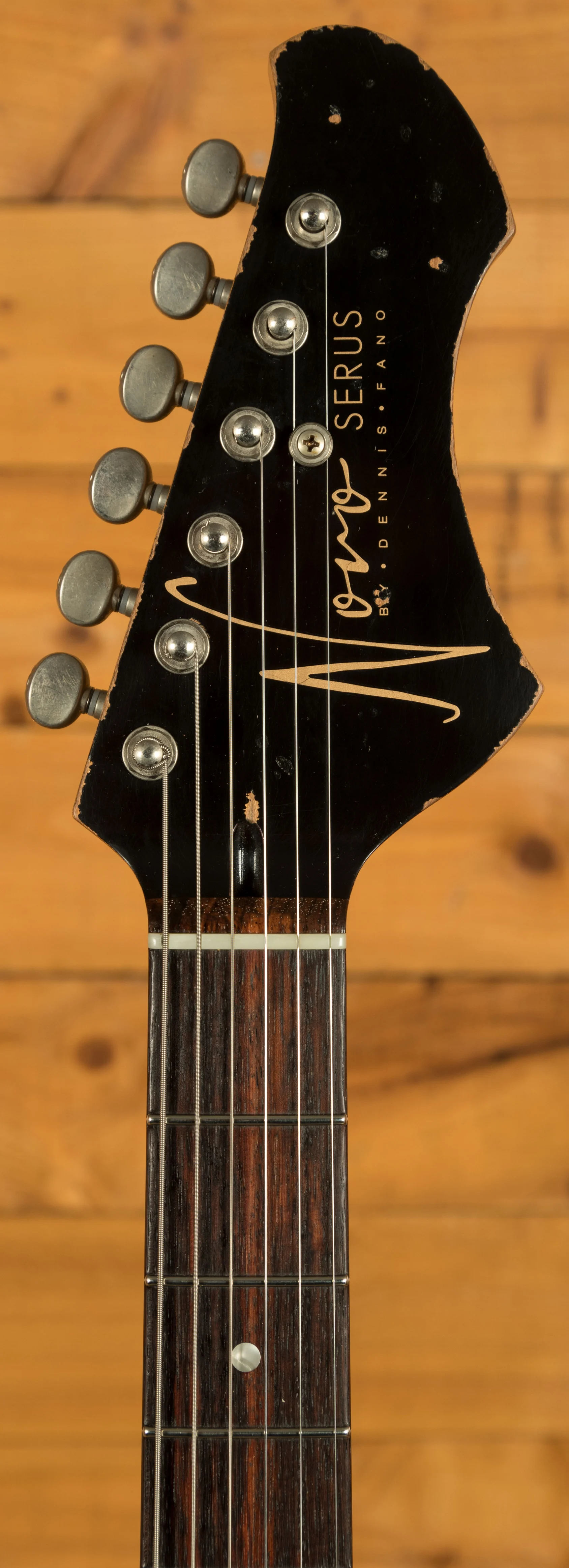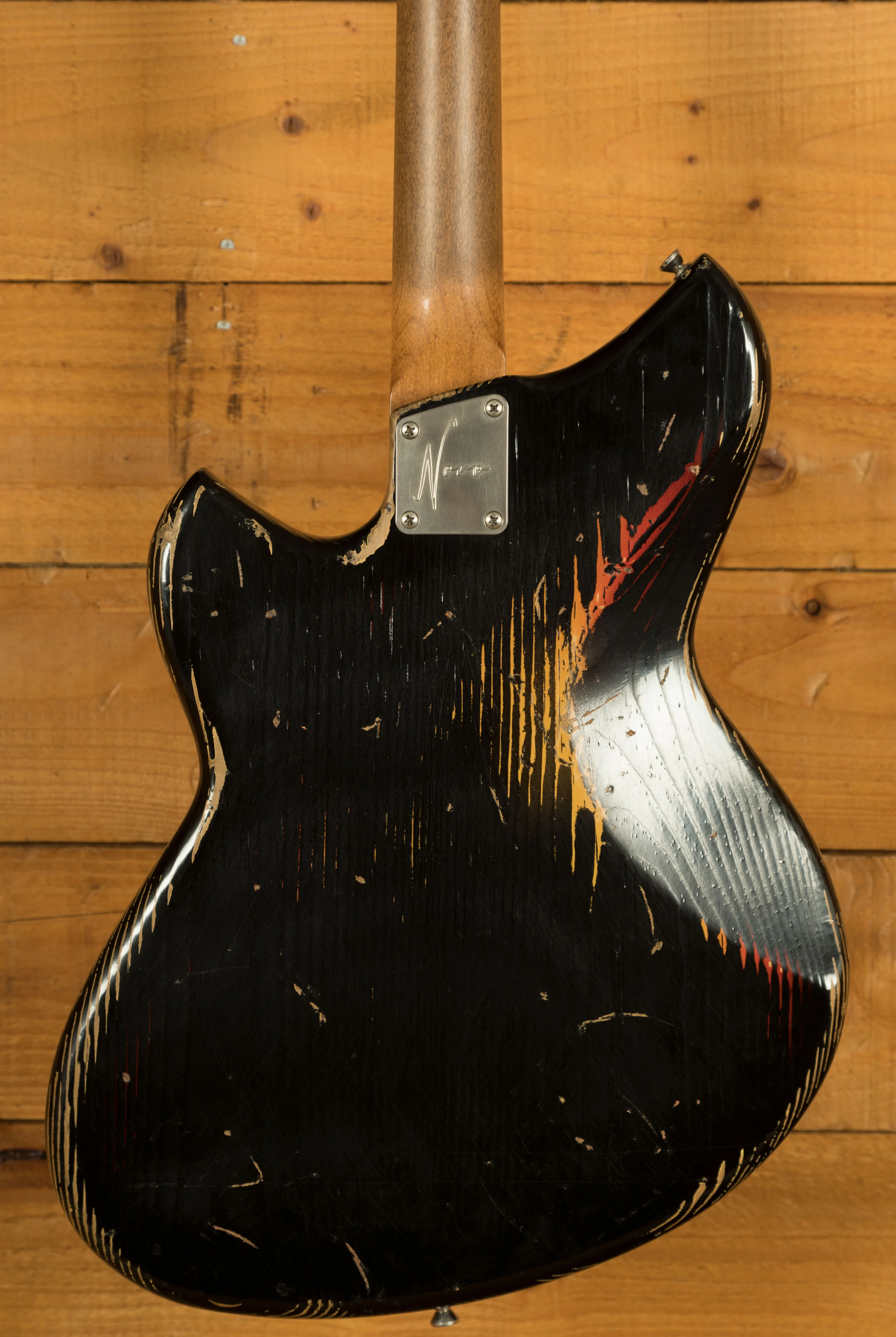 This Novo Serus J is crafted from tempered pine, offering a unique tonal character that sets it apart from the crowd. This lightweight and resonant wood contributes to the guitar's overall tonal excellence. The neck, made from tempered maple, complements the body, providing stability and a smooth playing experience. The rosewood fingerboard offers a smooth playing platform with a 9.5"-14" compound radius, Moto dot inlays, and medium nickel/silver frets.