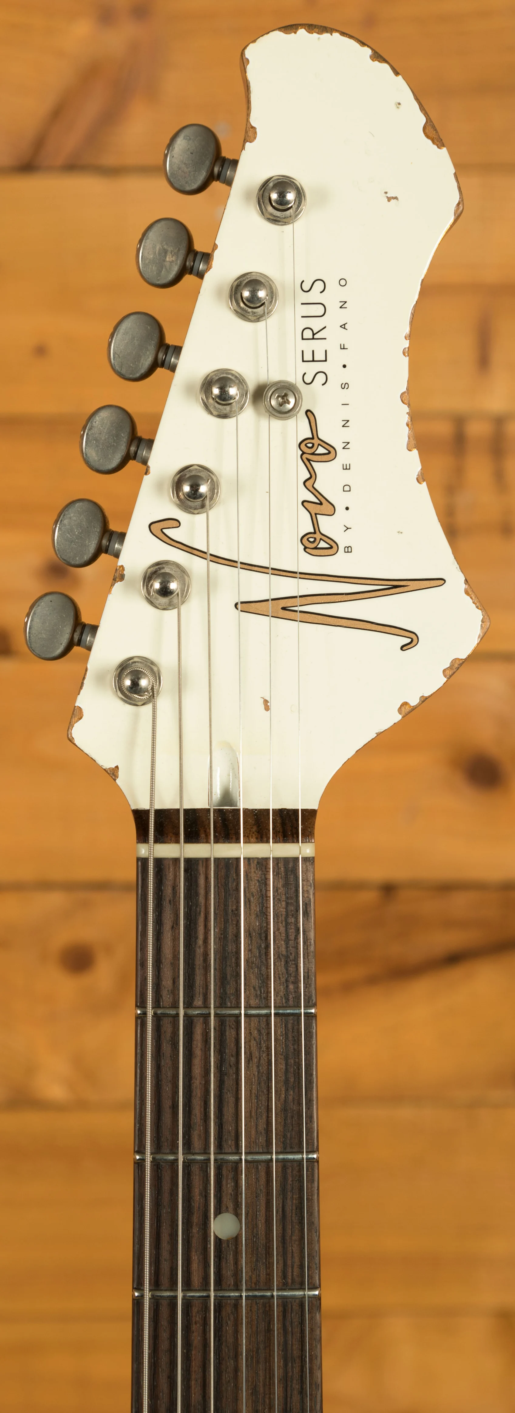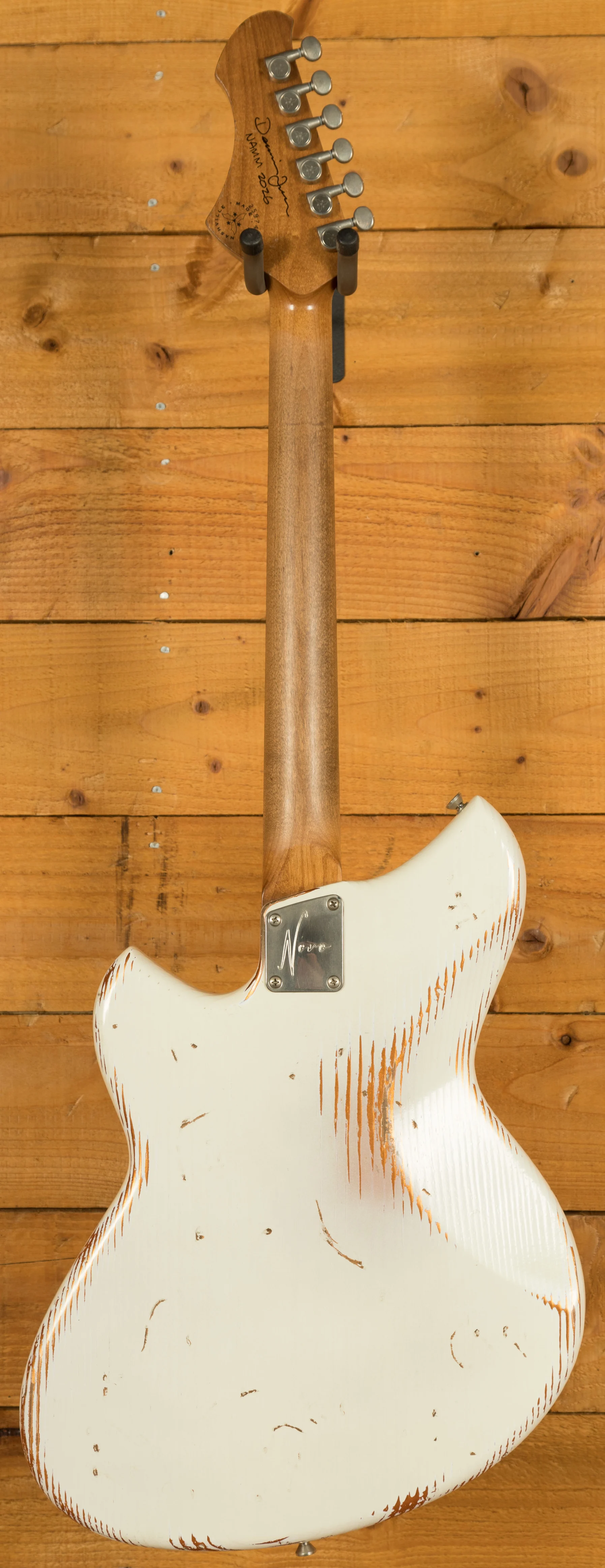 This Novo Serus J is crafted from tempered pine, offering a unique tonal character that sets it apart from the crowd. This lightweight and resonant wood contributes to the guitar's overall tonal excellence. The neck, made from tempered maple, complements the body, providing stability and a smooth playing experience. The rosewood fingerboard offers a smooth playing platform with a 9.5"-14" compound radius, Moto dot inlays, and medium nickel/silver frets.
