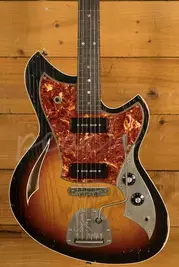 Previously available only as a custom-made model, the Miris J is the only semi-hollow model in the Nucleus range. The guitar incorporates a redesigned sound hole, departing from the traditional S-hole design, and features a new pickguard and control plate style.