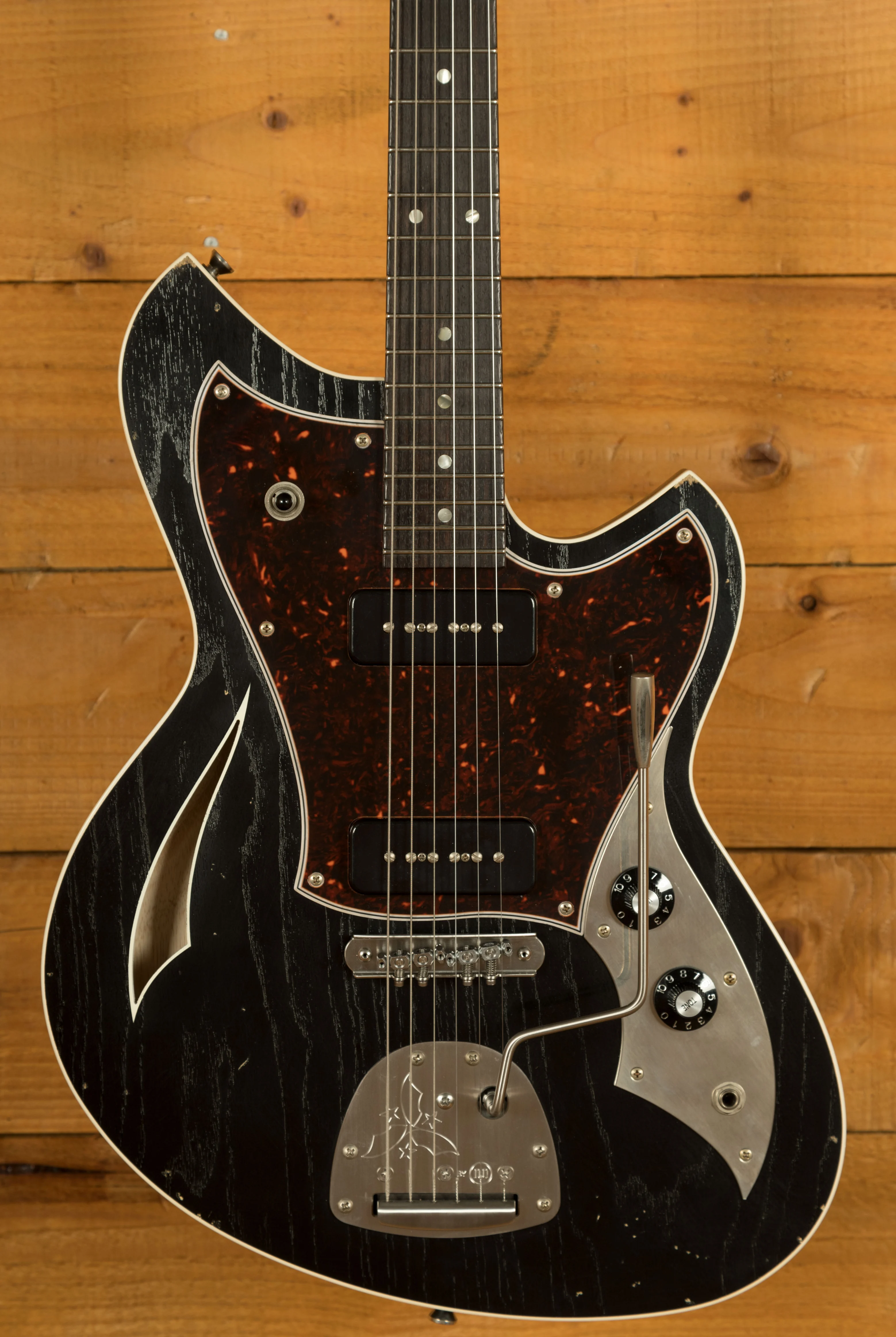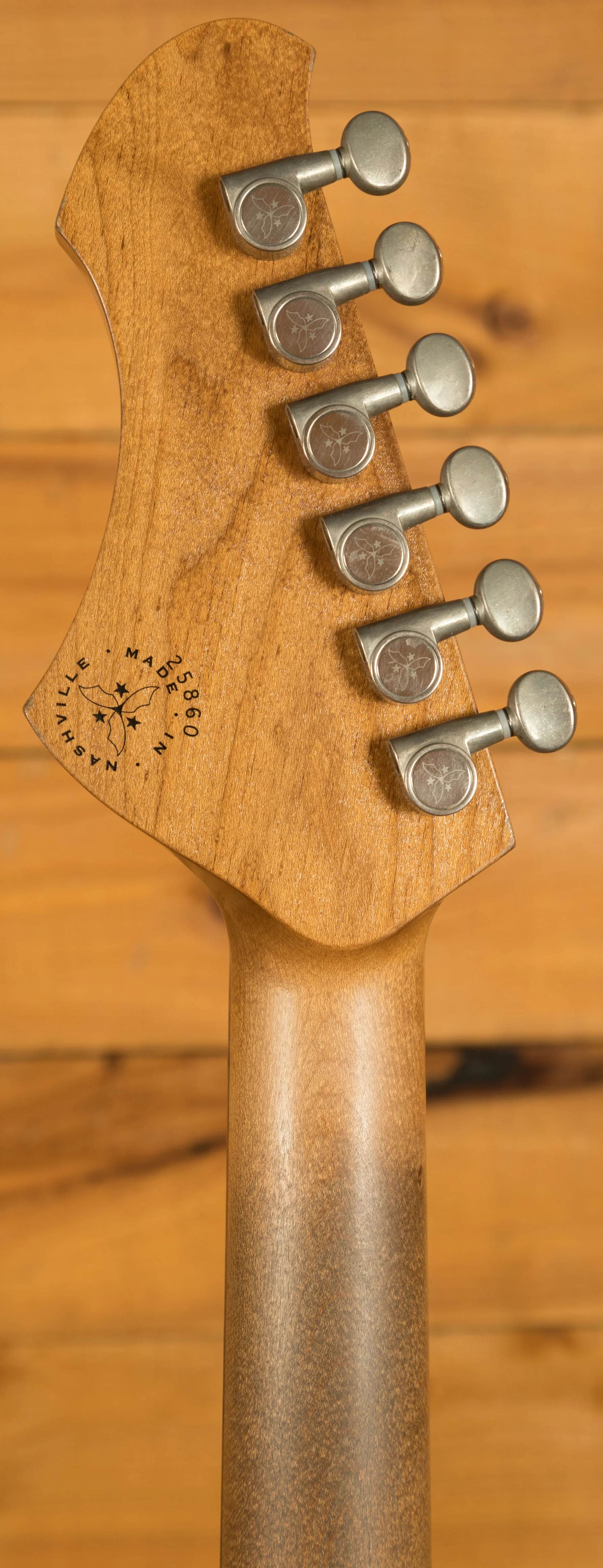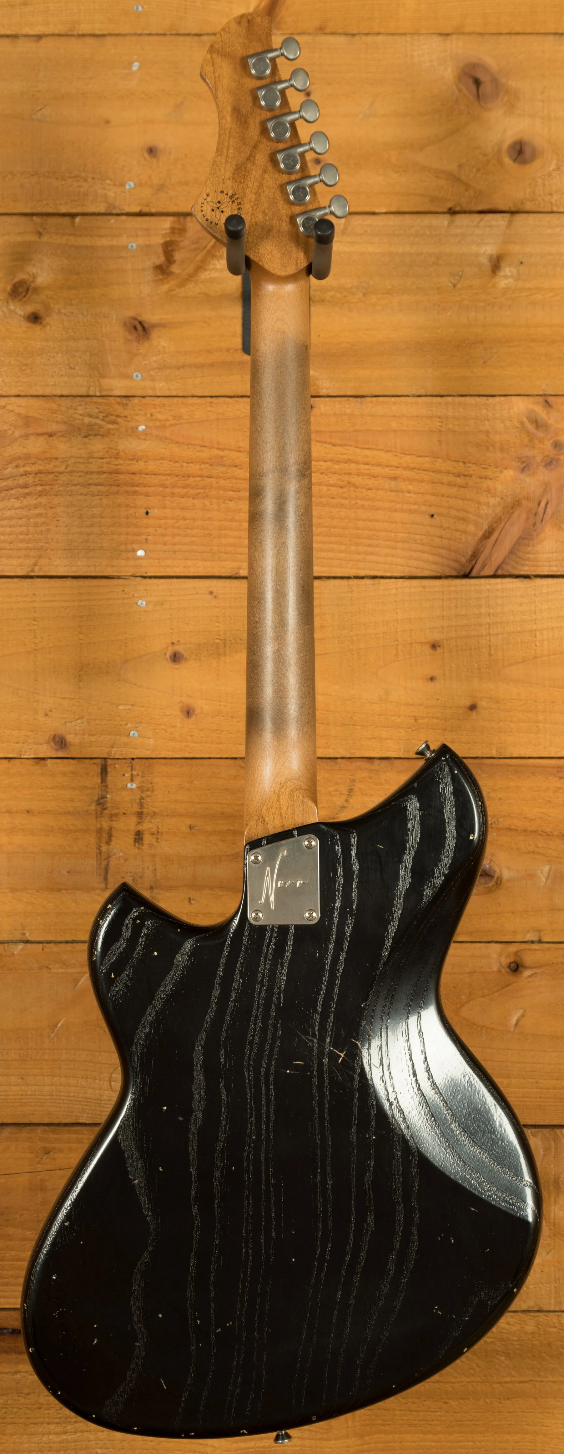 The Novo Miris J, distressed to a light finish, immediately captivates with its aesthetic charm. It is constructed from high-quality Swamp Ash, ensuring a resonant and lively tonal character. The addition of a tummy contour on the back and a back round over edge enhances both comfort and playability, making it a joy to wield on stage or in the studio.