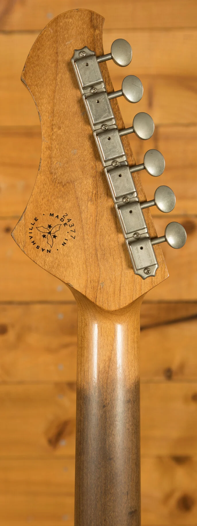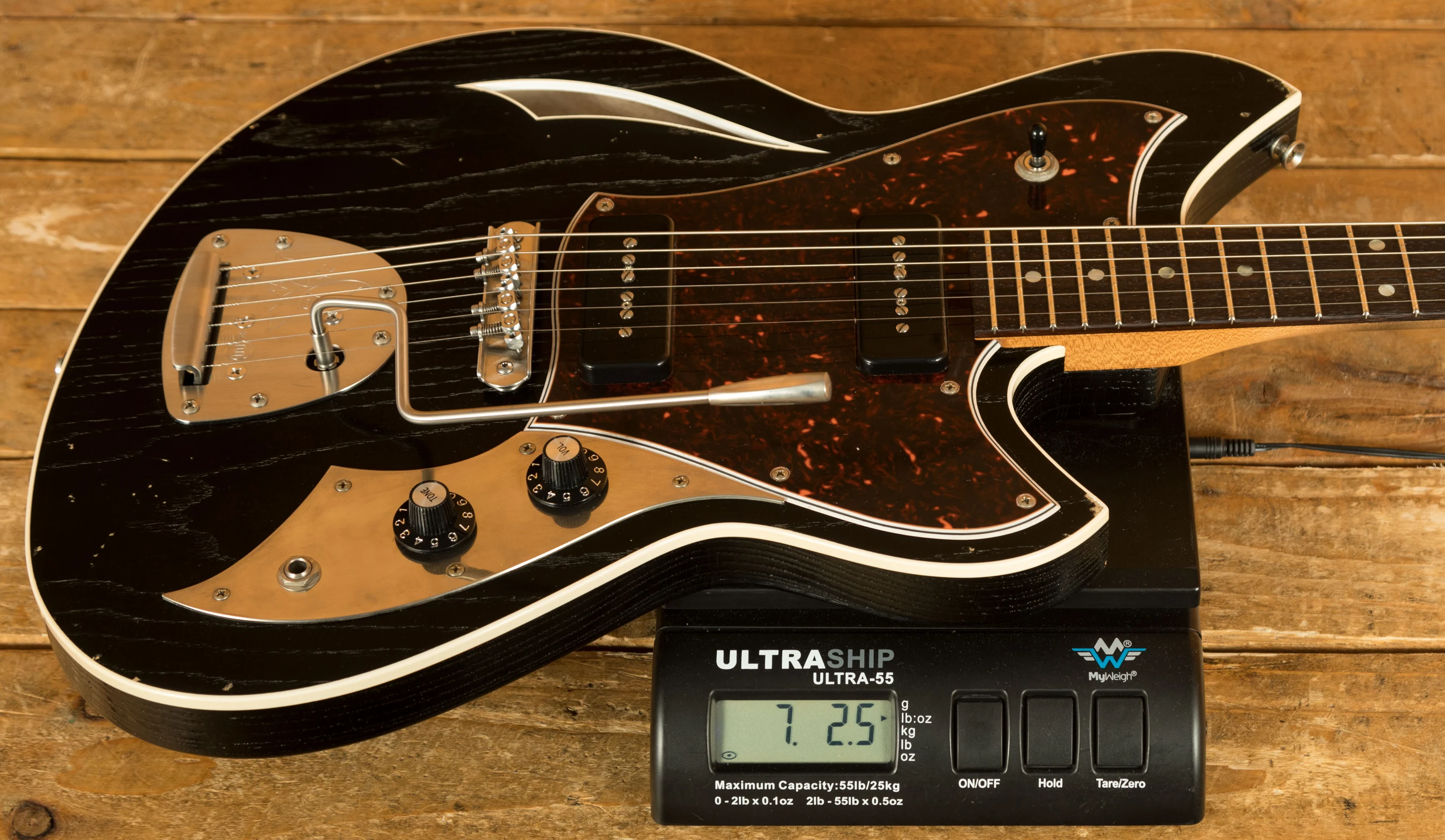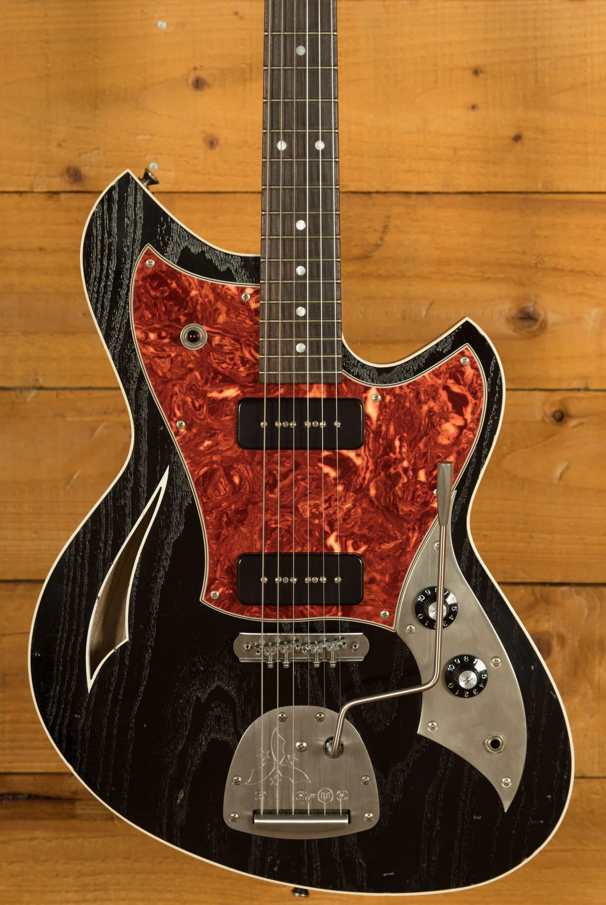 The Novo Miris J, distressed to a light finish, immediately captivates with its aesthetic charm. It is constructed from high-quality Swamp Ash, ensuring a resonant and lively tonal character. The addition of a tummy contour on the back and a back round over edge enhances both comfort and playability, making it a joy to wield on stage or in the studio.