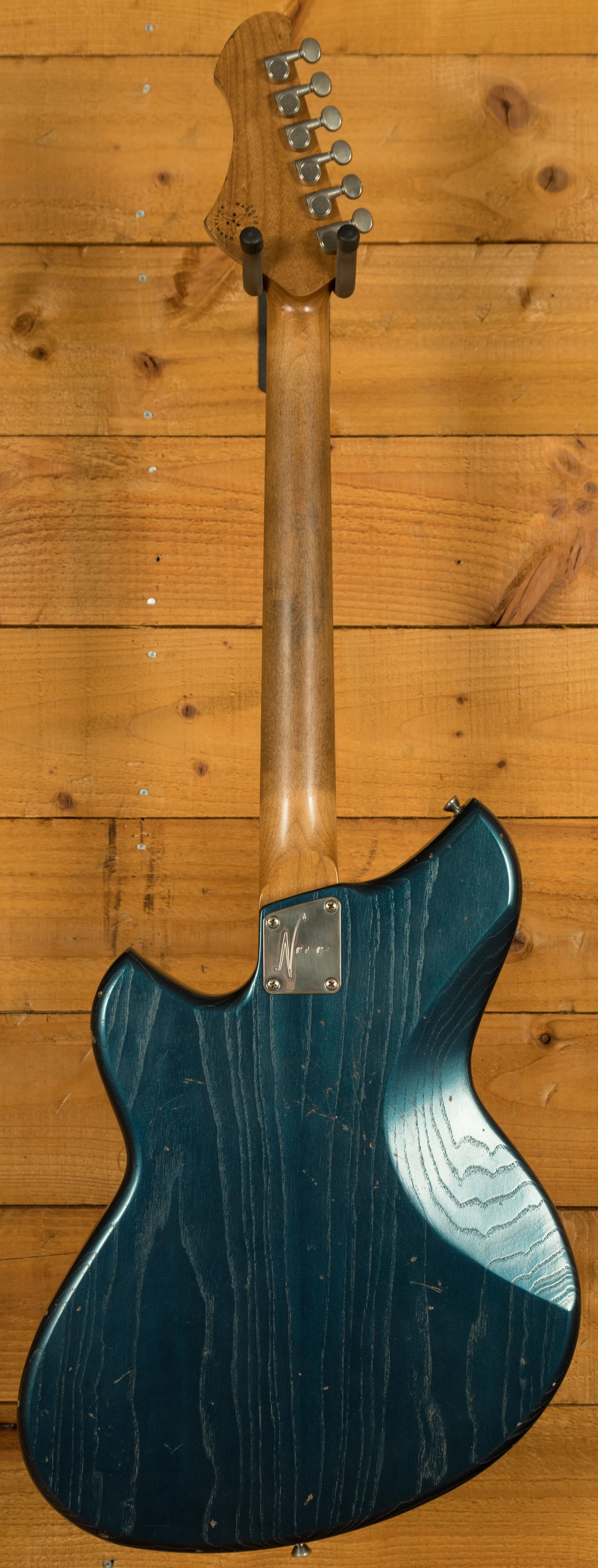 The Novo Miris J, distressed to a light finish, immediately captivates with its aesthetic charm. It is constructed from high-quality Swamp Ash, ensuring a resonant and lively tonal character. The addition of a tummy contour on the back and a back round over edge enhances both comfort and playability, making it a joy to wield on stage or in the studio.