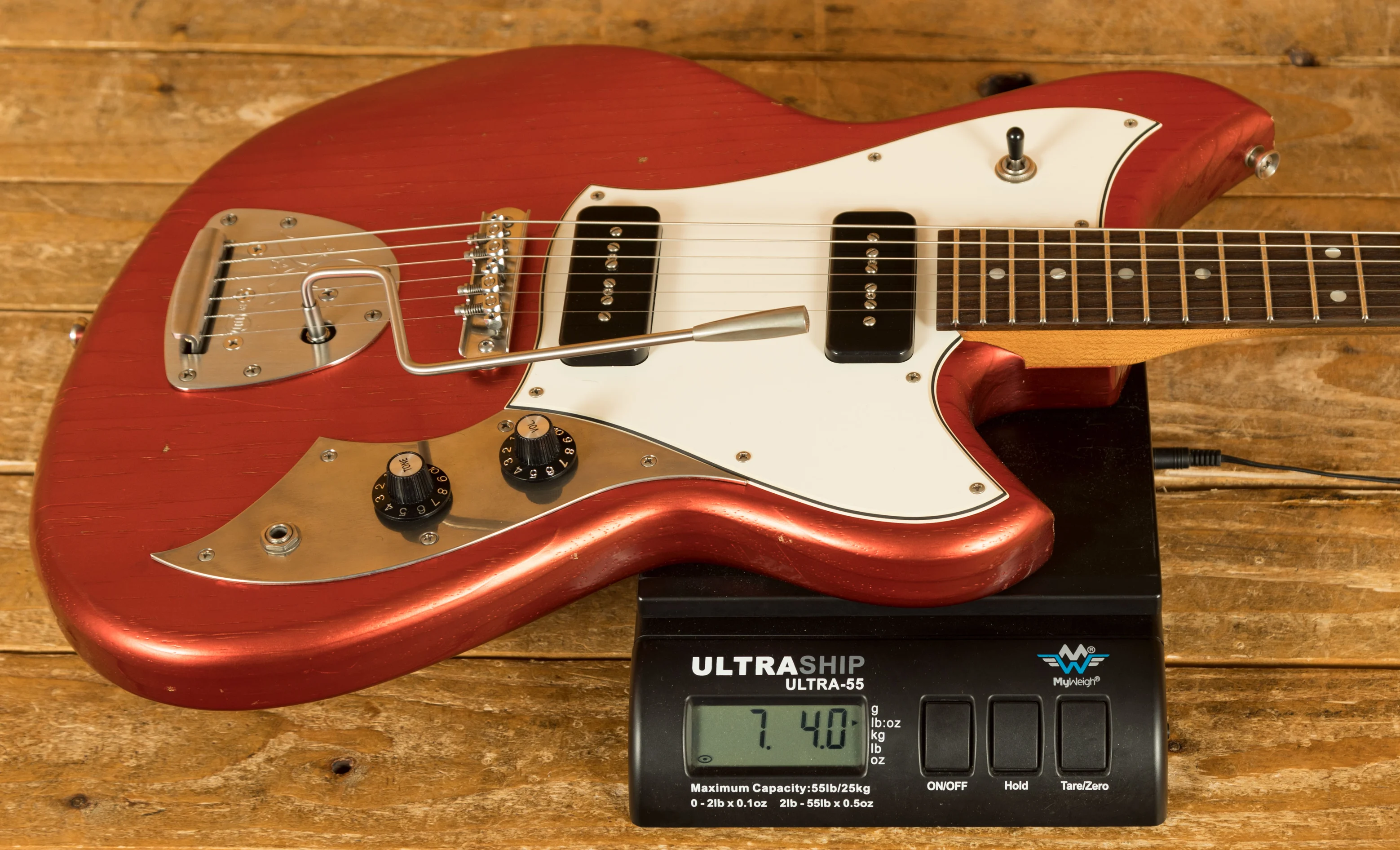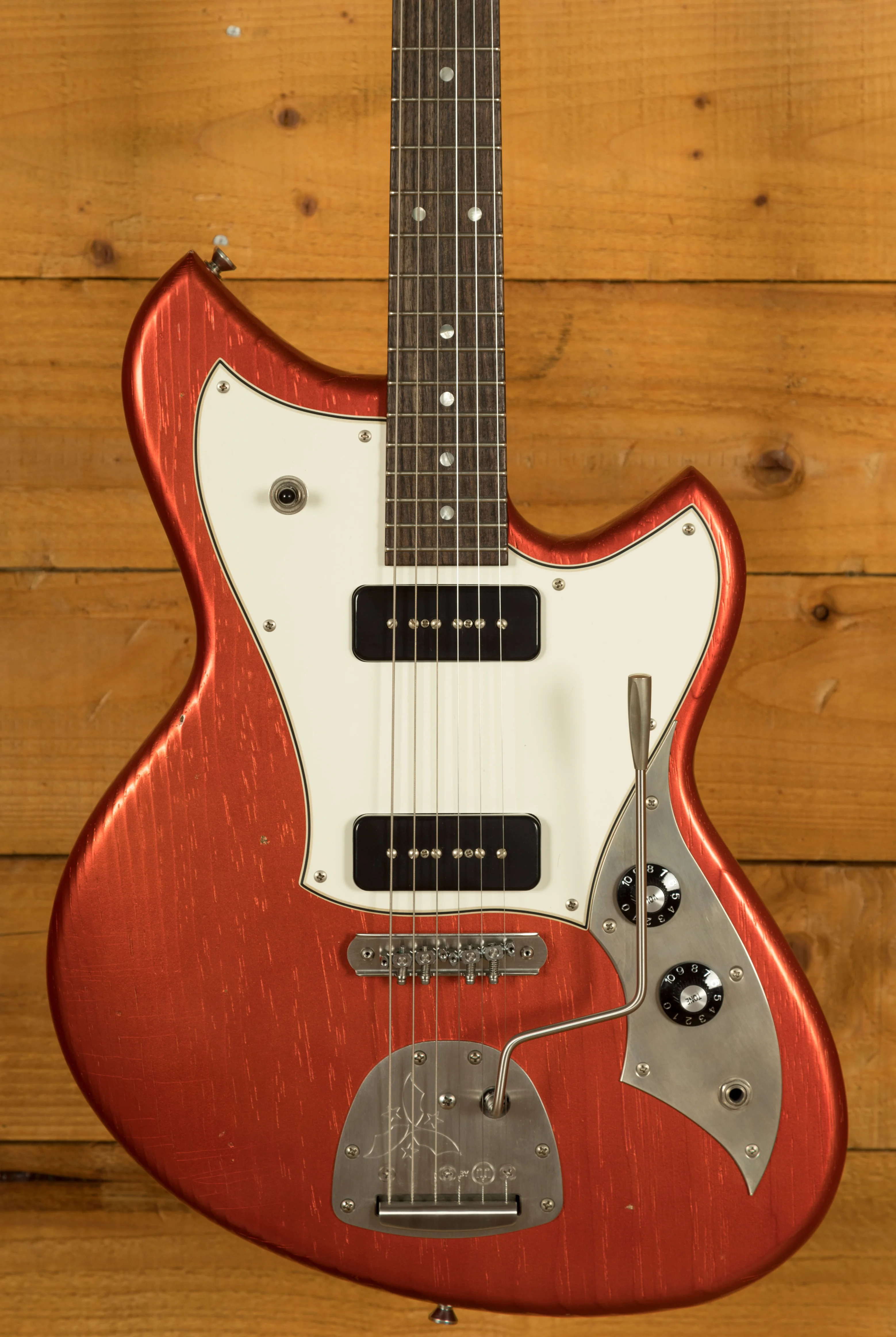 Skip to content Novo Nucleus Serus J | Candy Apple Red - Parchment Pickguard