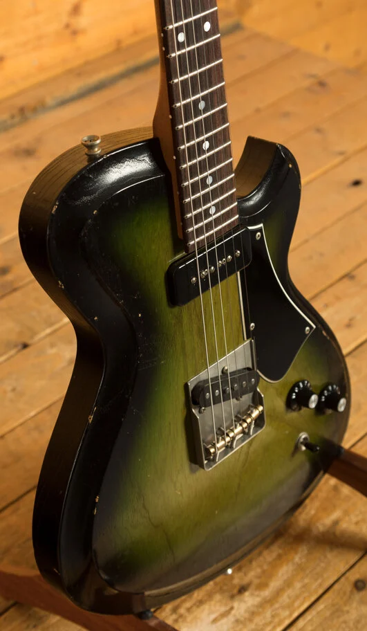 The top of the guitar features a beautiful German carve, adding a touch of elegance to the instrument's aesthetic. The controls are rear-mounted, contributing to a clean and uncluttered front, while the pickguard adopts a new chopped design, providing a modern twist to the classic look.