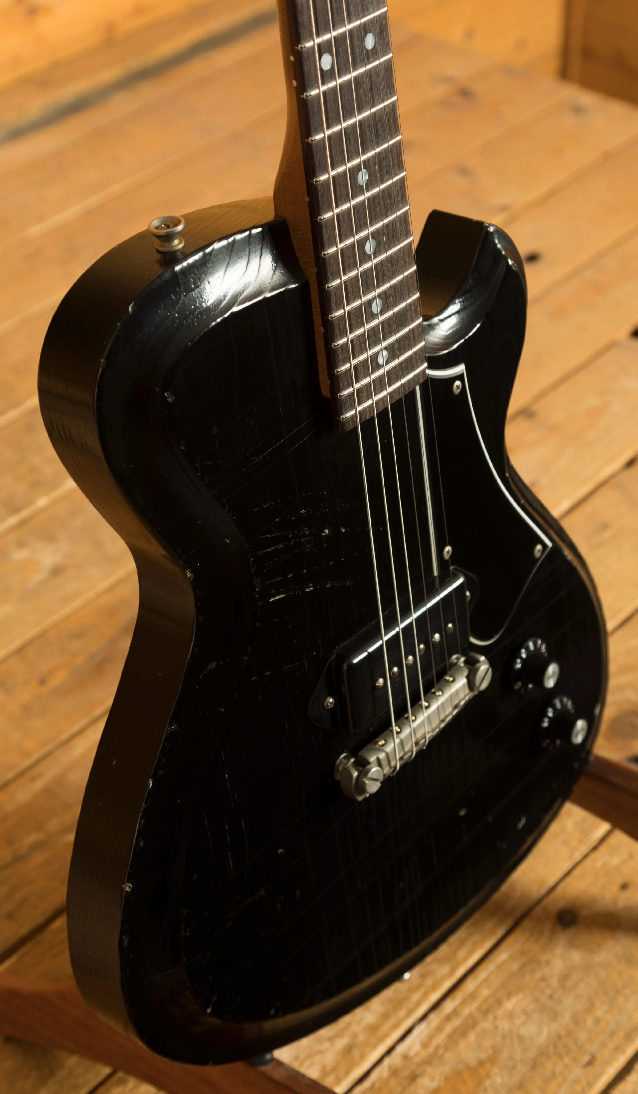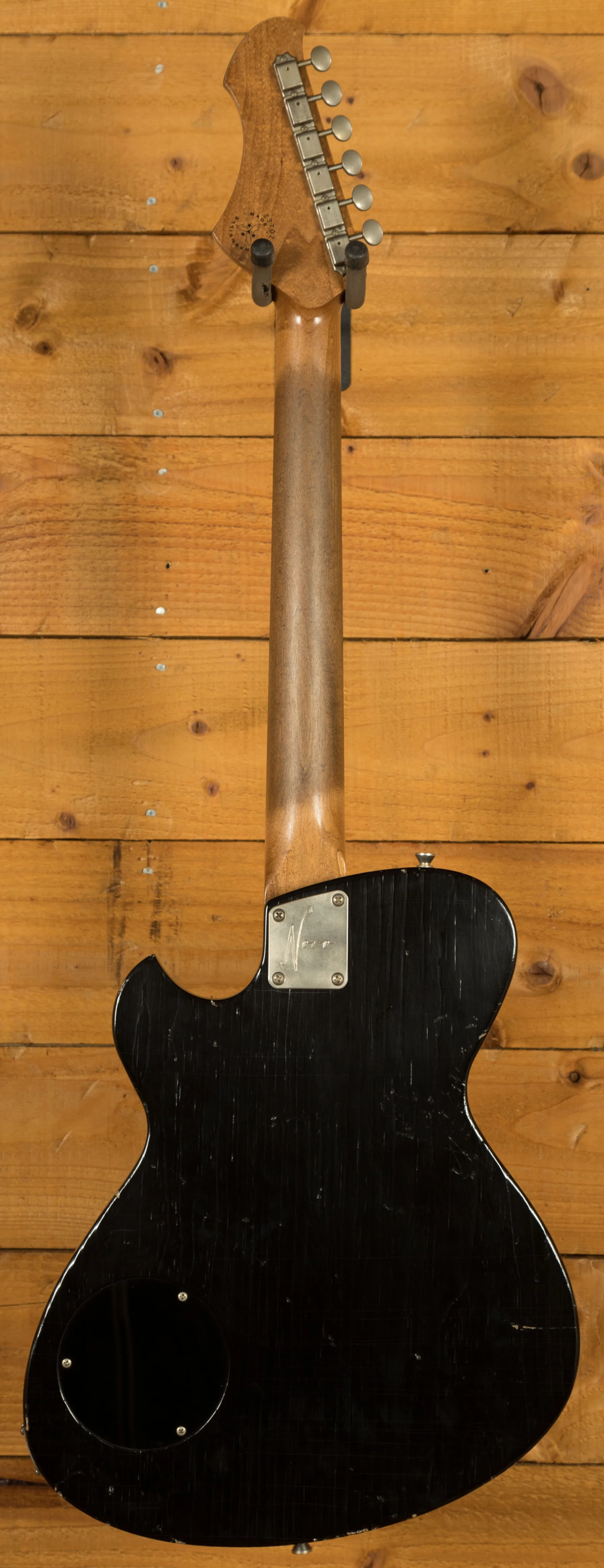 One of the standout features of the Novo Solus M1 is the addition of a beautiful German carve on the top, elevating its visual appeal. The rear-mounted control layout provides a clean and uncluttered front profile. The new chopped pickguard design further enhances the guitar's aesthetic, giving it a modern touch while preserving its vintage charm.