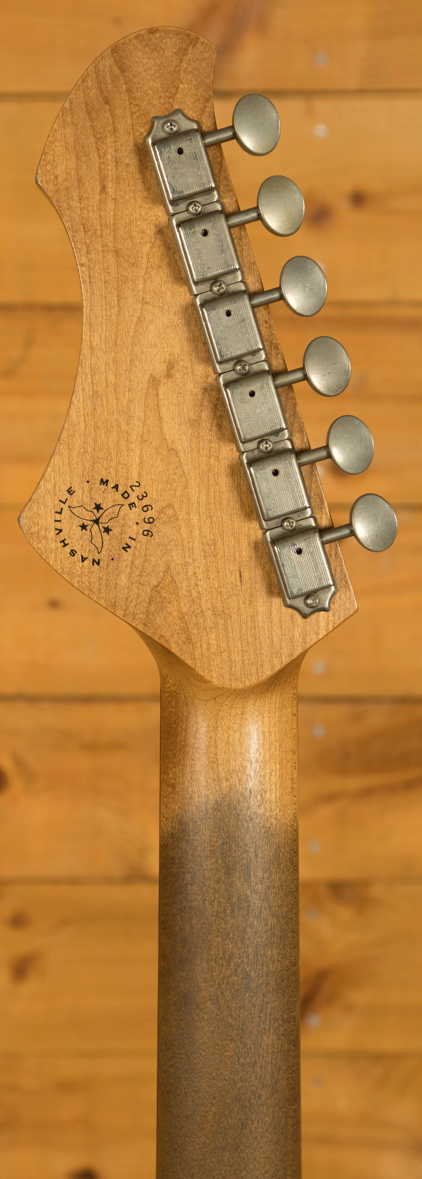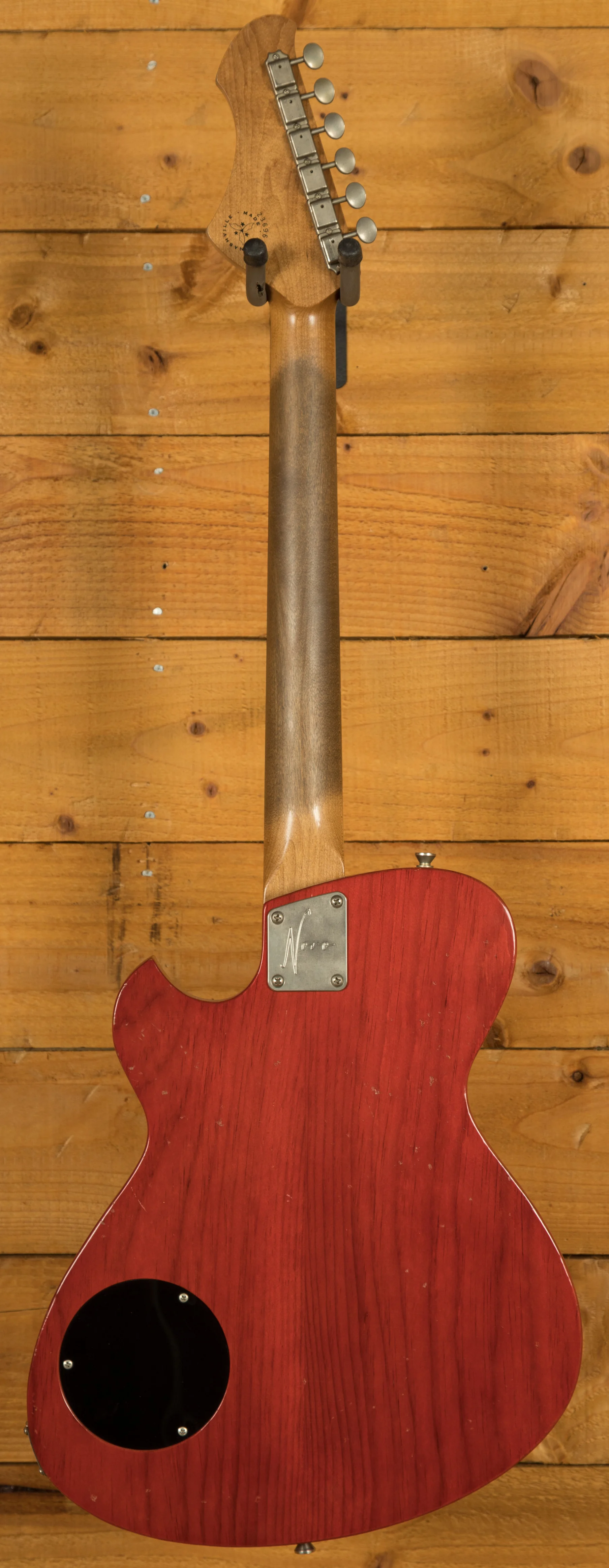 One of the standout features of the Novo Solus M1 is the addition of a beautiful German carve on the top, elevating its visual appeal. The rear-mounted control layout provides a clean and uncluttered front profile. The new chopped pickguard design further enhances the guitar's aesthetic, giving it a modern touch while preserving its vintage charm.