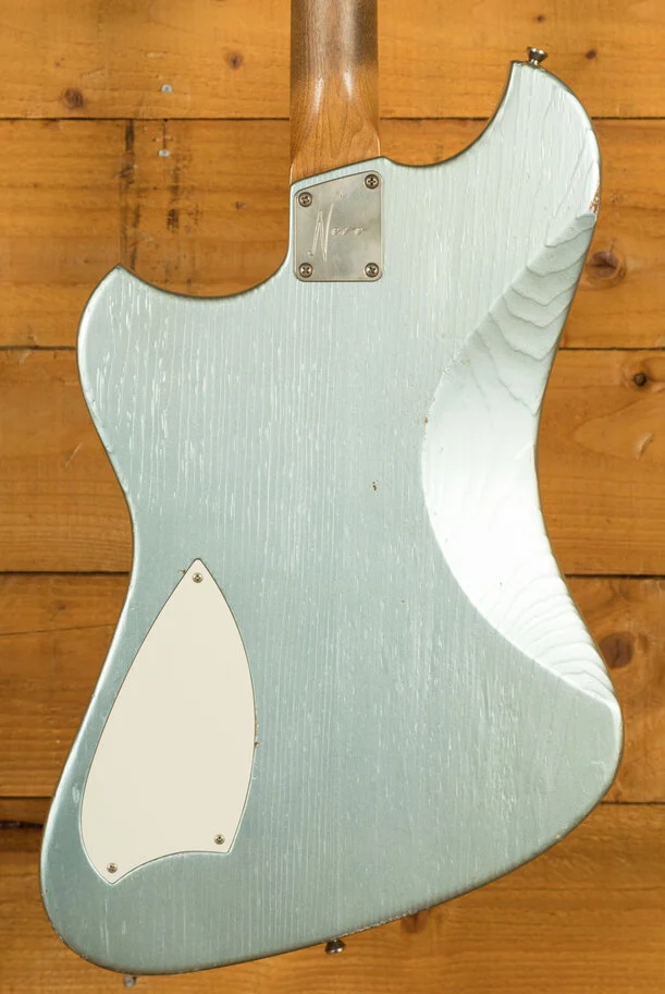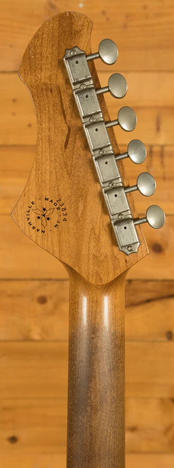 The Voltur J features a distressed light finish that not only adds a touch of vintage charm but also accentuates the unique contours of the body. Novo has introduced new deluxe contours to the guitar, enhancing both comfort and visual appeal. The body is crafted from tempered pine, a choice that contributes to the instrument's resonance and tonal character. Complementing this, the neck is made of tempered maple, ensuring stability and durability for years of reliable performance.
