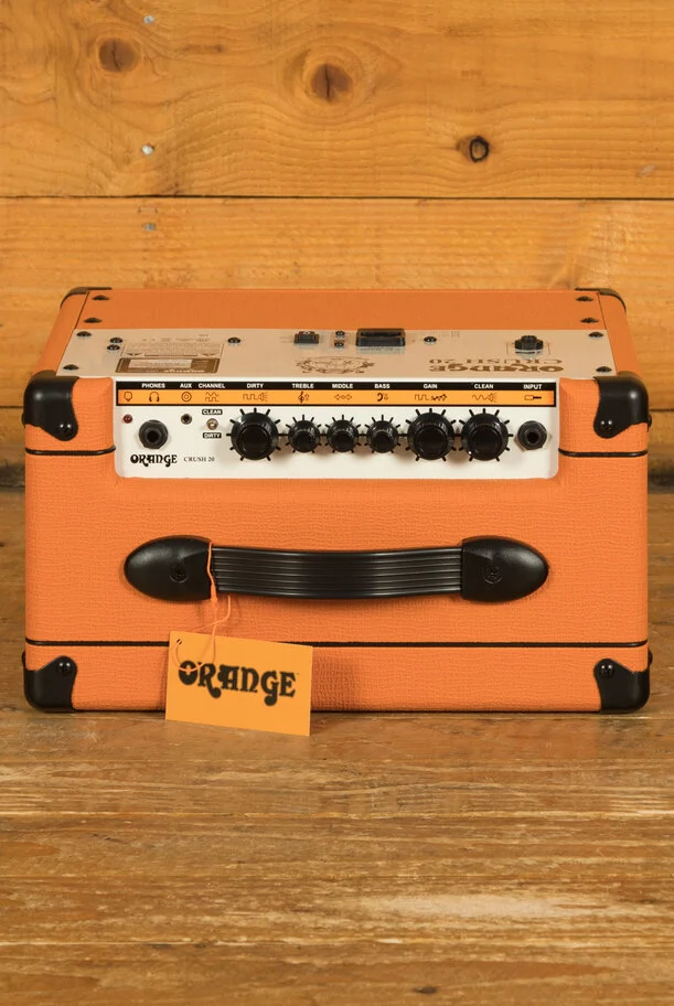 Orange's commitment to analogue amplifier circuitry in a digital age ensures Crush amps possess the lively feel and responsiveness that Orange is famous for, inspiring guitarists to play their instruments, not the technology. The Crush 20's highly effective 3 band EQ section allows for huge control over your sound, from bold vintage colours to scooped modern tones.
