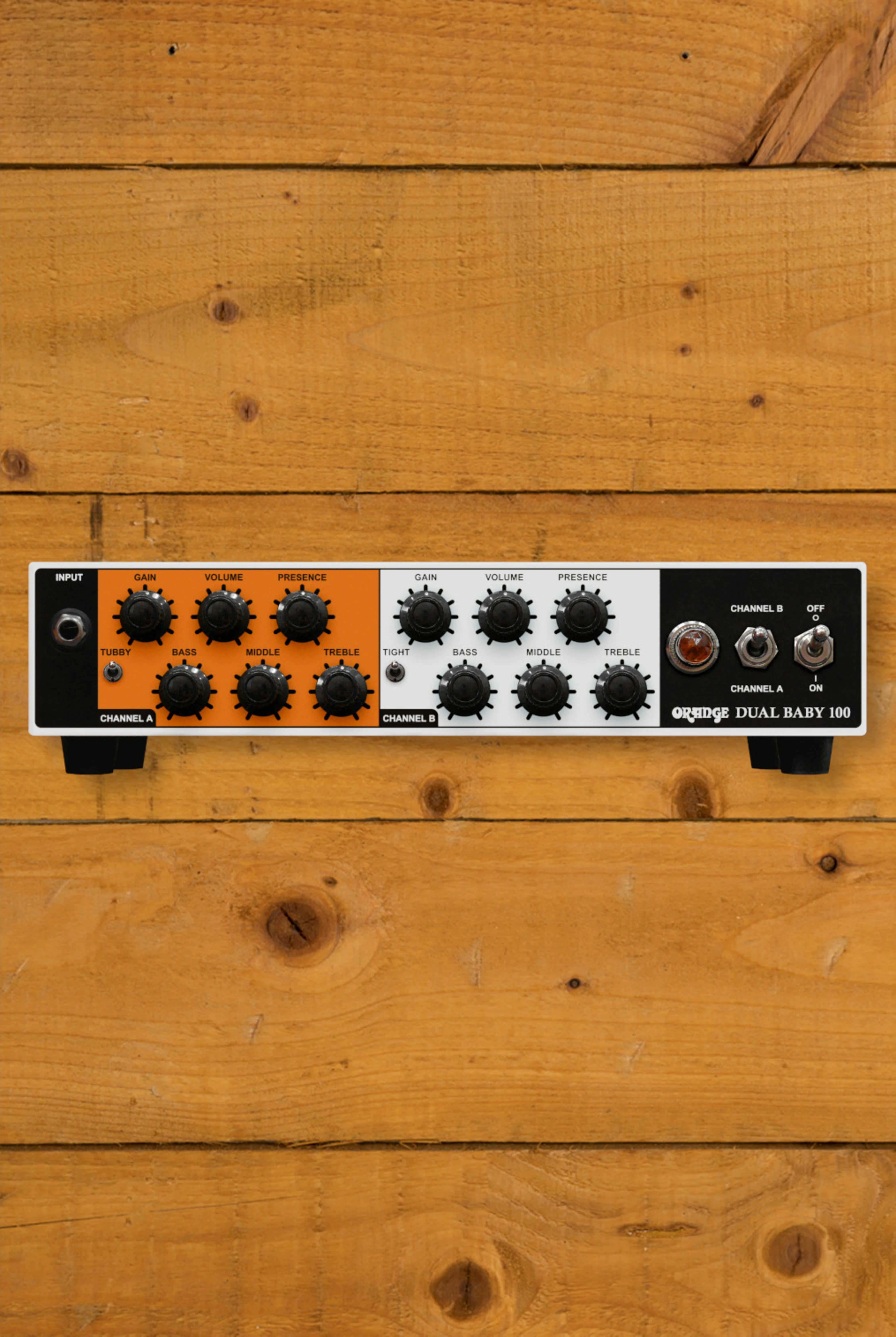 The Dual Baby's two-channel architecture offers players an exceptional range of tonal possibilities. Channel A draws inspiration from the iconic tones of Orange's flagship Rockerverb series, delivering everything from sparkling cleans to rich crunch and full-blown saturation. This channel also features the innovative Tubby switch, which boosts the low end early in the signal chain, perfect for achieving a rounder clean tone or dialling in that elusive dirty-clean texture.