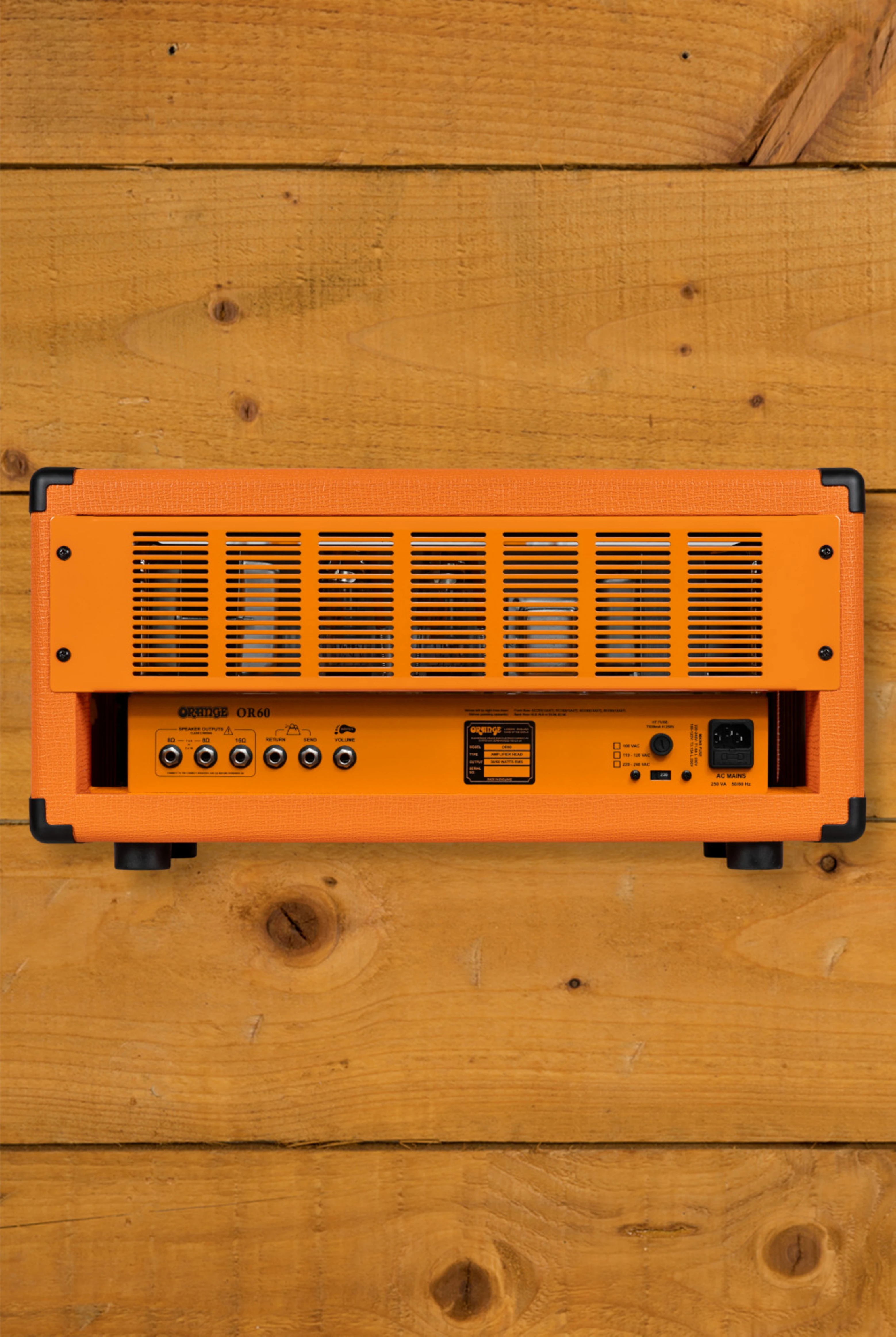 The OR60's voice is unmistakably Orange: bold, focused and full of character. It excels at sparkling cleans, edgeofbreakup crunch and saturated highgain tones, all with the clarity and punch that 6L6 valves are known for. Whether you're running it clean with pedals or pushing the gain for classic British roar, the OR60 stays articulate and responsive.
