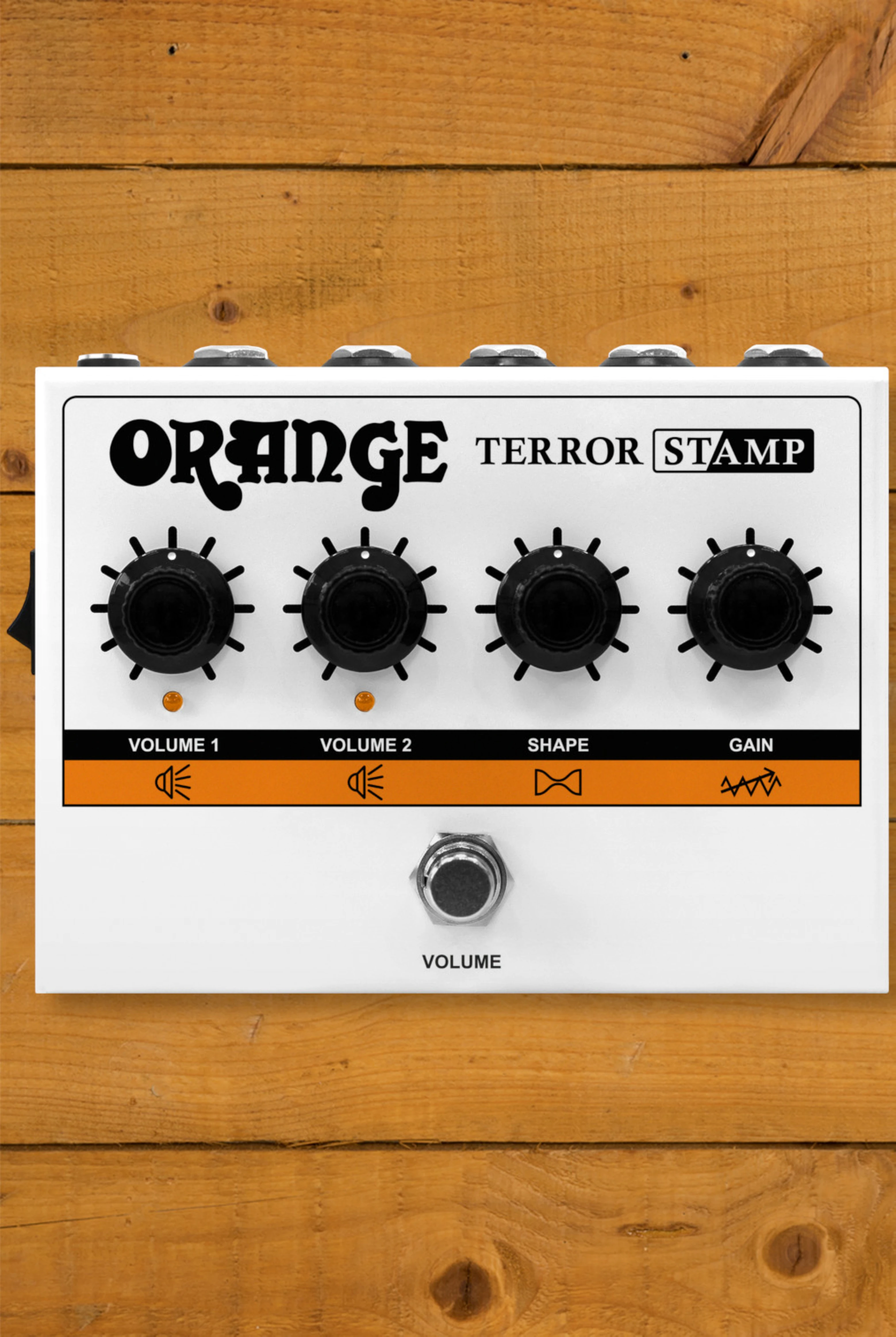 Typically-Orange simplicity, unmistakably-Orange tone. The Terror Stamp's hybrid Valve/Solid State design gives you the best of both worlds. From crystal-clean to thundering high-gain, the ECC83 (12AX7)-based preamp has all the harmonics, dynamics and feel you'd expect, while the 20W Class AB Solid State power amp keeps things small, dependable and sounding great at any volume.