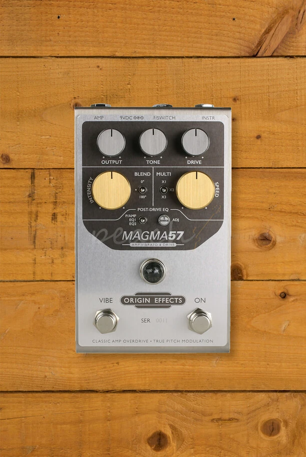 MAGMA57 authentically recreates the pitch-bending vibrato effect built into the Magnatone Custom 260 and 280 models from the late 1950s. These top-of-the-range combos featured a unique two-stage vibrato circuit that offered true pitch modulation—unlike the volume-changing tremolo effect built into other amps. For many players it remains the benchmark for lush, organic vibrato.