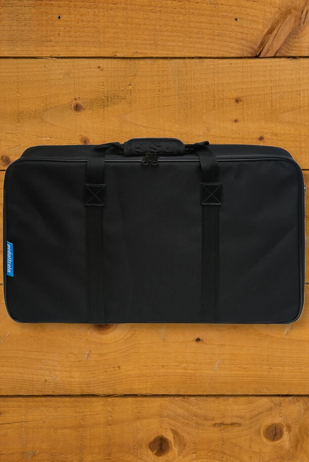 And let's not forget about the included fitted soft case. Pedaltrain has spared no expense in ensuring the protection and convenience of your gear. The heavy-duty metal zipper and reinforced stress points guarantee that your pedals will remain secure during transportation. The familiar Pedaltrain soft case styling is coupled with platinum SBS zippers on the main compartment and accessory storage pocket, providing easy access to your pedals and additional storage space for your accessories.