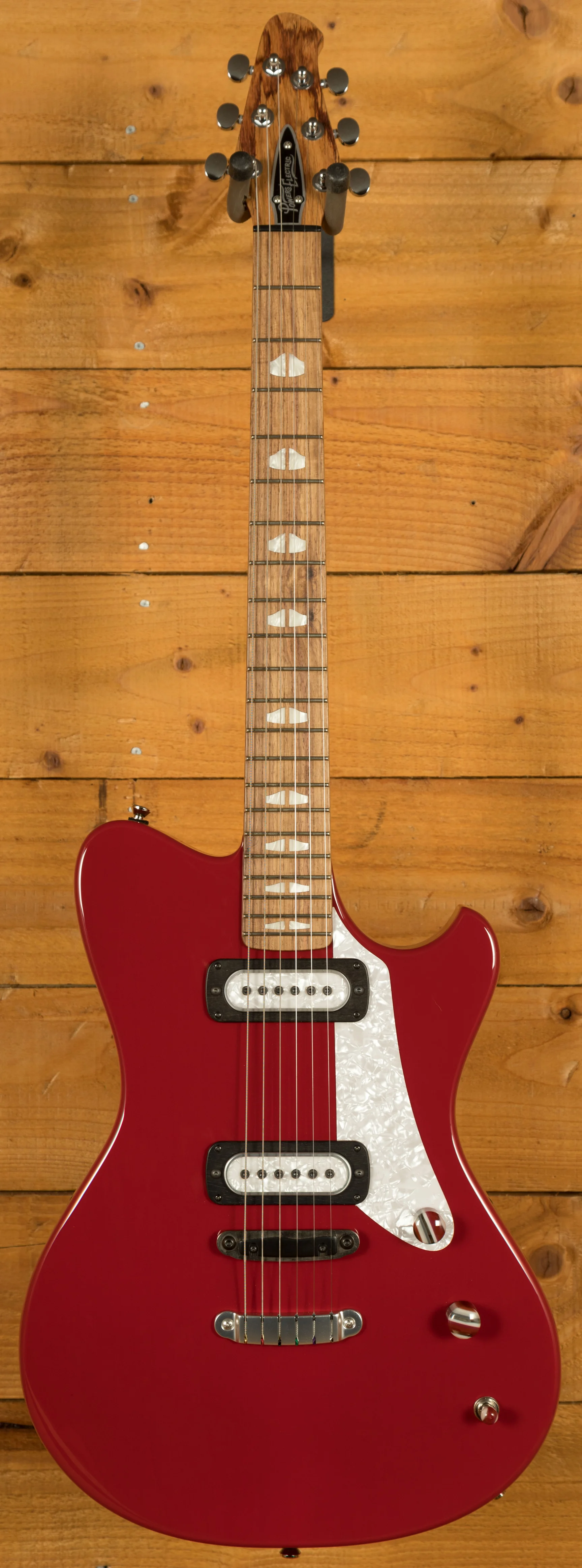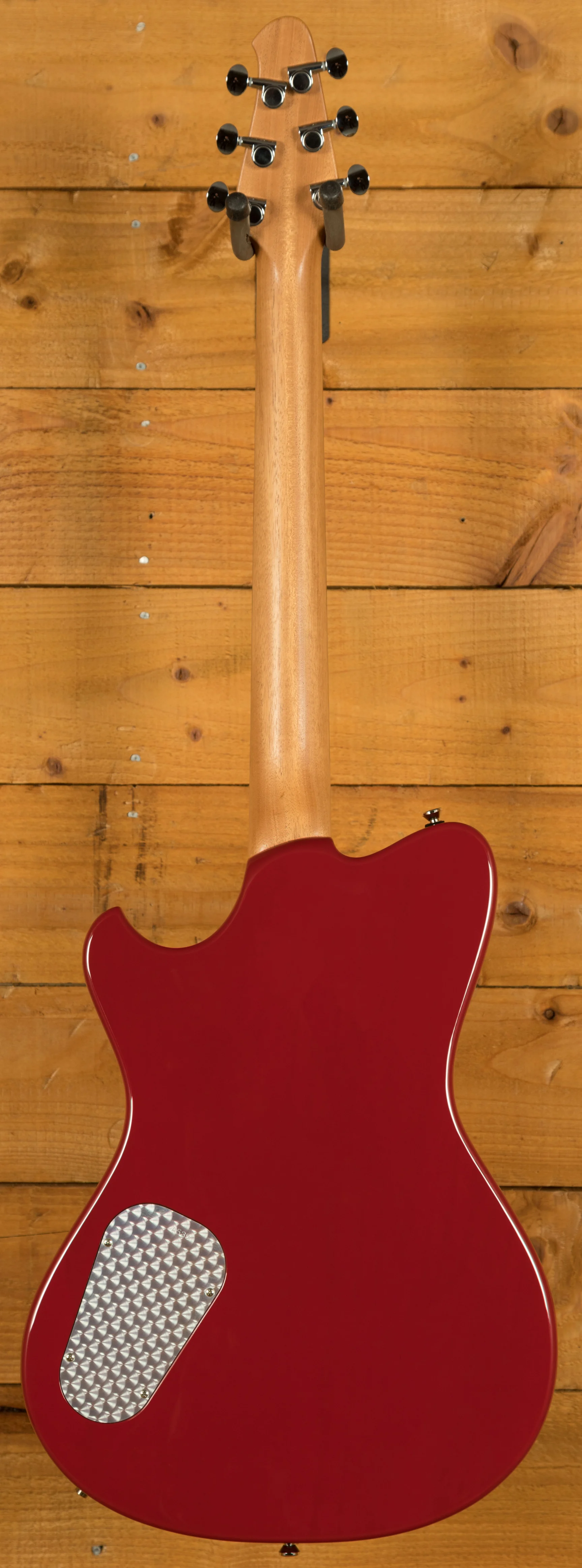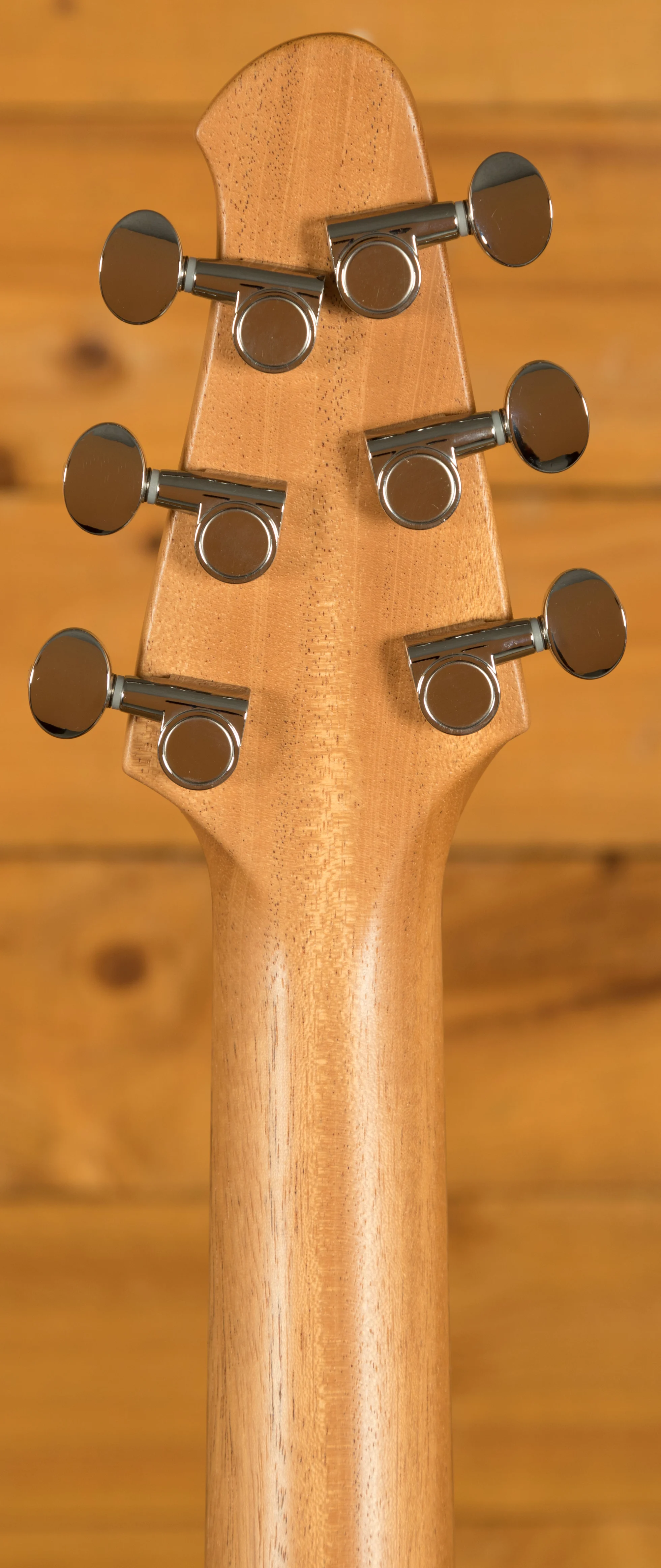 The A-Type's design is influenced by the sleek lines of classic cars, hot rods, and surfboards, reflecting the dynamic culture of San Diego's North County. This area, rich in surfing, skateboarding, auto craft, music, art, and architecture, has deeply influenced Powers' approach. The guitar's asymmetrical shape balances visual appeal with ergonomic efficiency, resulting in a fully enclosed, slim hollowbody design that is as beautiful as it is functional.