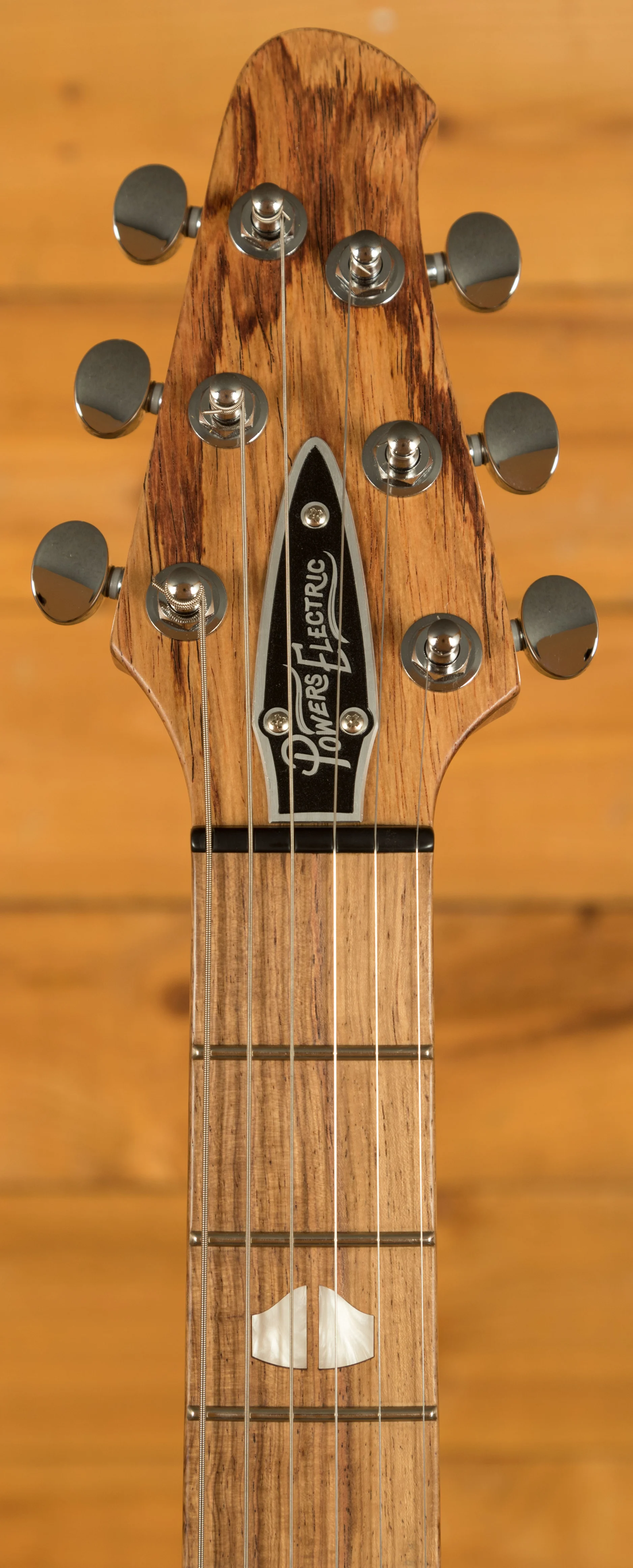 The Powers Electric A-Type prioritises player comfort and playability. Its lightweight, hollow body ensures effortless handling whether standing or sitting, while the contoured armrest and radiused body edges enhance the overall playing experience. The neck is a perfect blend of size, offering a smooth transition into the unique split radius fretboard. This asymmetrical fretboard, which is flatter on the treble side, allows for seamless string bending and maximum playability, encouraging players to explore new ideas and express their unique sound.
