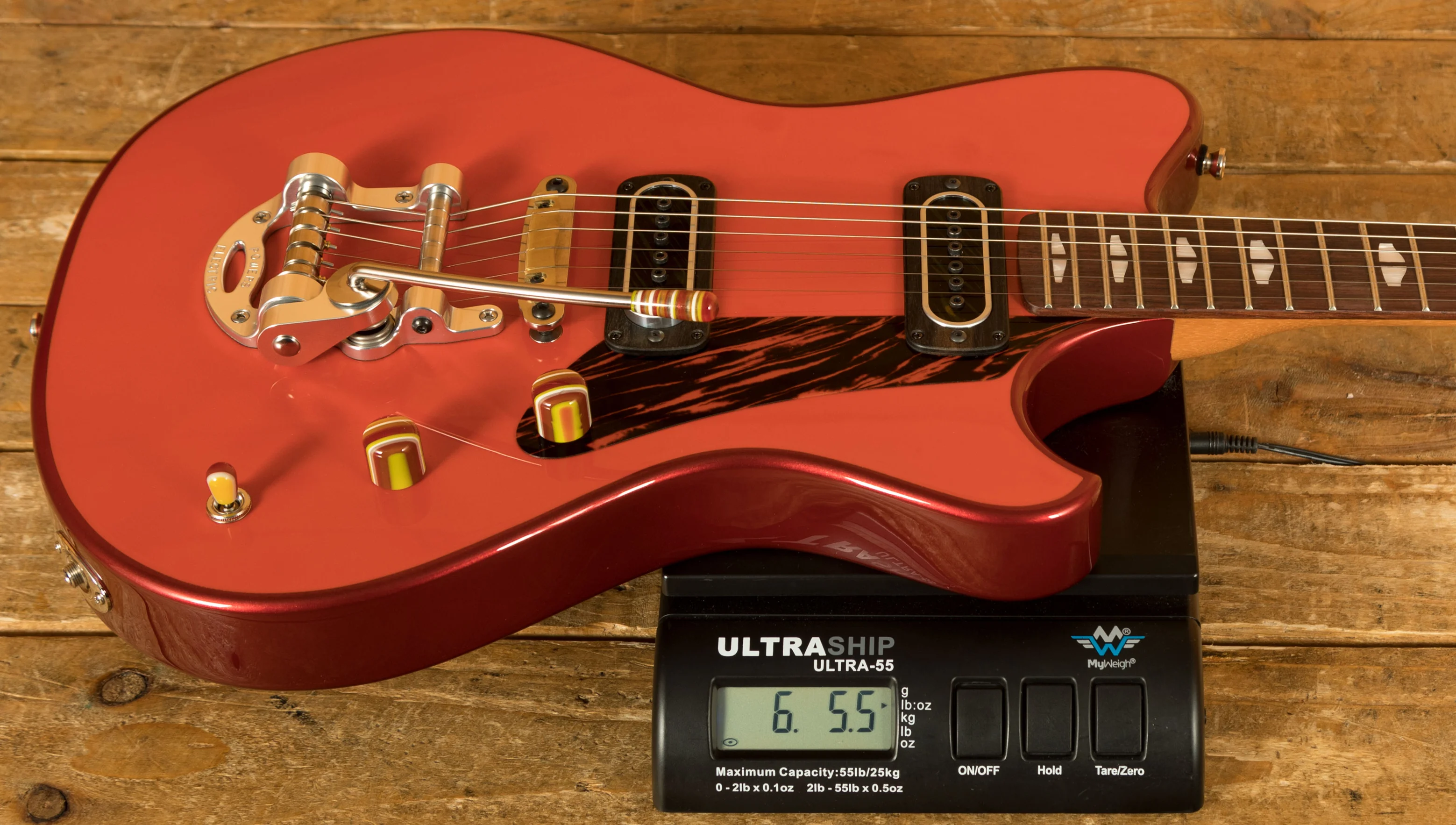The A-Type is finished in a solid, classic auto-inspired colour, giving it a timeless aesthetic. The Firestripe pickguard adds a striking visual contrast, giving the guitar a unique, vintage-inspired look. High-density brass saddle material further enhances the guitar's durability and tonal richness.