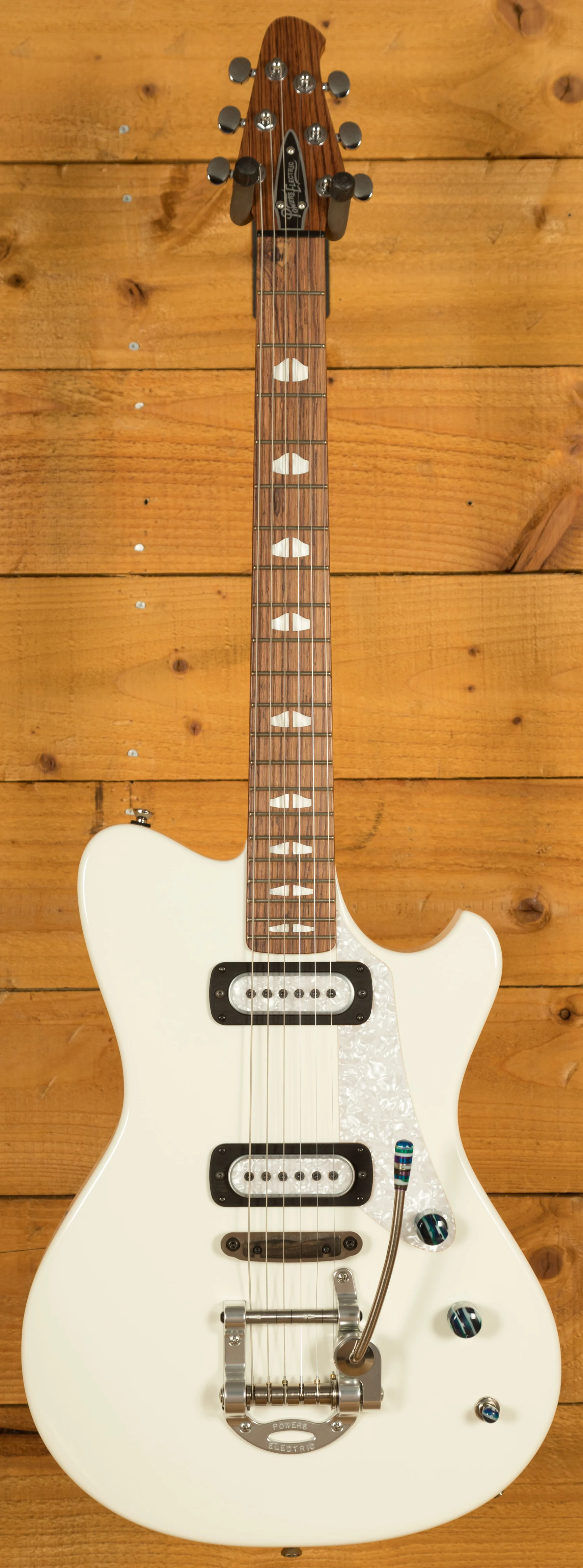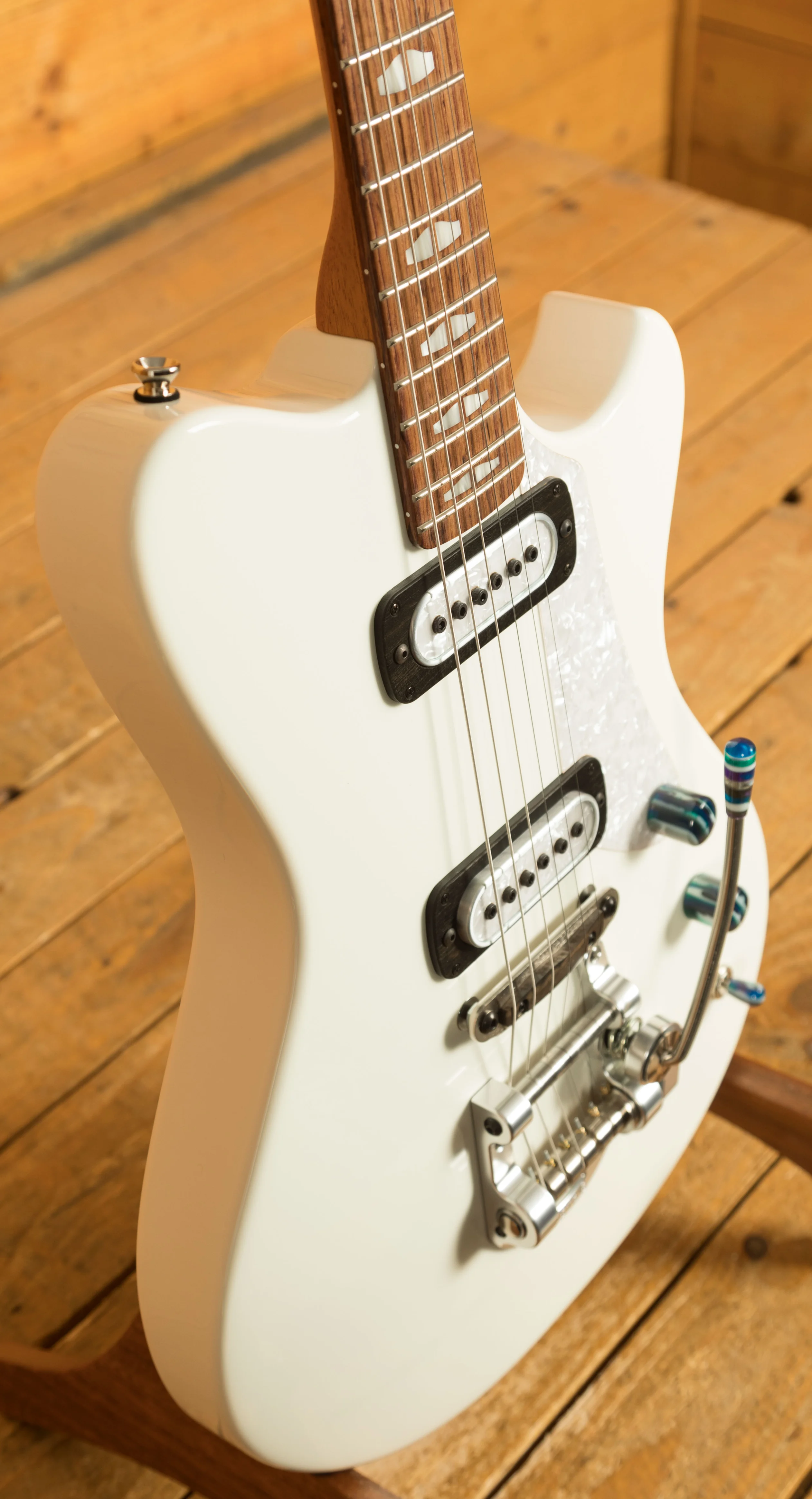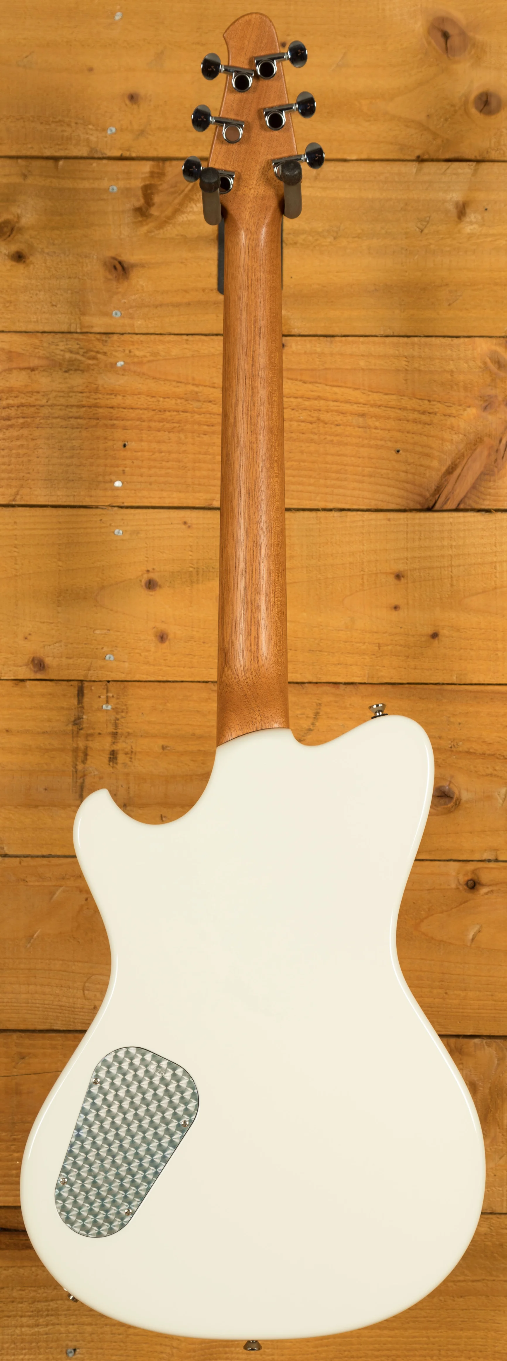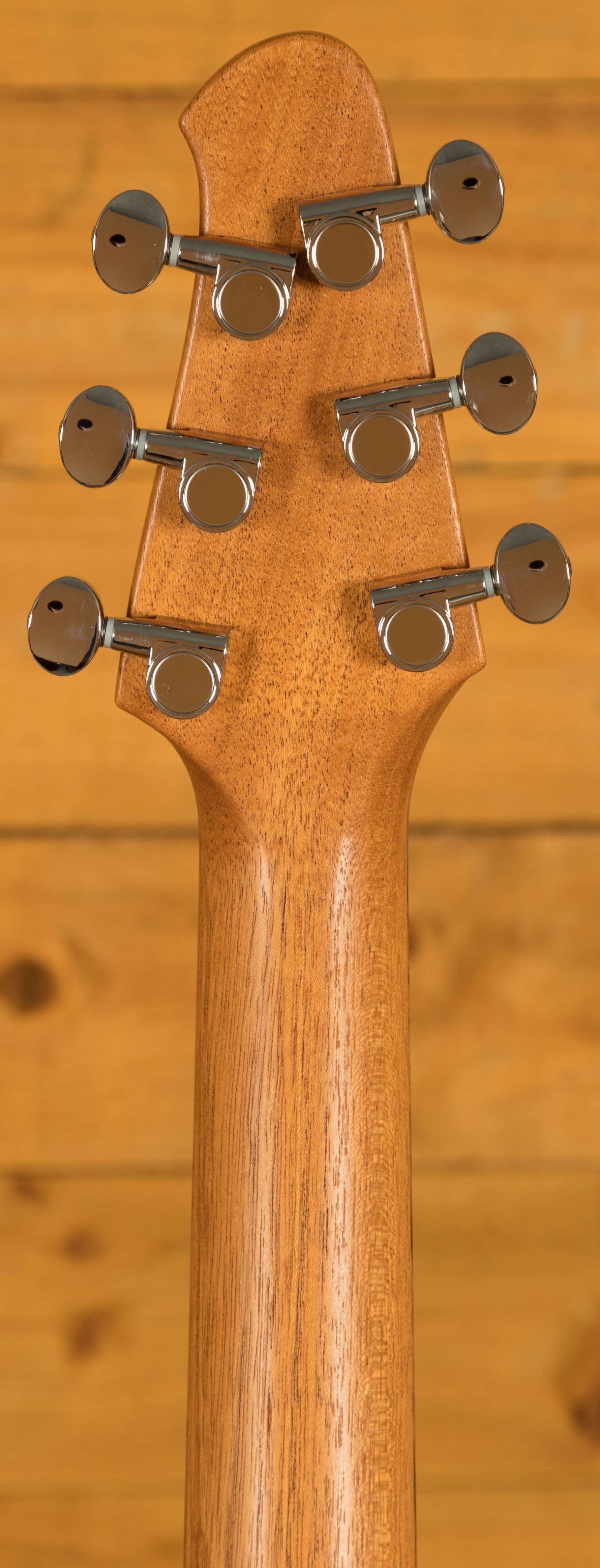 The A-Type's design draws heavily from the sleek lines of classic cars, hot rods, and surfboards, reflecting the vibrant cultural milieu of San Diego's North County. This region's rich mix of surfing, skateboarding, auto craft, music, art, and architecture profoundly influenced Powers' creative process. The result is an asymmetrical yet visually balanced guitar that looks stunning from every angle. This fully enclosed, slim hollowbody design combines timeless styling with modern embellishments, making it as beautiful as it is functional.