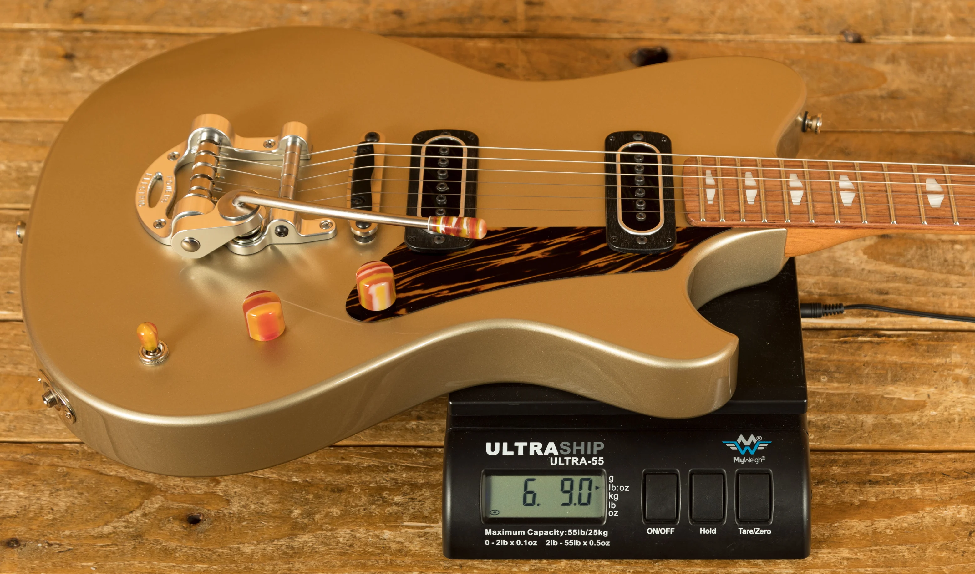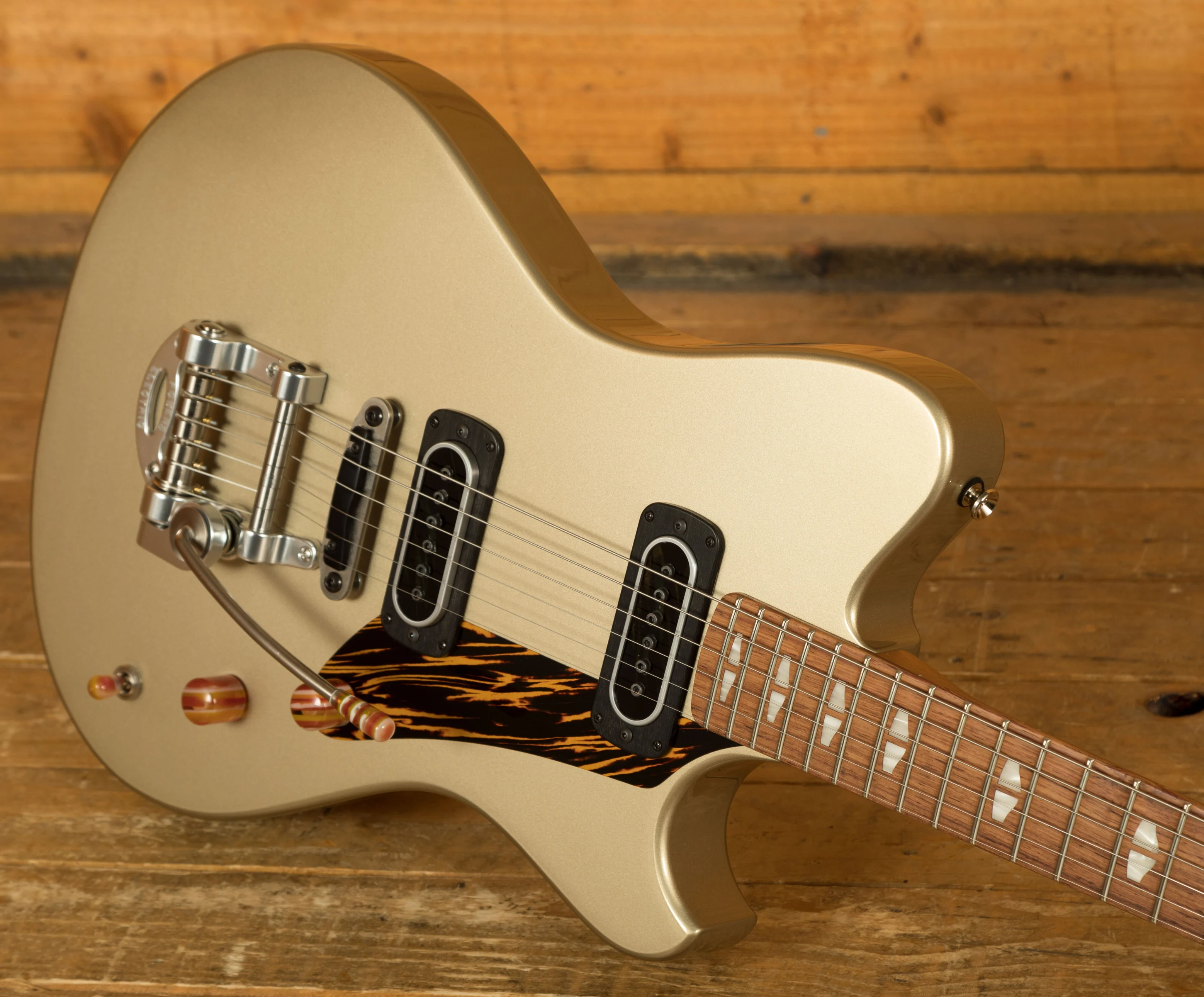 The A-Type is finished in a solid, classic auto-inspired colour, giving it a timeless aesthetic. The Firestripe pickguard adds a striking visual contrast, giving the guitar a unique, vintage-inspired look. High-density Delrin saddle material further enhances the guitar's durability and tonal richness.