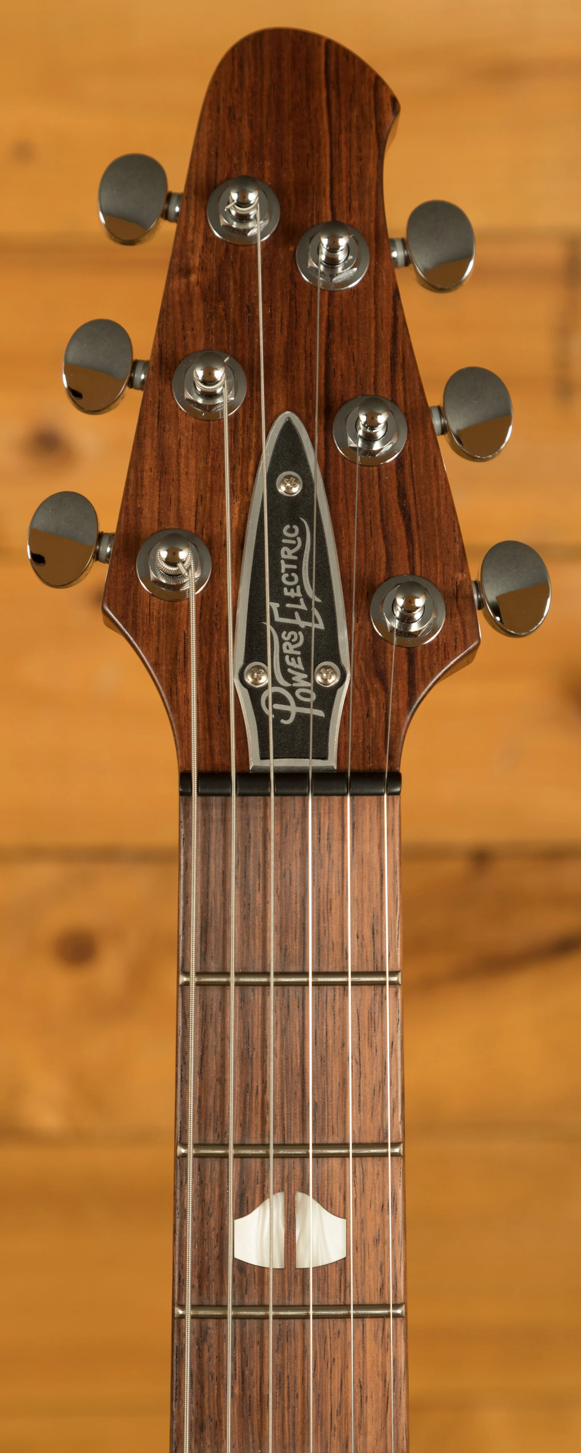 The Powers Electric A-Type is designed with player comfort at its core. Its lightweight, hollow body construction ensures perfect balance whether the player is standing or sitting. The contoured armrest and radiused body edges further enhance the playing experience, making the guitar feel like an extension of the player. The neck is carefully crafted to strike the ideal balance between being not too big and not too slim, smoothly transitioning into the unique split radius fretboard. This asymmetrical fretboard, flatter on the treble side, allows for effortless string bending and maximum playability, inspiring players to explore new musical ideas.