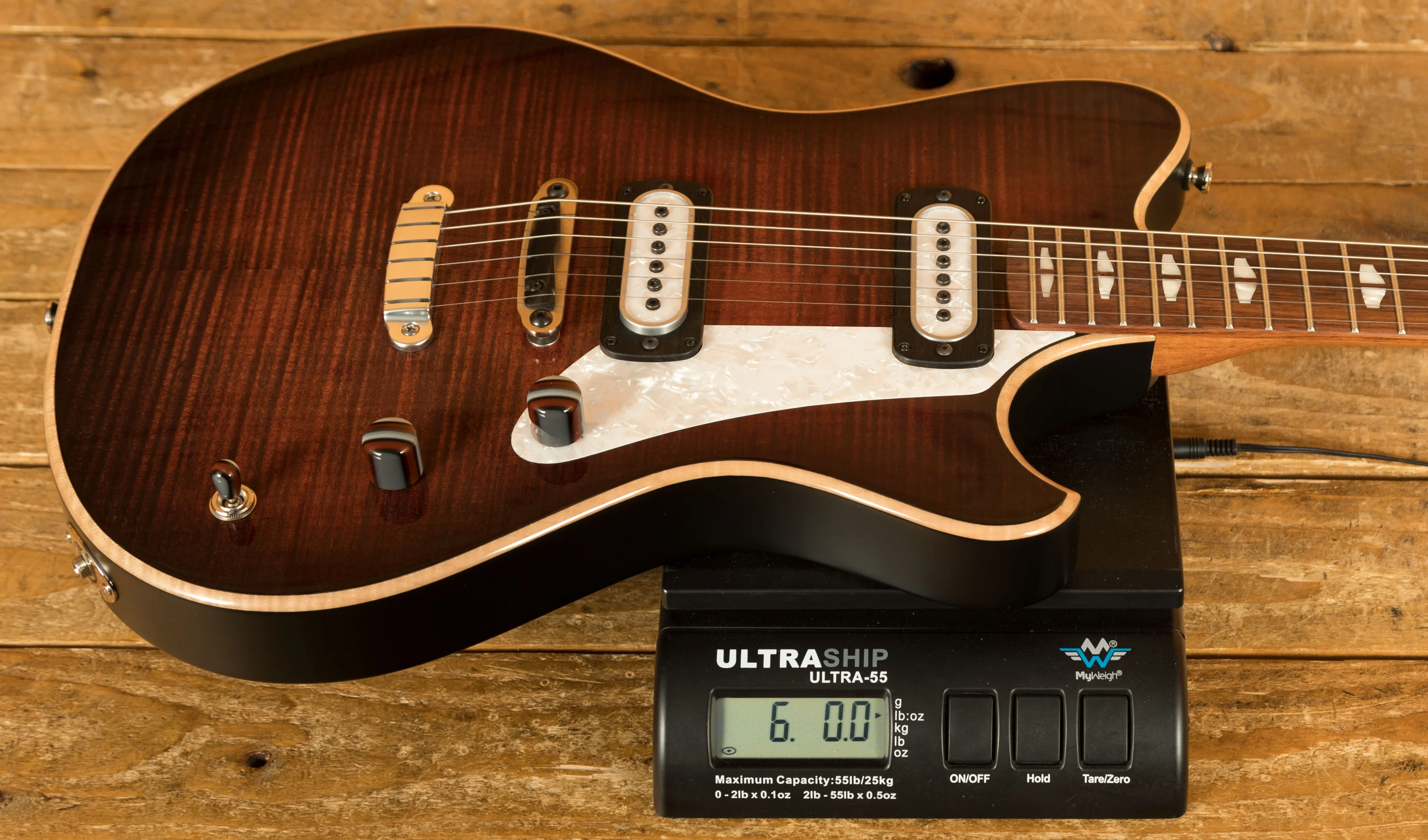 PF42 Pickups - Hardtail Bridge - Select Flame Maple Burst Top - Pearloid Pickguard - Ebony Saddle