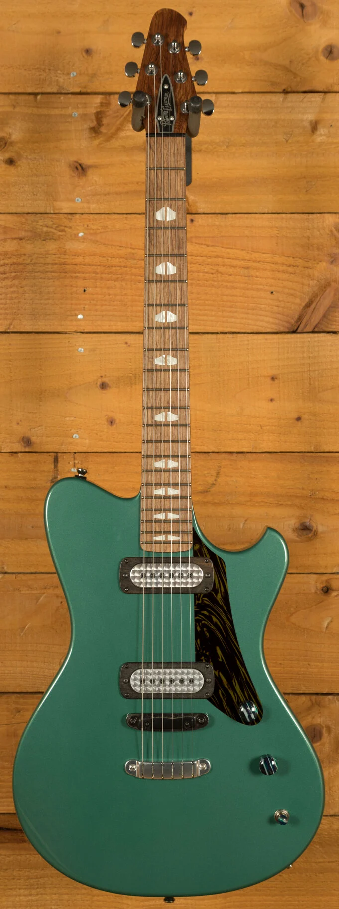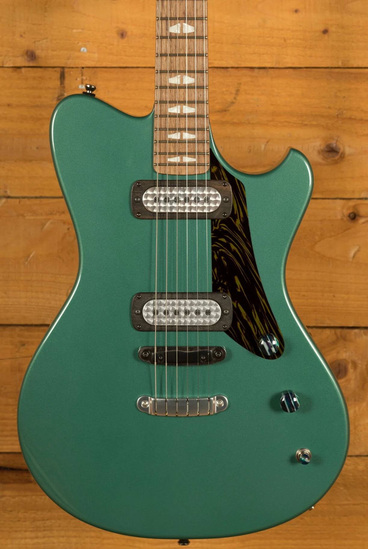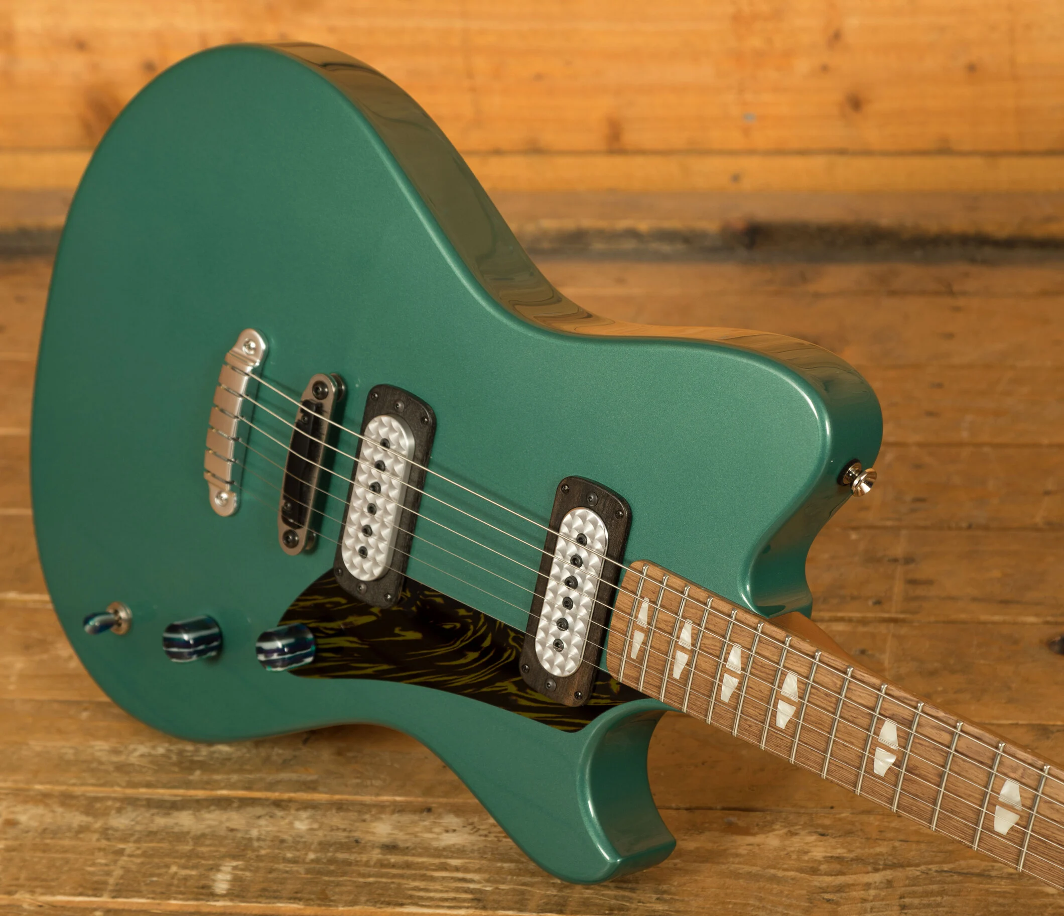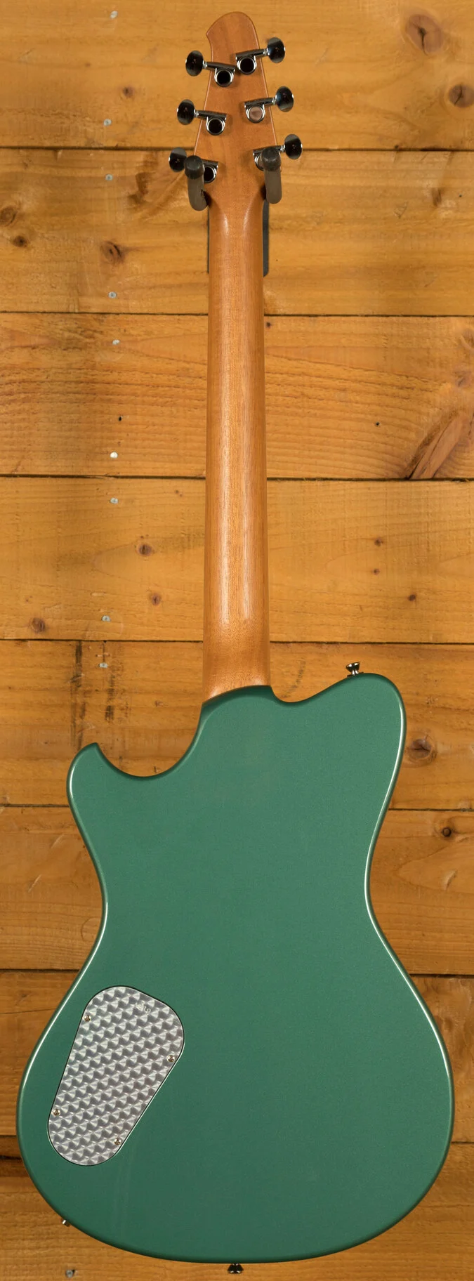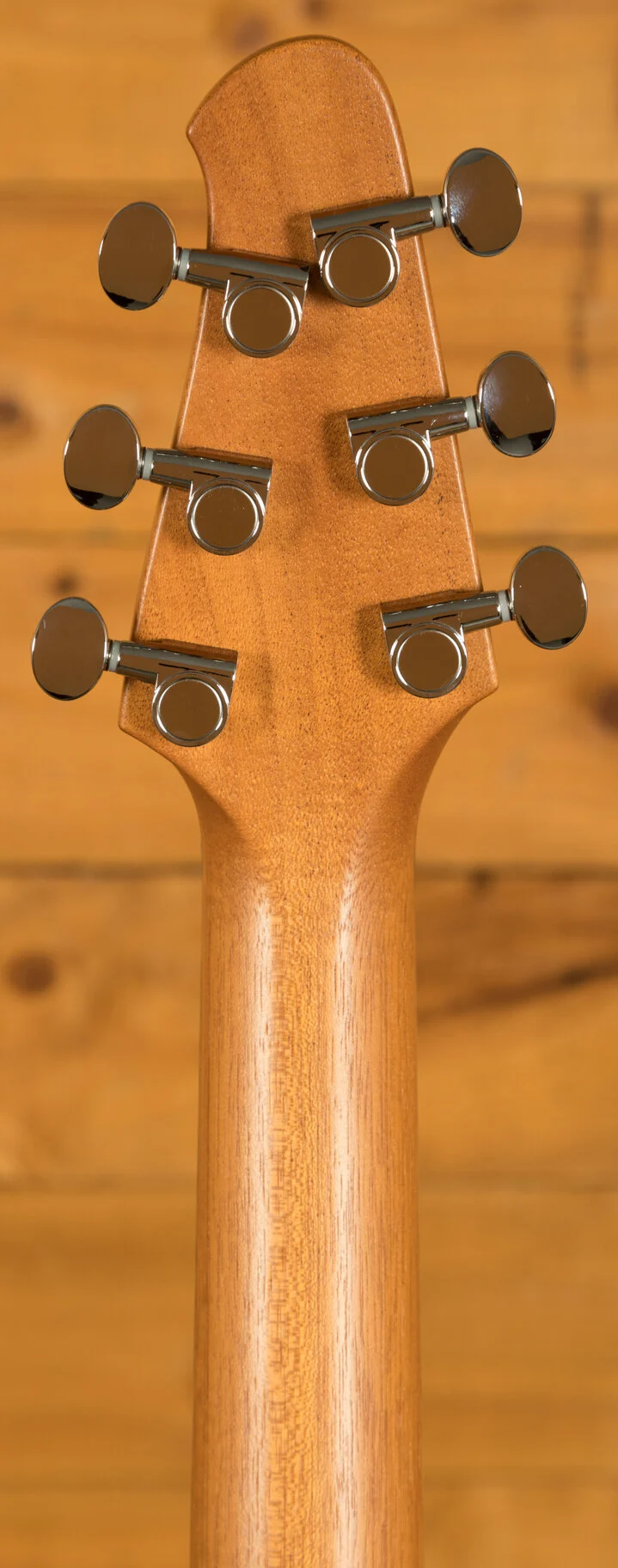 The A-Type's design is influenced by the sleek lines of classic cars, hot rods, and surfboards, reflecting the dynamic culture of San Diego's North County. This area, rich in surfing, skateboarding, auto craft, music, art, and architecture, has deeply influenced Powers' approach. The guitar's asymmetrical shape balances visual appeal with ergonomic efficiency, resulting in a fully enclosed, slim hollowbody design that is as beautiful as it is functional.