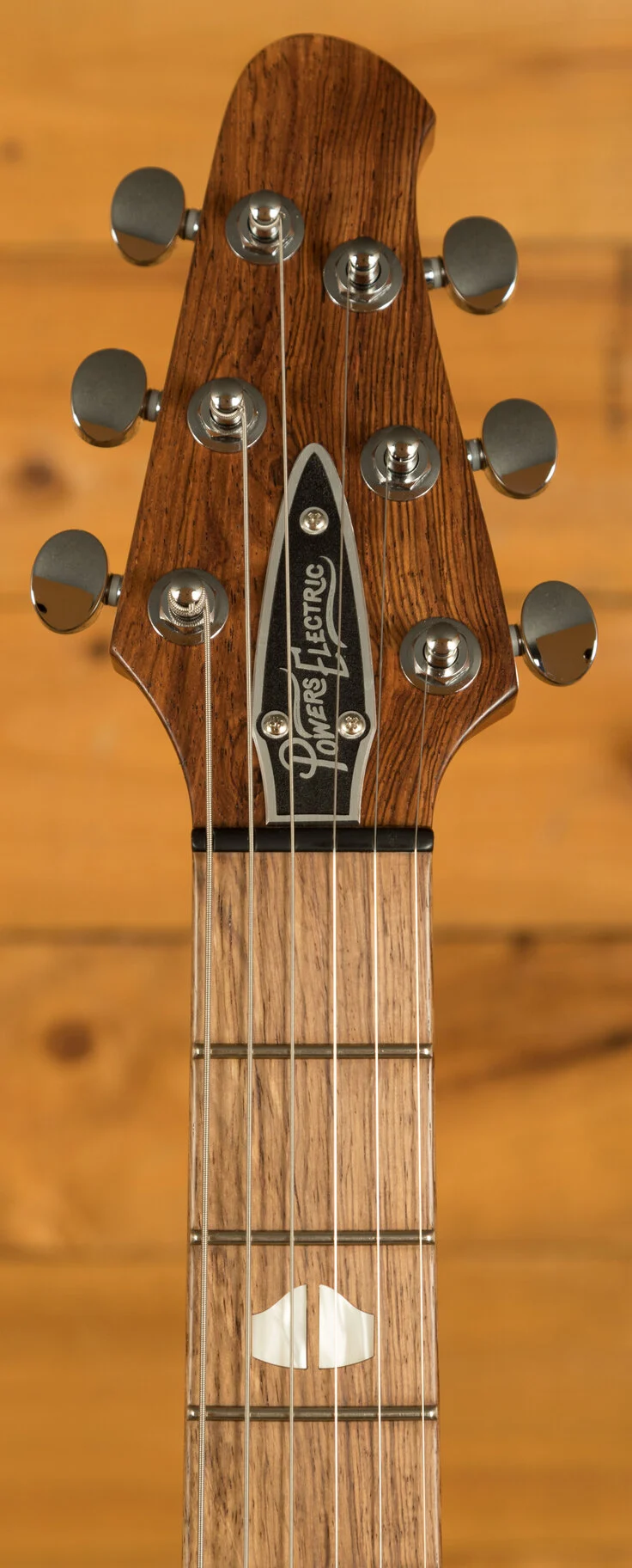 The Powers Electric A-Type prioritises player comfort and playability. Its lightweight, hollow body ensures effortless handling whether standing or sitting, while the contoured armrest and radiused body edges enhance the overall playing experience. The neck is a perfect blend of size, offering a smooth transition into the unique split radius fretboard. This asymmetrical fretboard, which is flatter on the treble side, allows for seamless string bending and maximum playability, encouraging players to explore new ideas and express their unique sound.