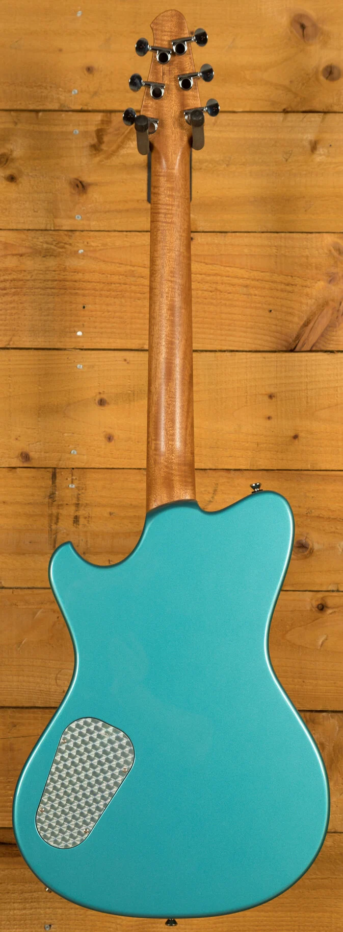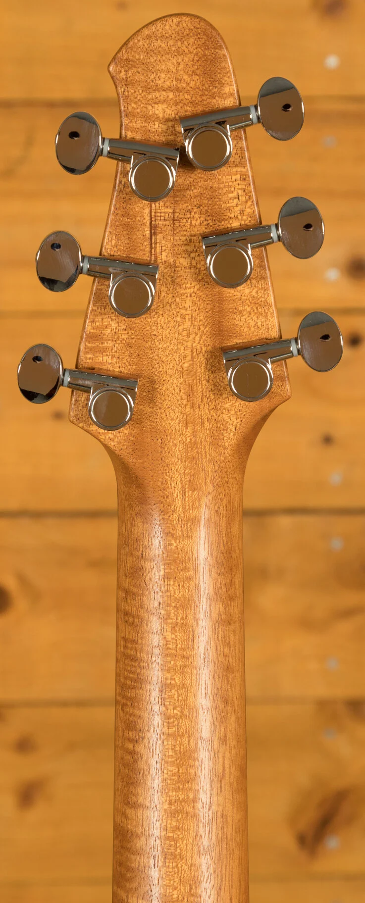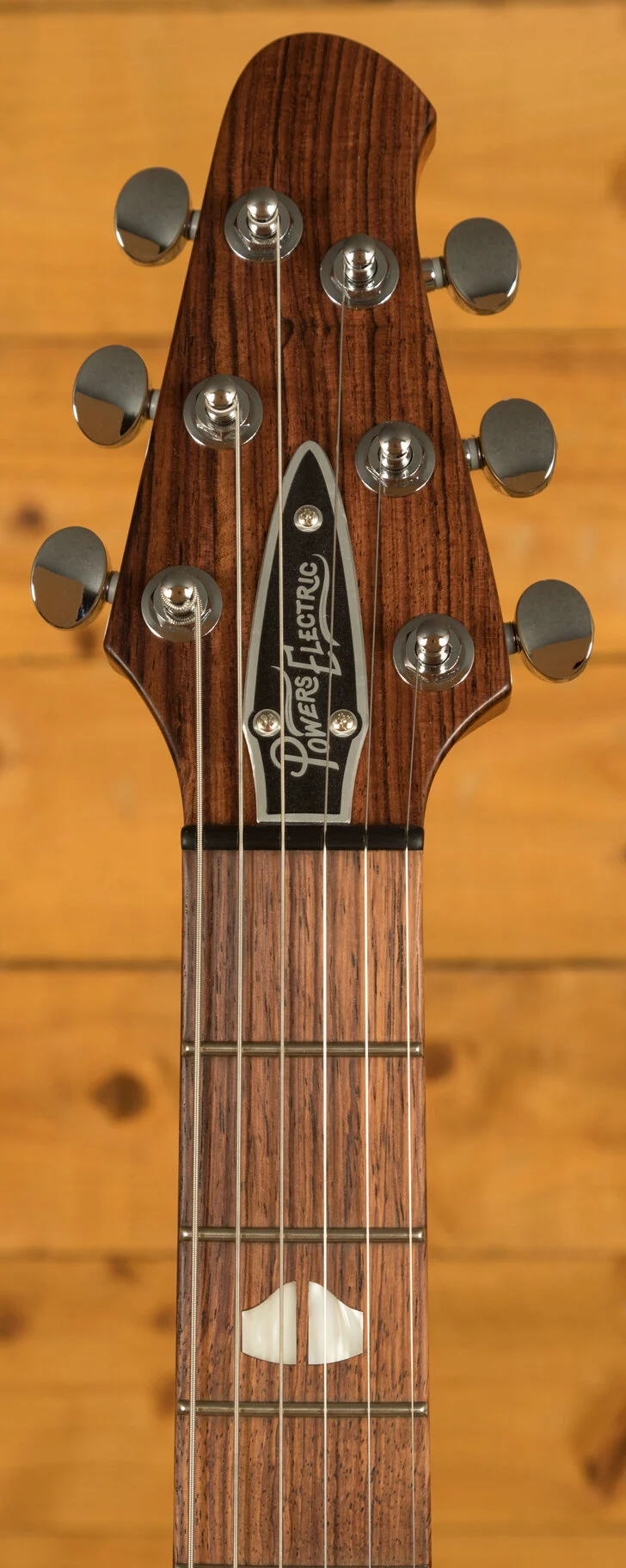 The A-Type's design is influenced by the sleek lines of classic cars, hot rods, and surfboards, reflecting the dynamic culture of San Diego's North County. This area, rich in surfing, skateboarding, auto craft, music, art, and architecture, has deeply influenced Powers' approach. The guitar's asymmetrical shape balances visual appeal with ergonomic efficiency, resulting in a fully enclosed, slim hollowbody design that is as beautiful as it is functional.