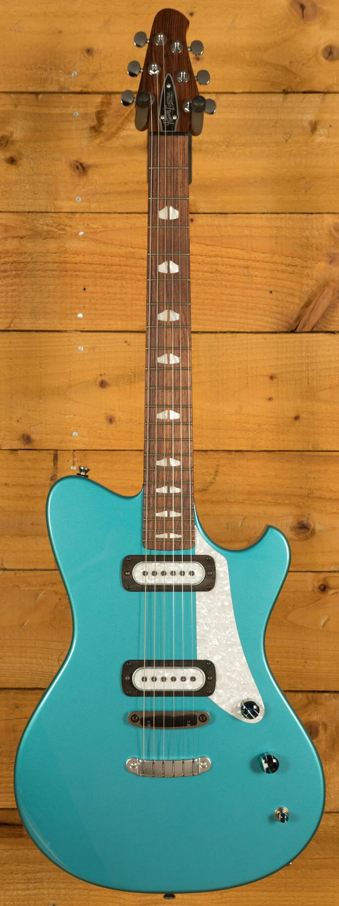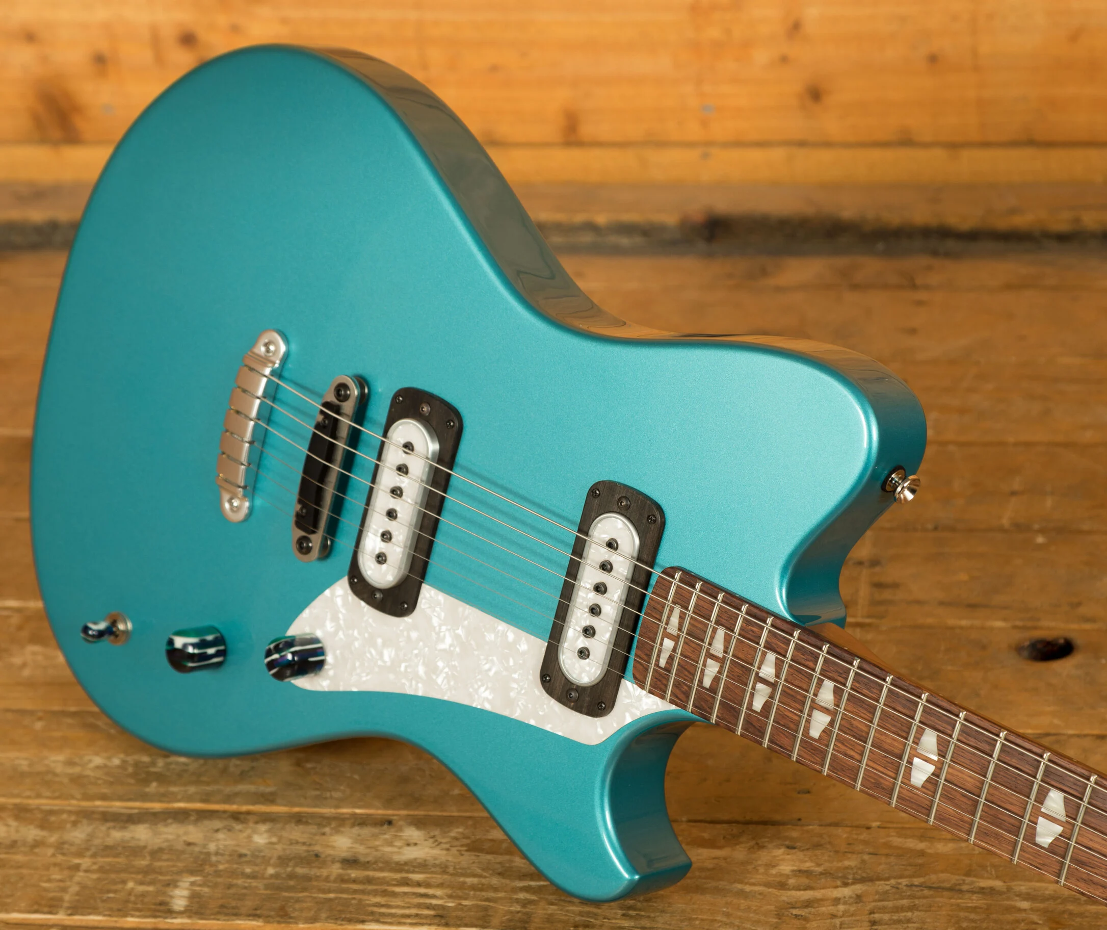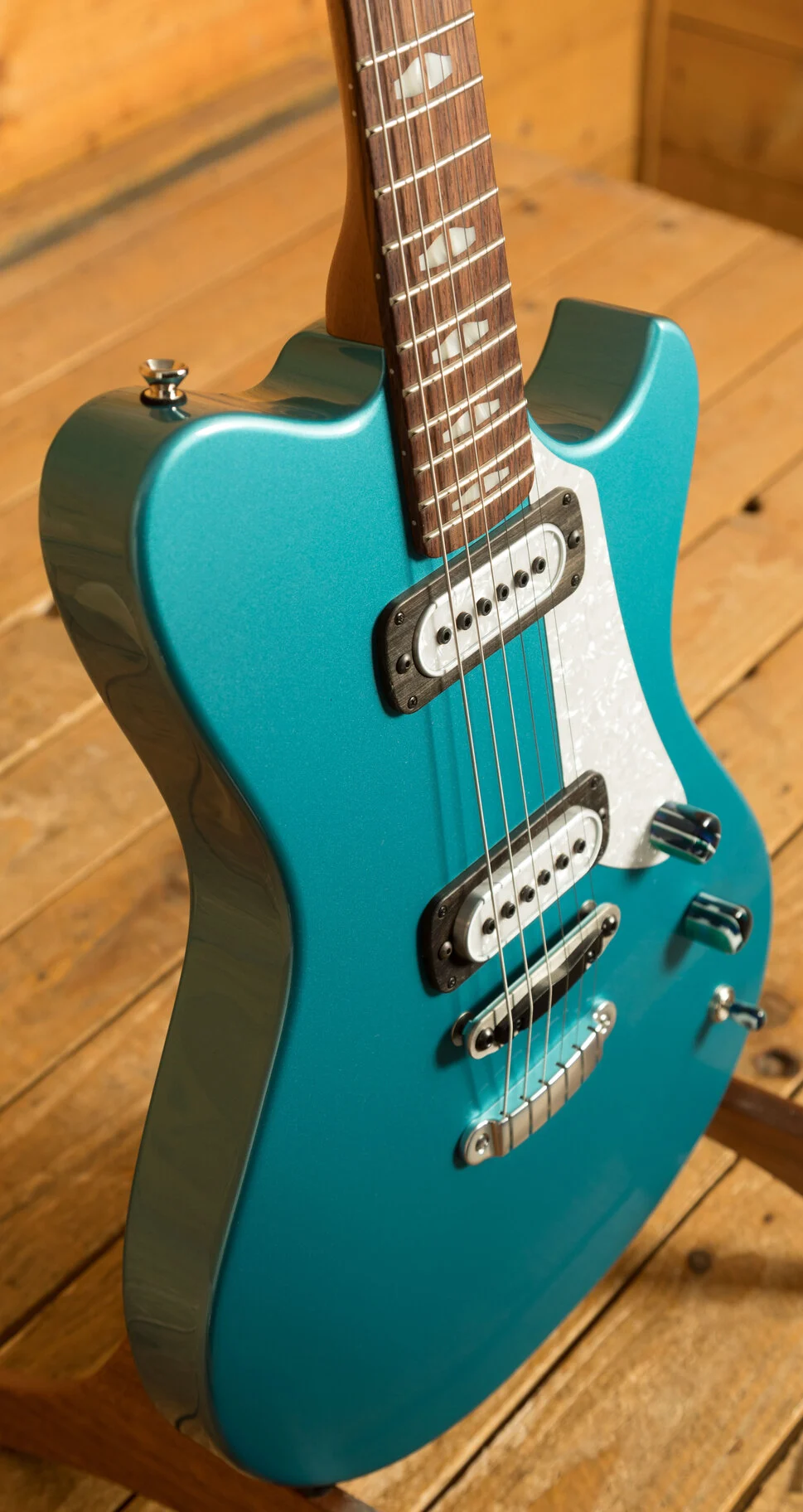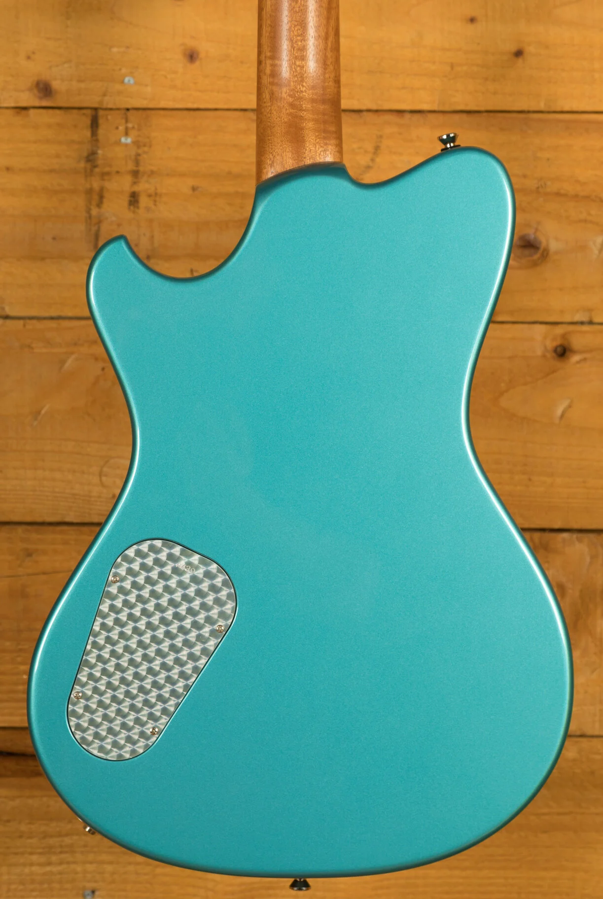 The A-Type's design is influenced by the sleek lines of classic cars, hot rods, and surfboards, reflecting the dynamic culture of San Diego's North County. This area, rich in surfing, skateboarding, auto craft, music, art, and architecture, has deeply influenced Powers' approach. The guitar's asymmetrical shape balances visual appeal with ergonomic efficiency, resulting in a fully enclosed, slim hollowbody design that is as beautiful as it is functional.