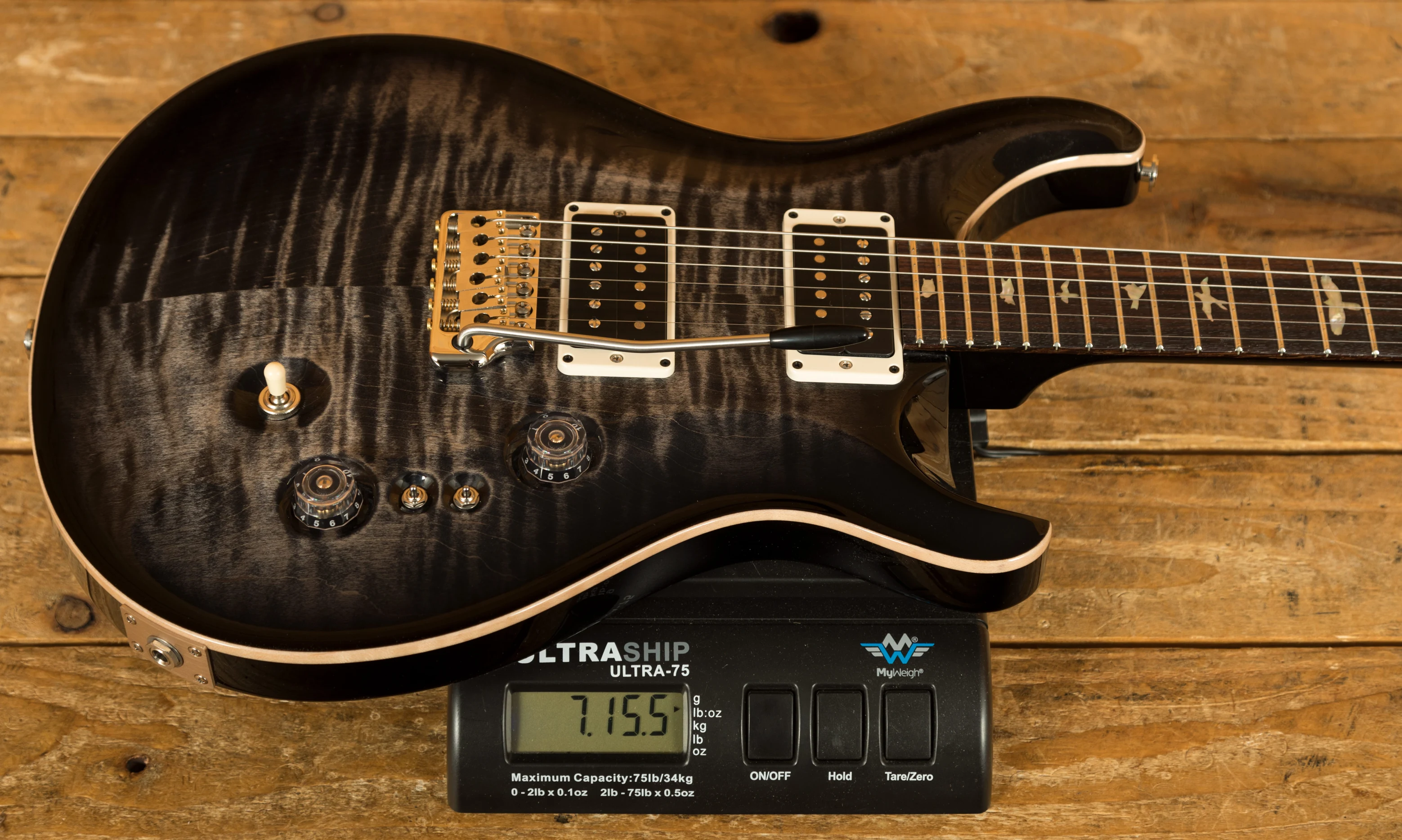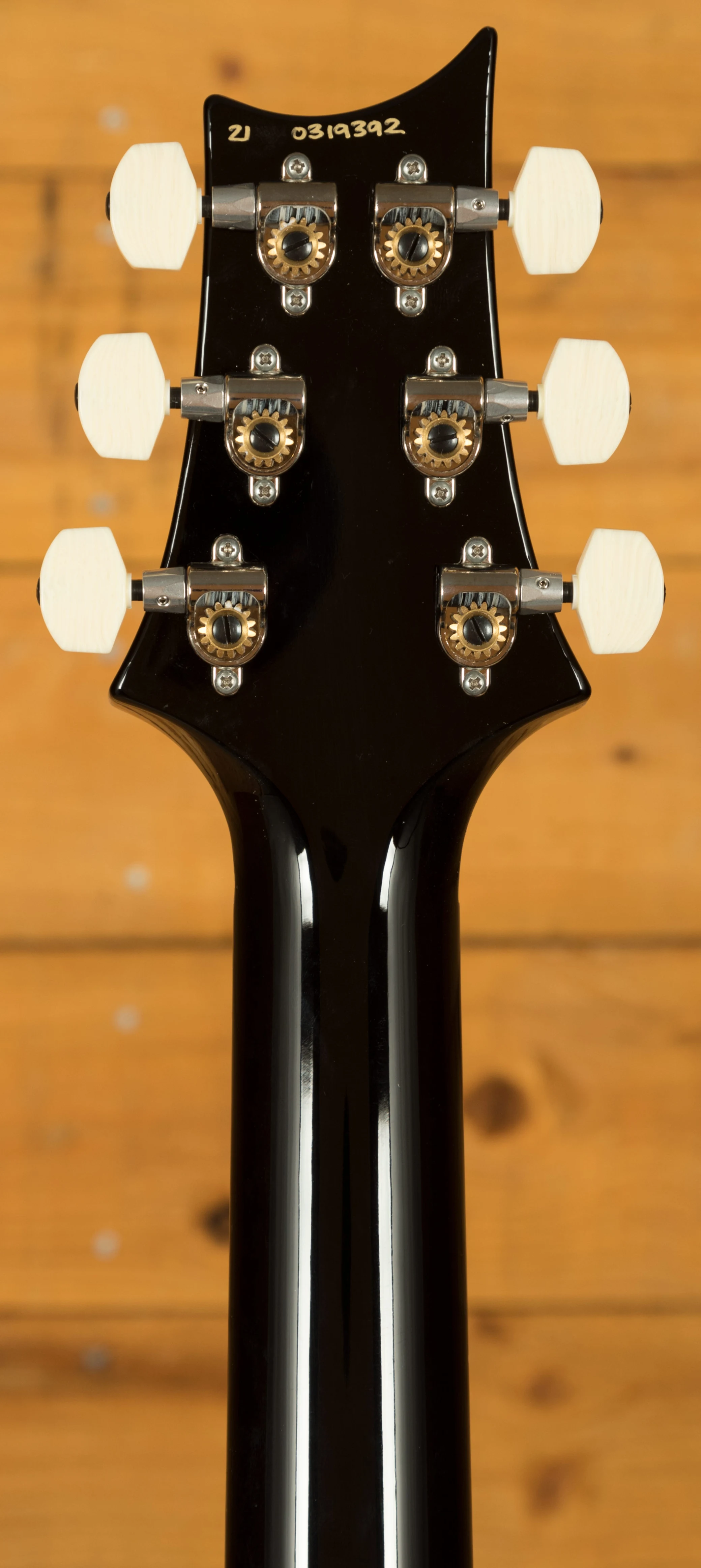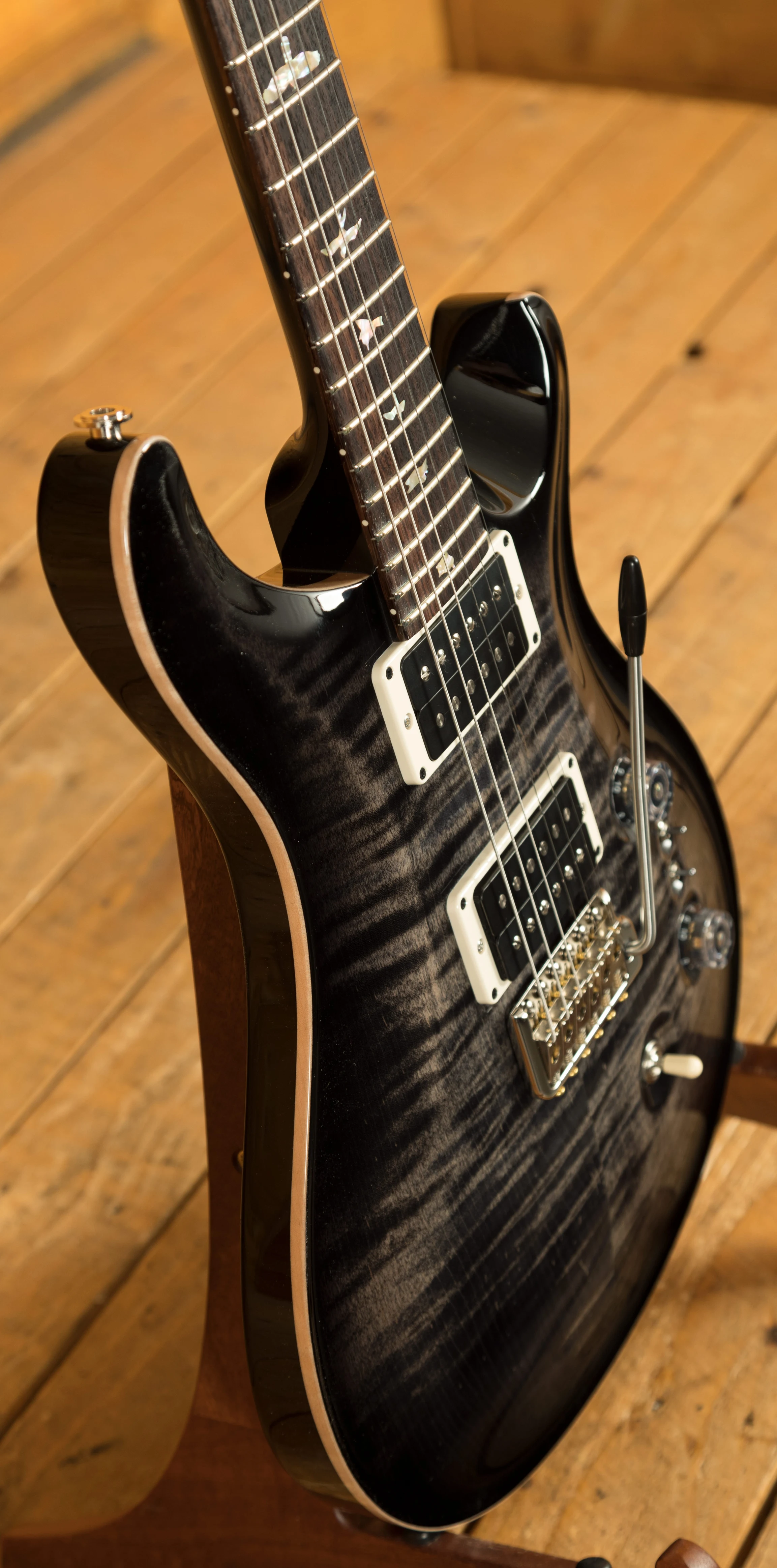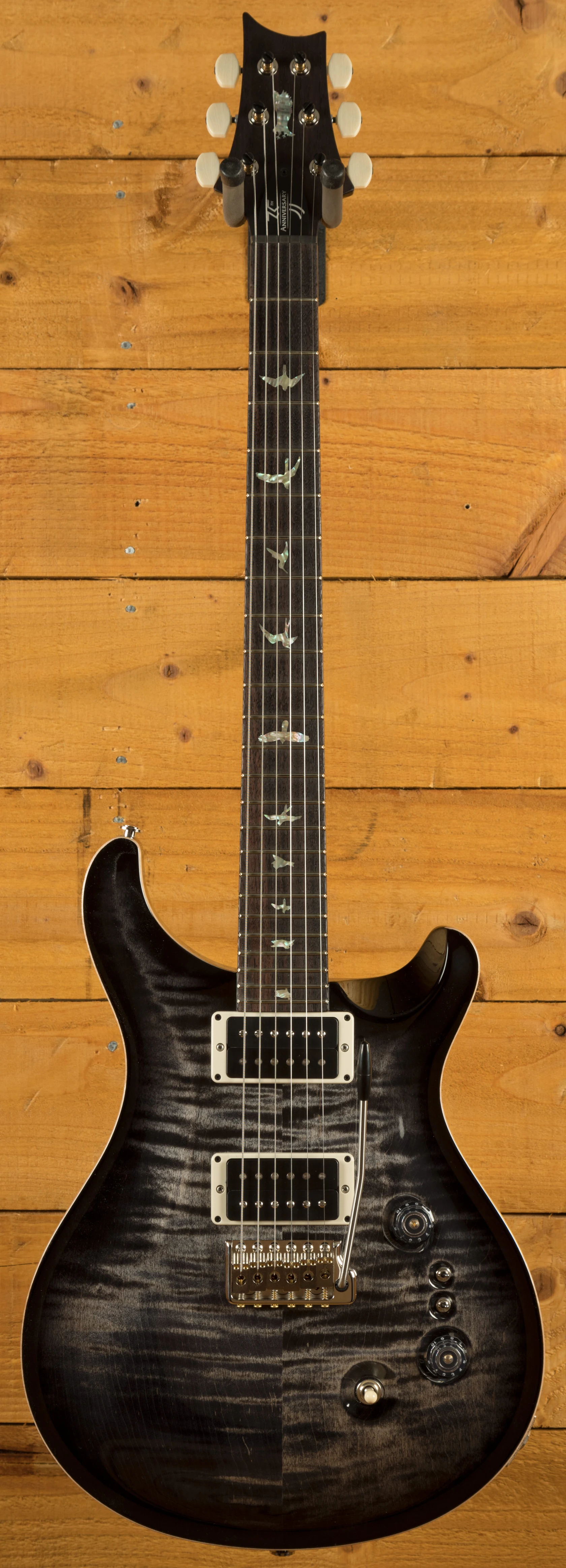 The Mahogany body with carved figured Maple top a offers a rich warmth and depth that complements the beautiful Charcoal burst finish. With a 25" scale length, Pattern Regular profile and of course, 24 frets, the Mahogany neck feels really comfortable and familiar. The iconic PRS birds sit proudly atop the Rosewood fingerboard for the definitive PRS experience.
