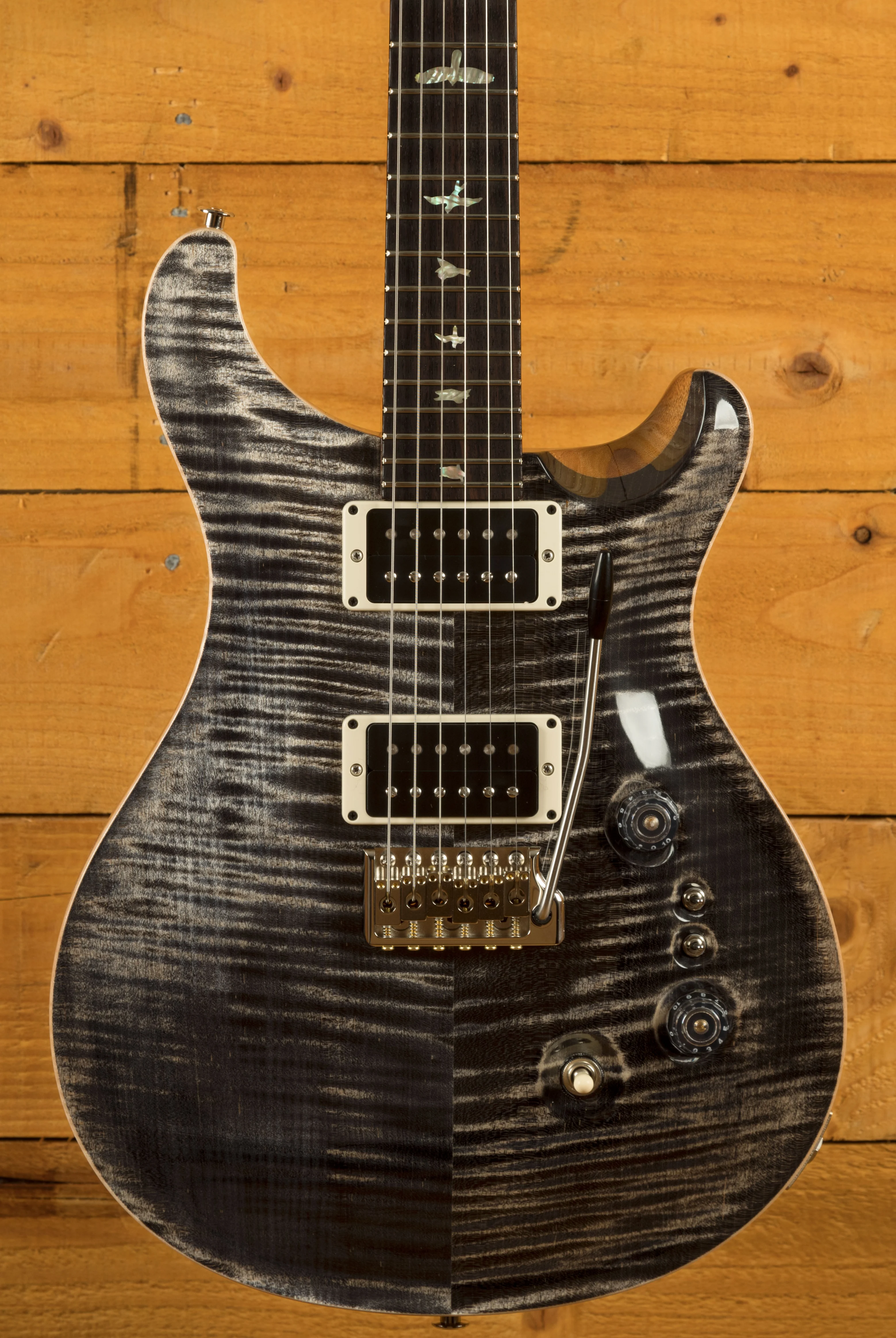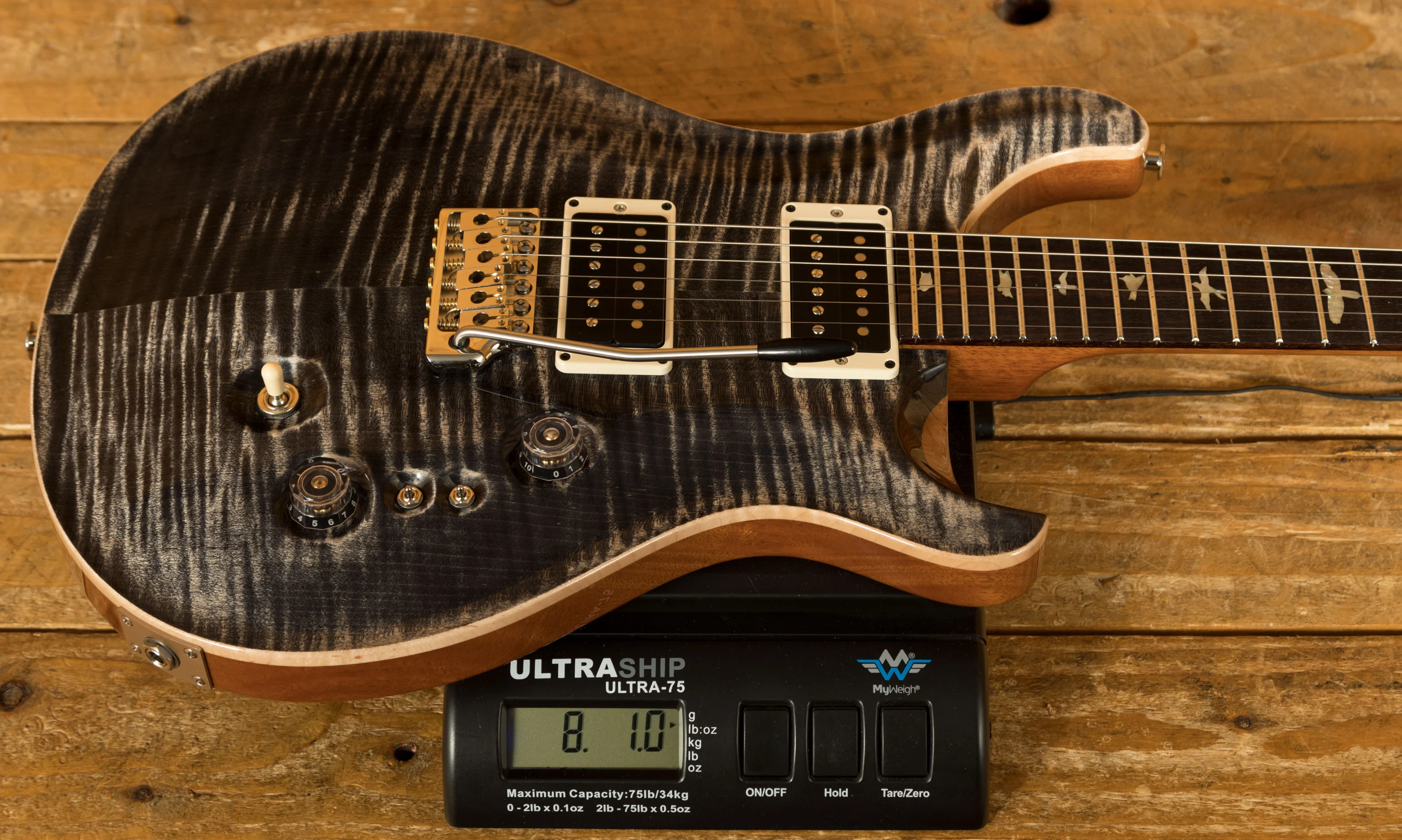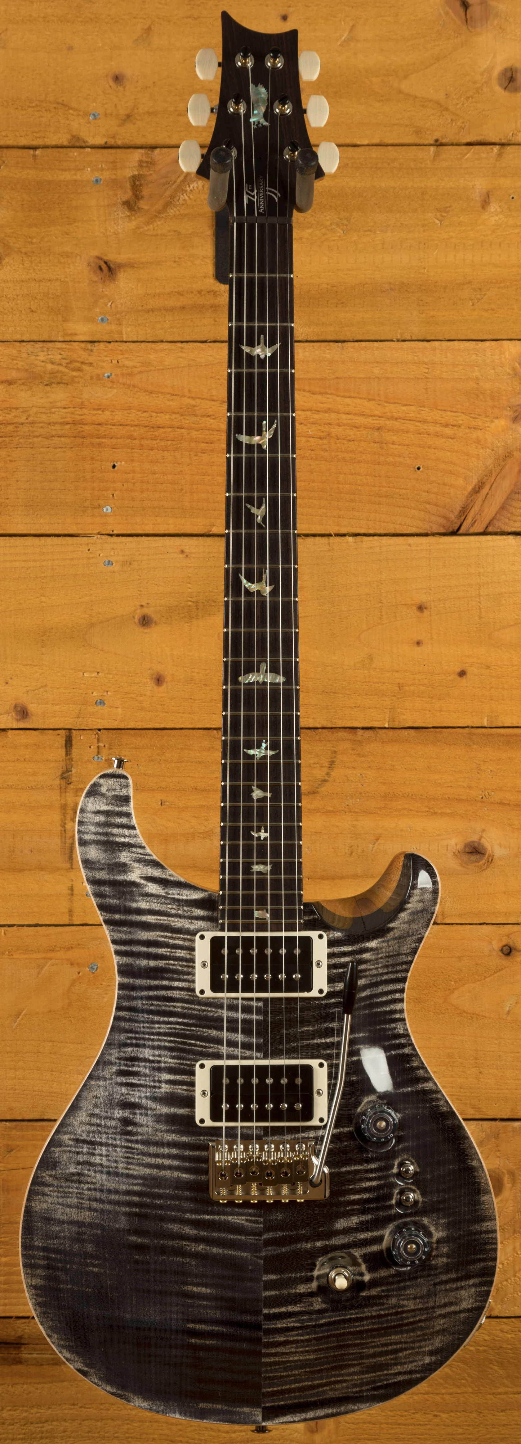 The Mahogany body with carved figured Maple top a offers a rich warmth and depth that complements the beautiful Charcoal finish. With a 25" scale length, Pattern Thin profile and of course, 24 frets, the Mahogany neck feels really comfortable and familiar. The iconic PRS birds sit proudly atop the Rosewood fingerboard for the definitive PRS experience.