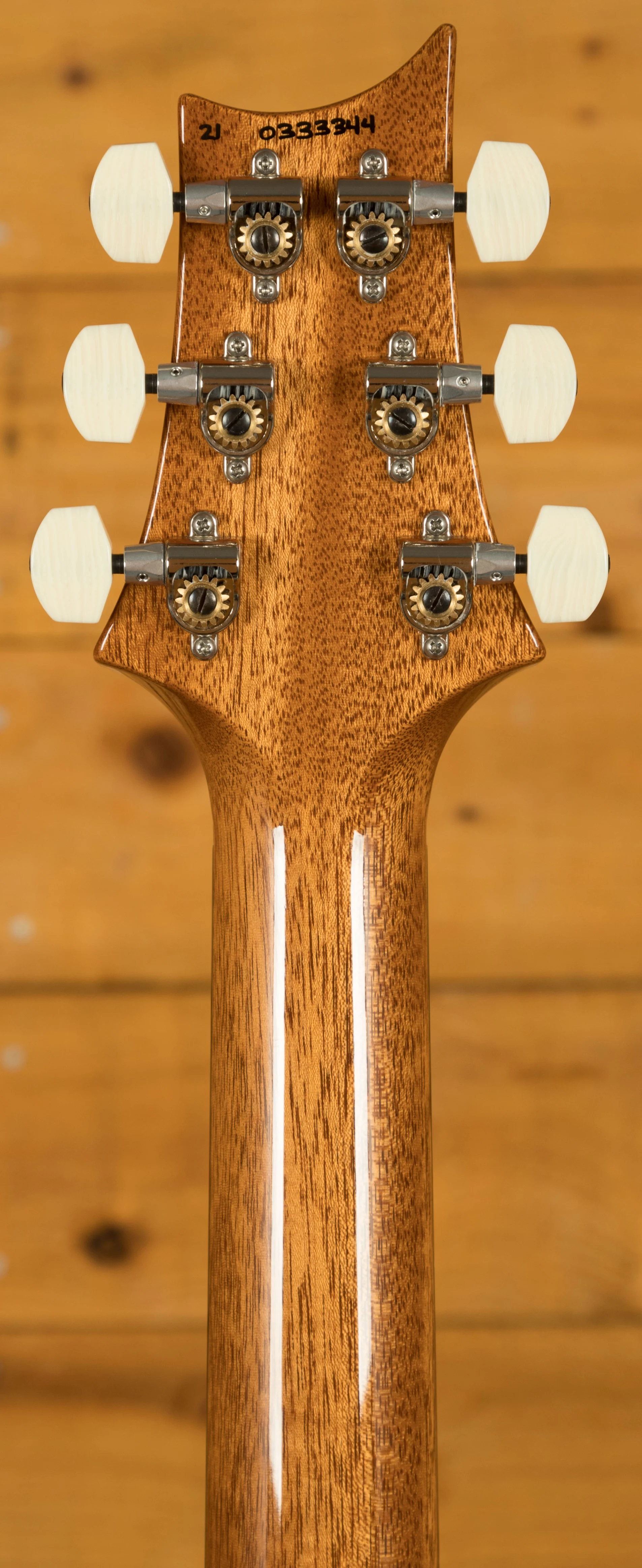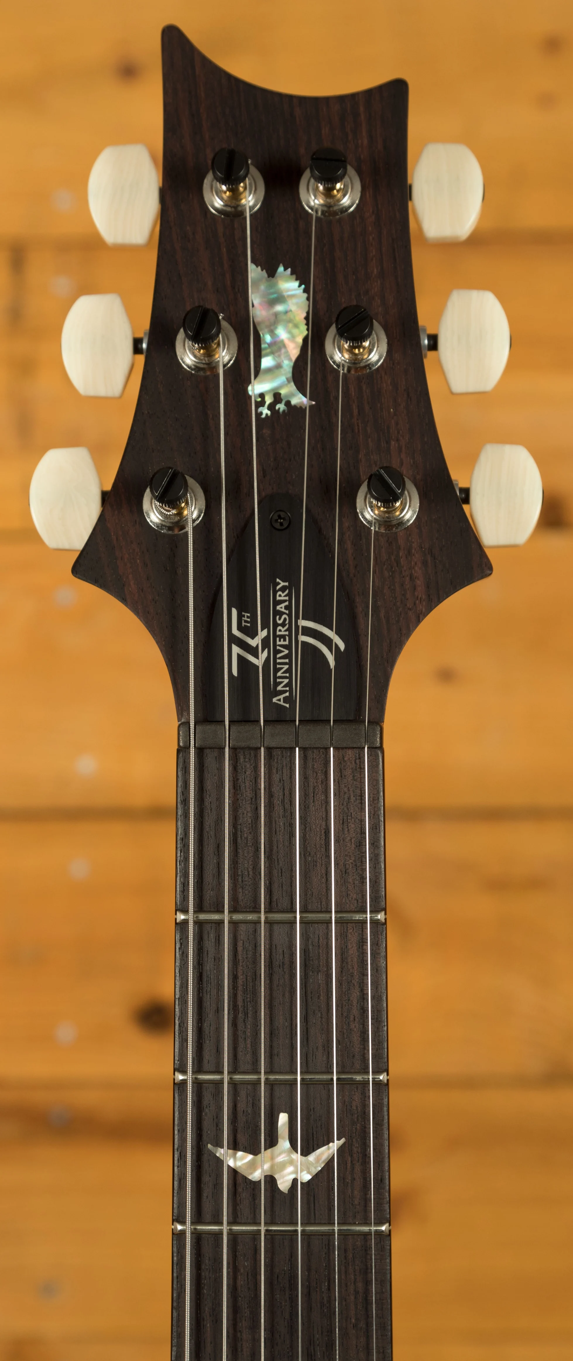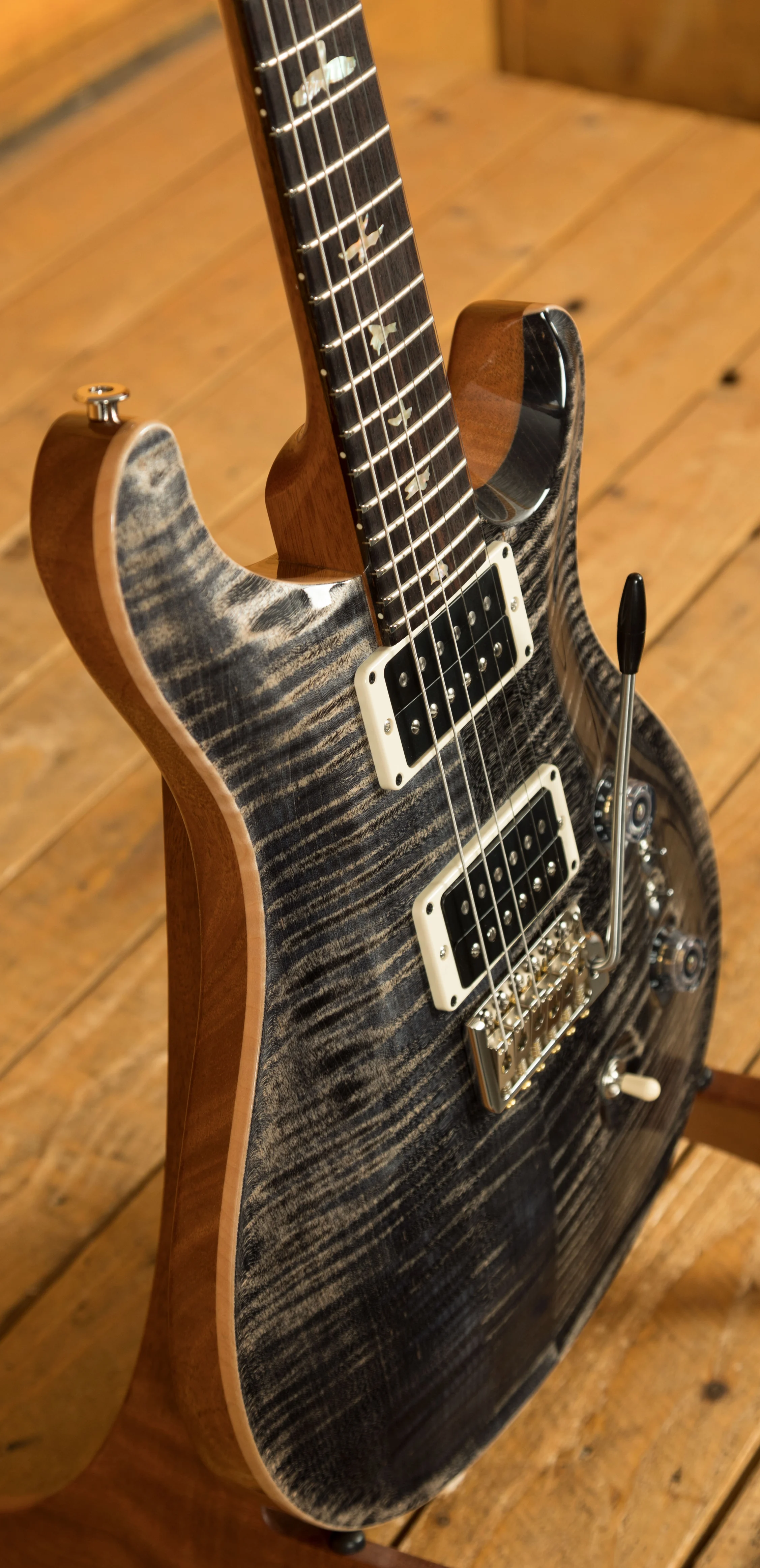 The Mahogany body with carved figured Maple top a offers a rich warmth and depth that complements the beautiful Charcoal finish. With a 25" scale length, Pattern Thin profile and of course, 24 frets, the Mahogany neck feels really comfortable and familiar. The iconic PRS birds sit proudly atop the Rosewood fingerboard for the definitive PRS experience.