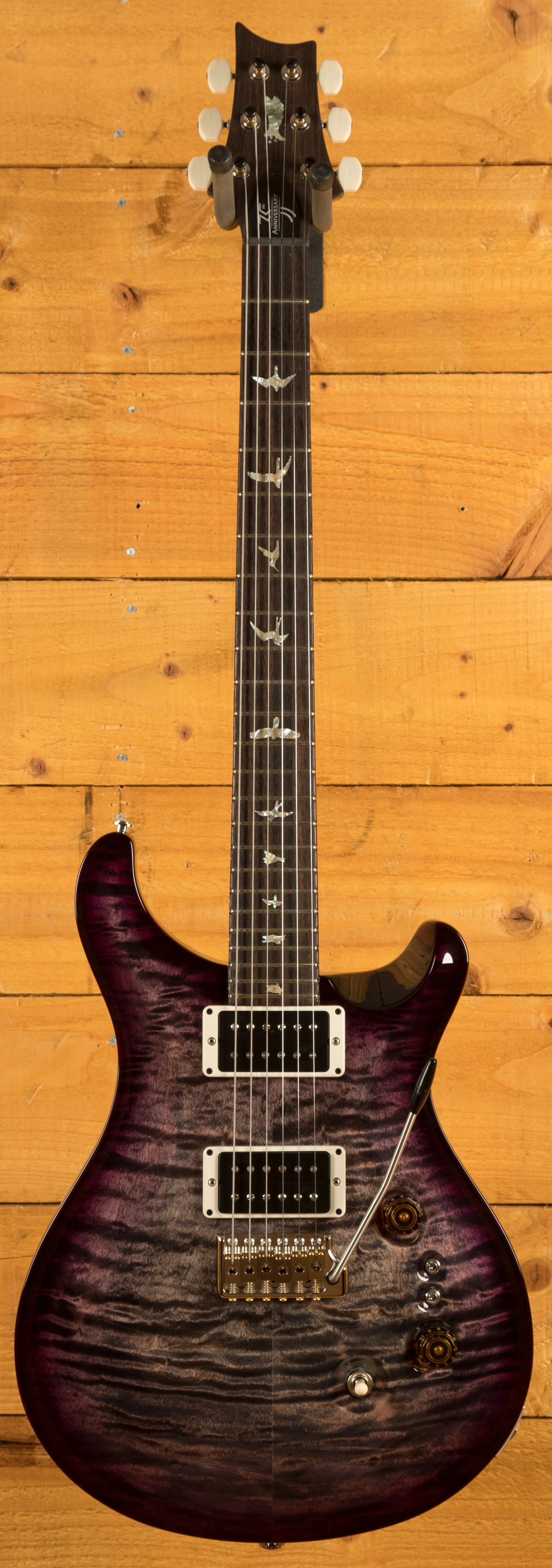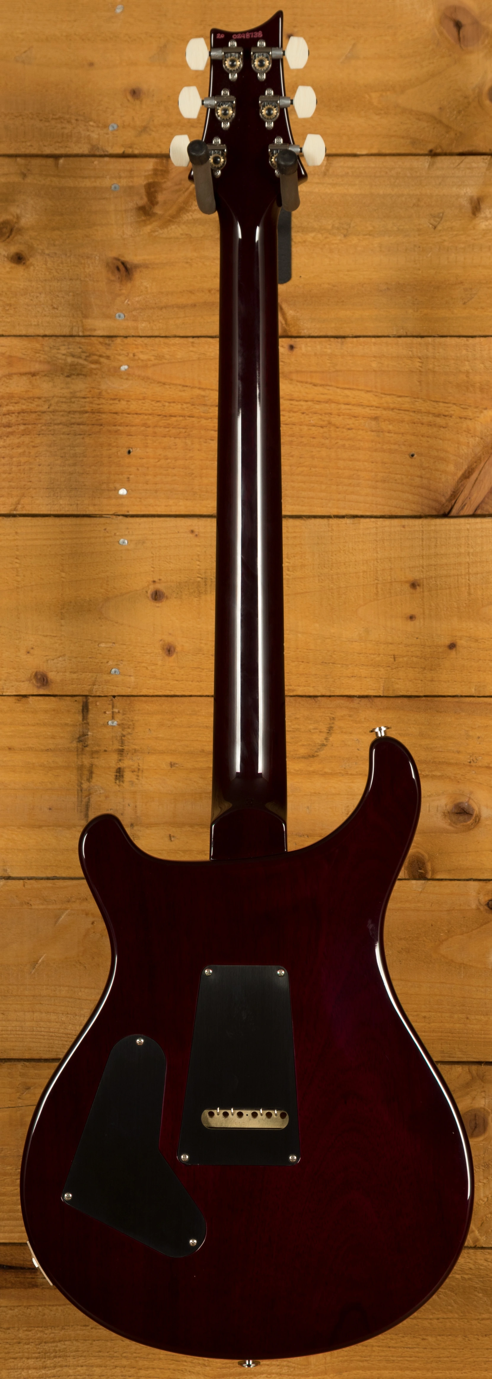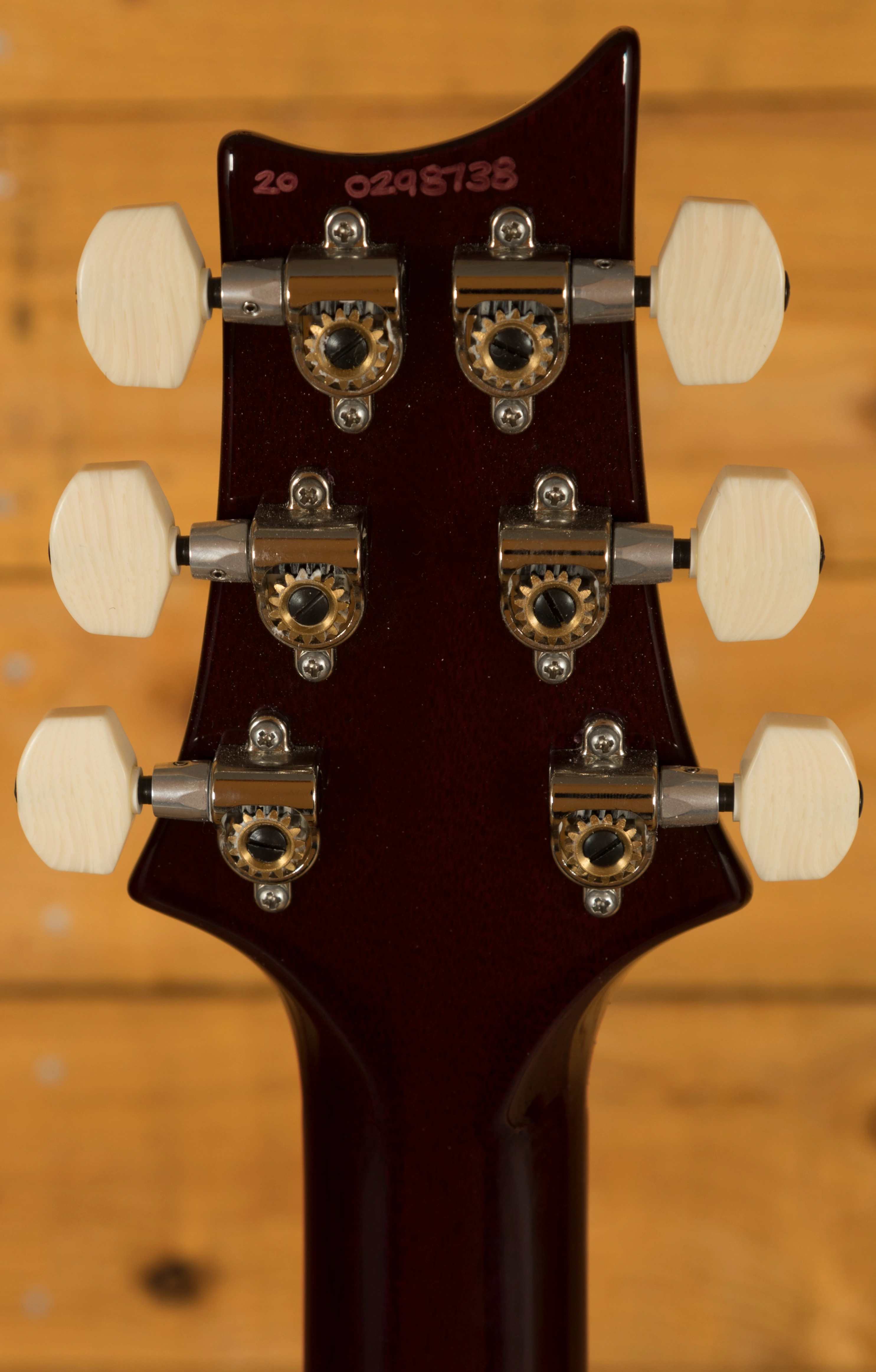 The Mahogany body with carved figured Maple top a offers a rich warmth and depth that complements the beautiful Custom Colour finish. With a 25" scale length, Pattern Thin profile and of course, 24 frets, the Mahogany neck feels really comfortable and familiar. The iconic PRS birds sit proudly atop the Rosewood fingerboard for the definitive PRS experience.